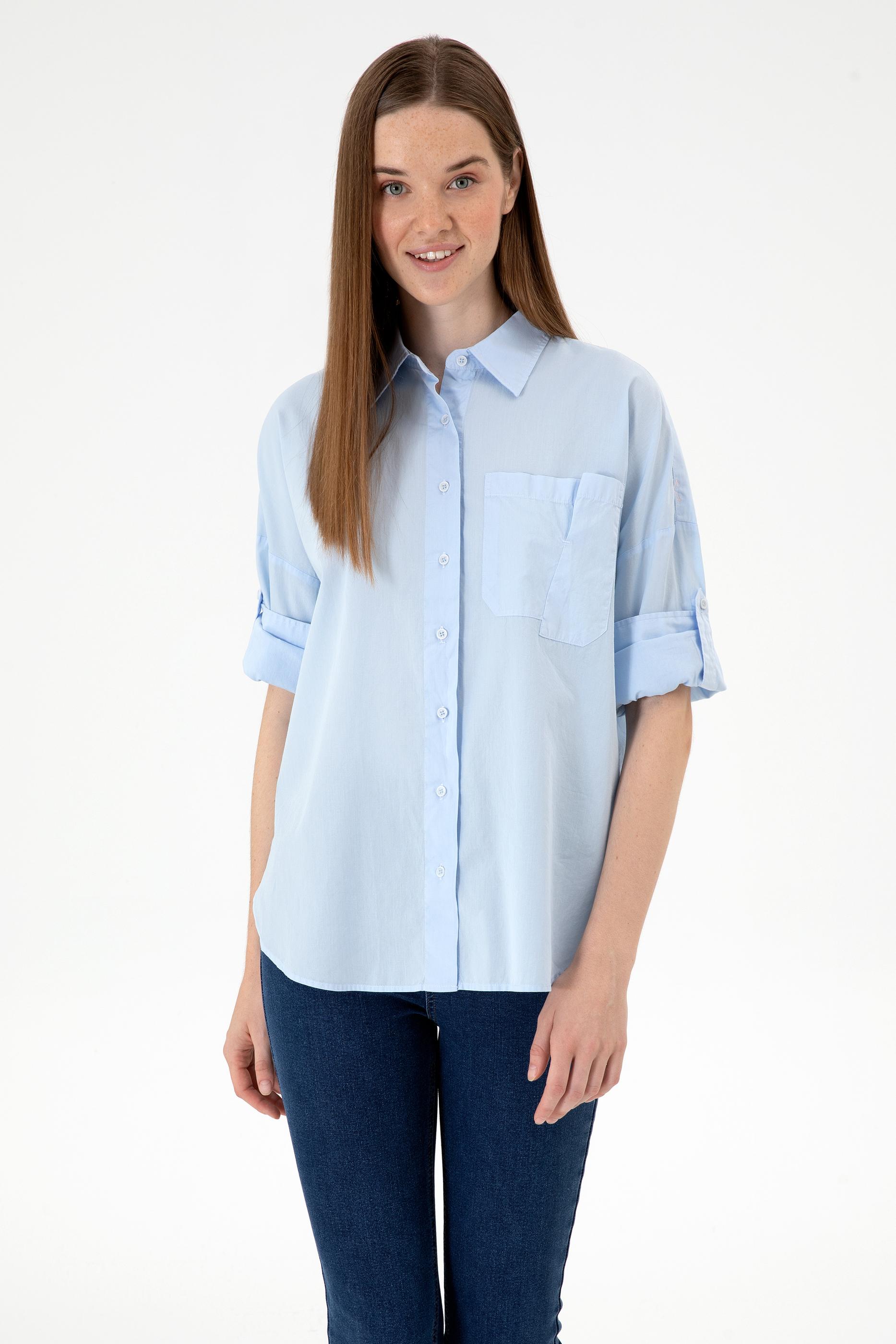 Kadın Açık Mavi Uzun Kollu Gömlek