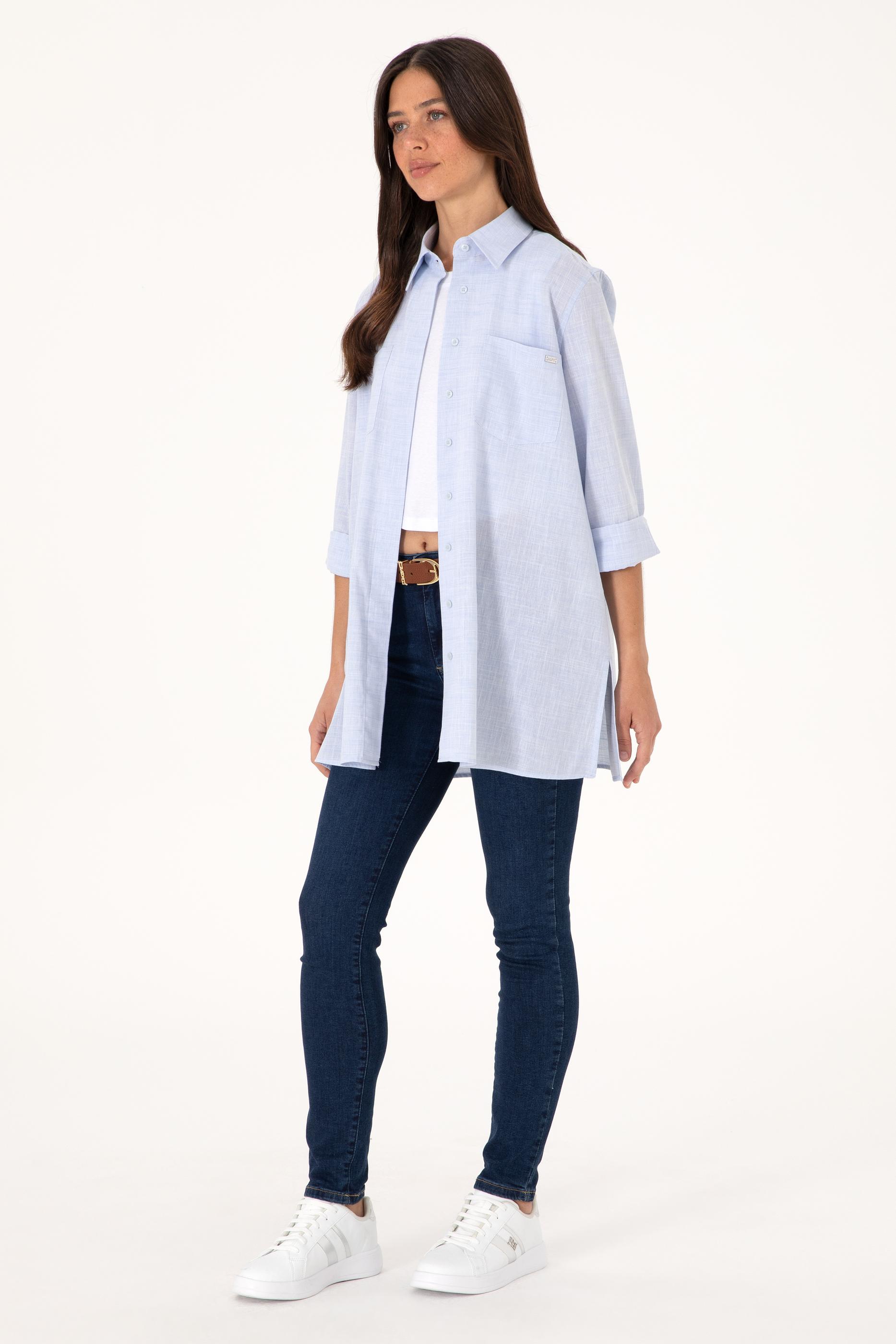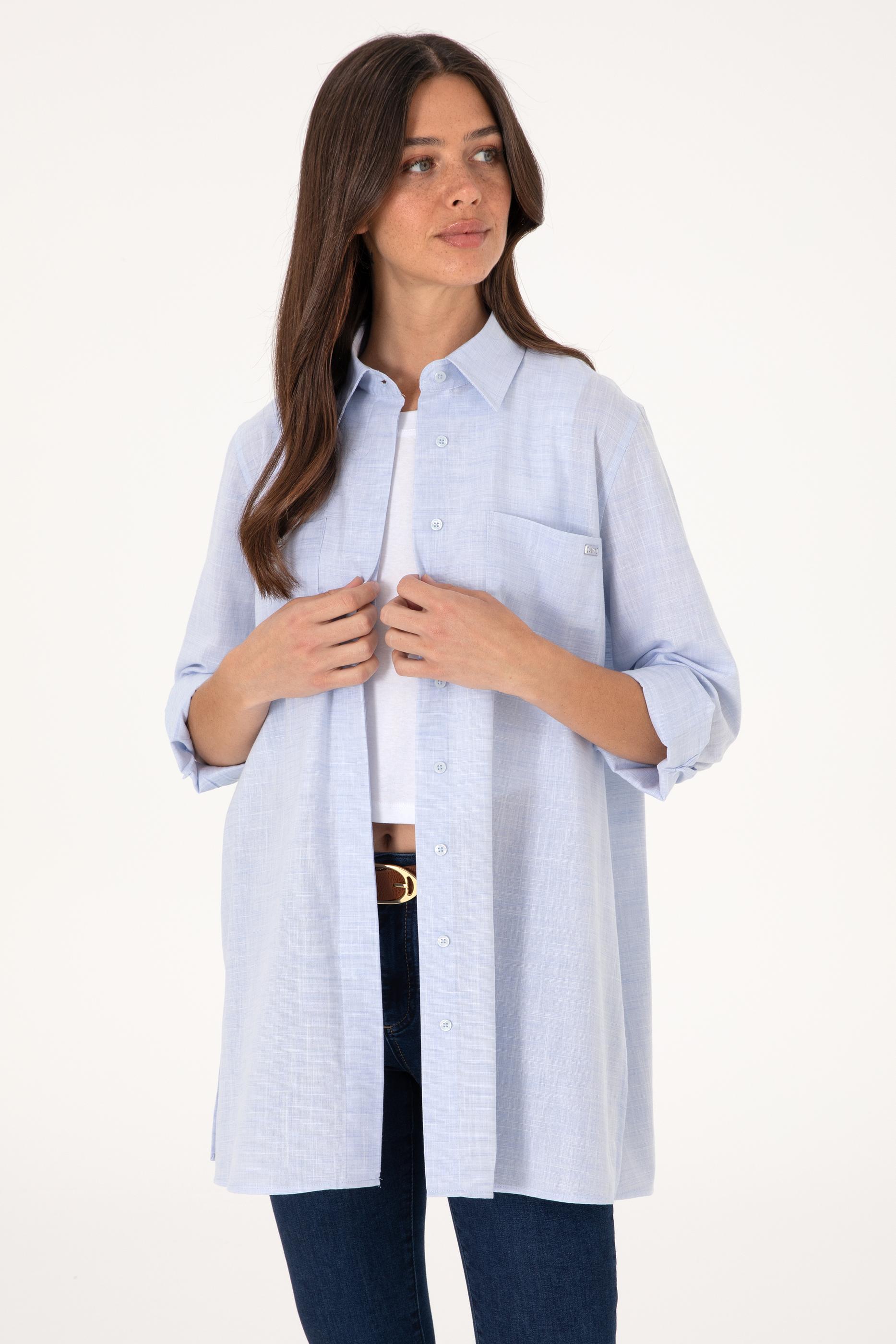 Kadın Açık Mavi Uzun Kollu Tunik Gömlek