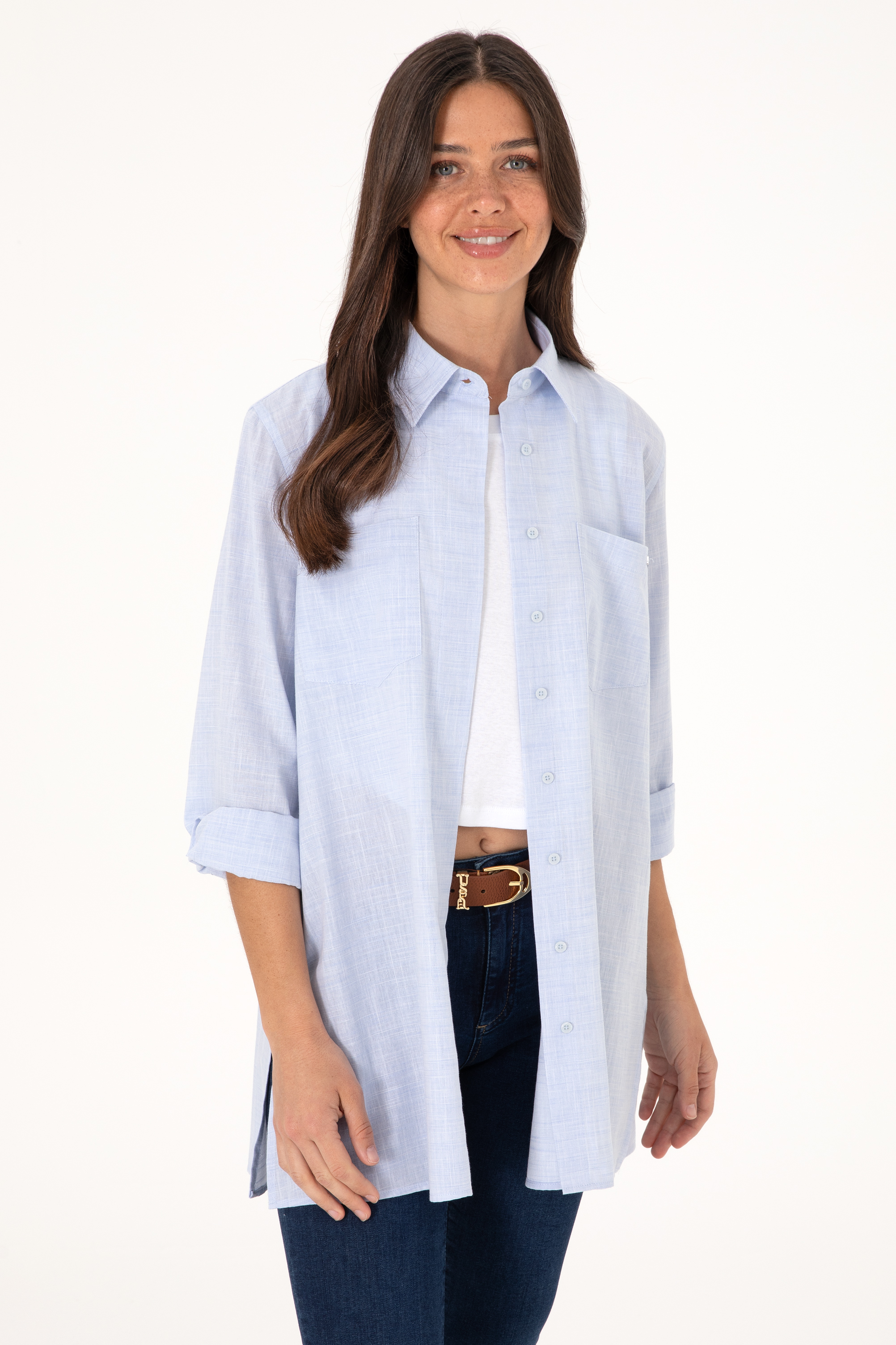 "name": "Kadın Açık Mavi Uzun Kollu Tunik Gömlek",