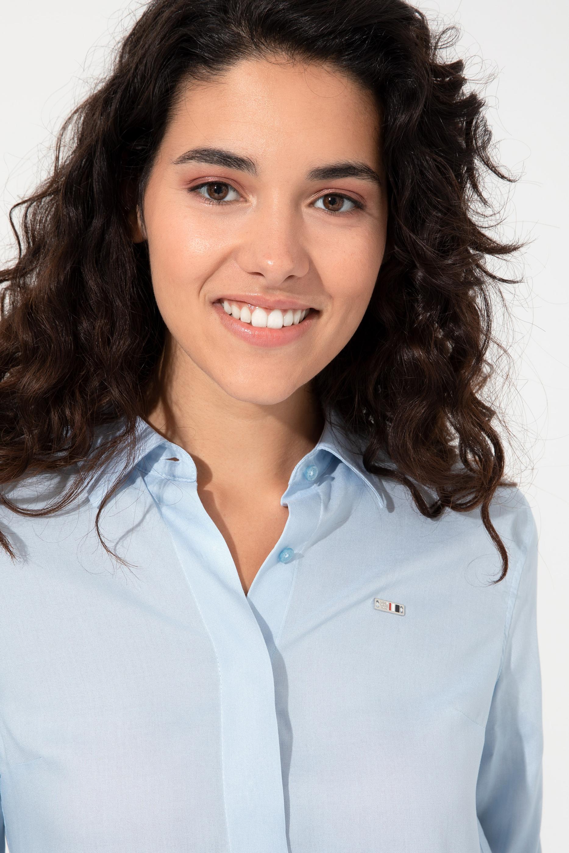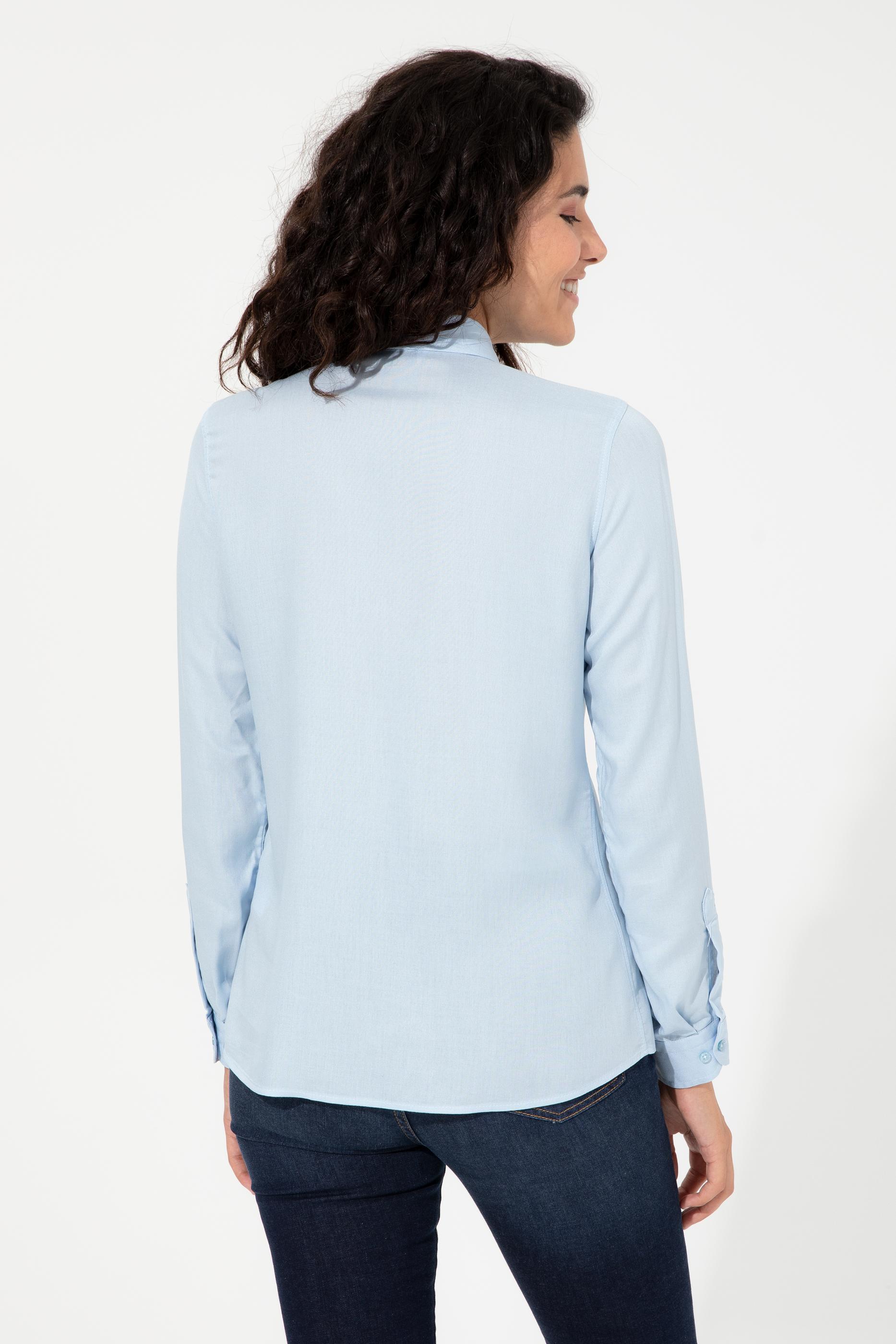 Günlük tarzınıza maskülen bir hava katan kadın basic gömlek modelimiz slim fit kesimiyle de feminenliğinize vurgu yapıyor. İnce gömlek modelimiz yaz aylarında terletmeyerek serin tutan viskon kumaş özelliğiyle ekstra konfor sağlıyor. Uzun kollu kadın gömlek modelimiz serin bahar aylarında da kullanıma uygun basic bir parça olarak öne çıkıyor. Koyu tonların asaletini tasarımında taşıyan mavi gömlek modelimizle zarif bir görünüme kavuşabilirsiniz.