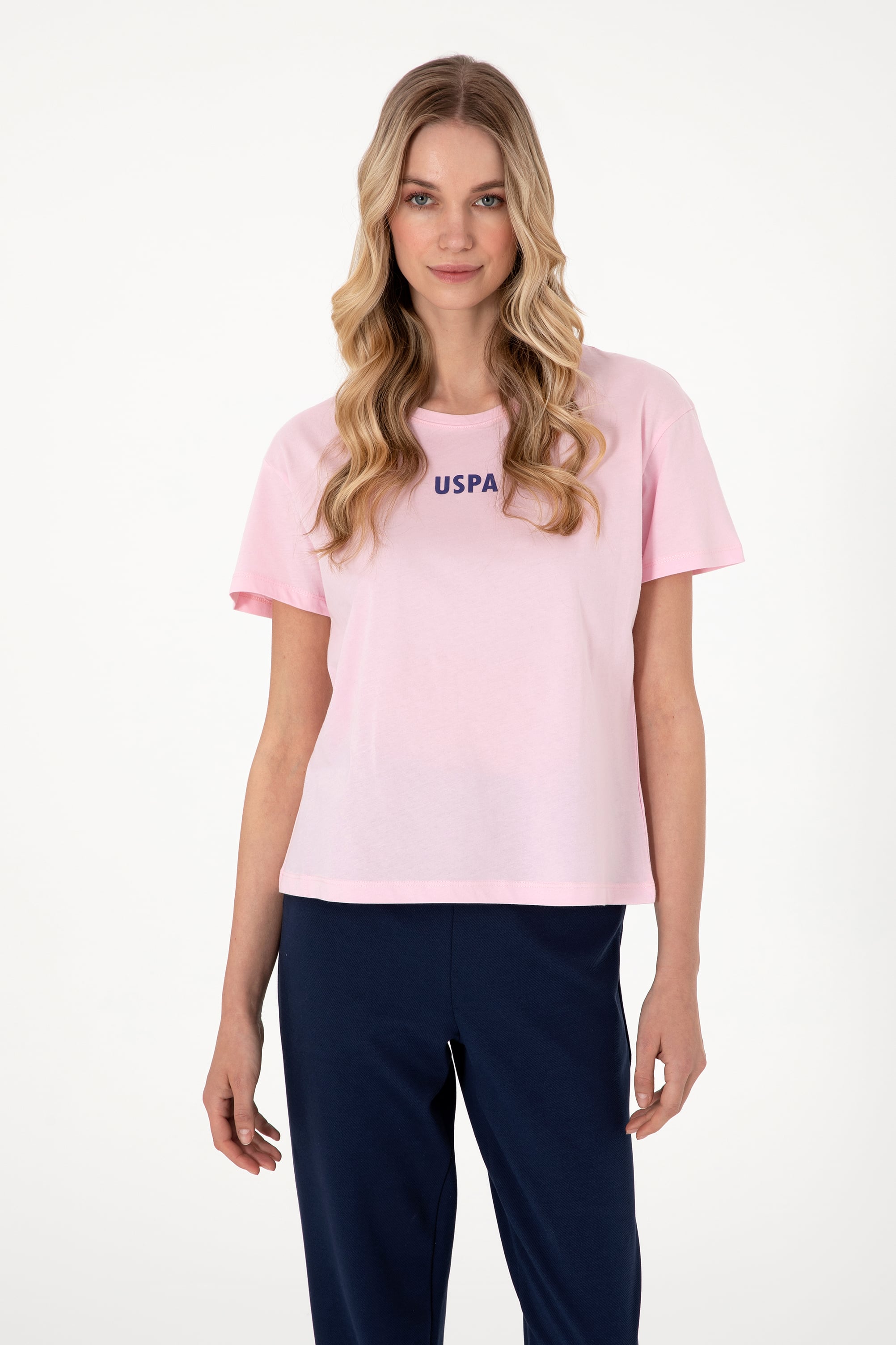 - Kadın Açık Pembe Bisiklet Yaka Tişört