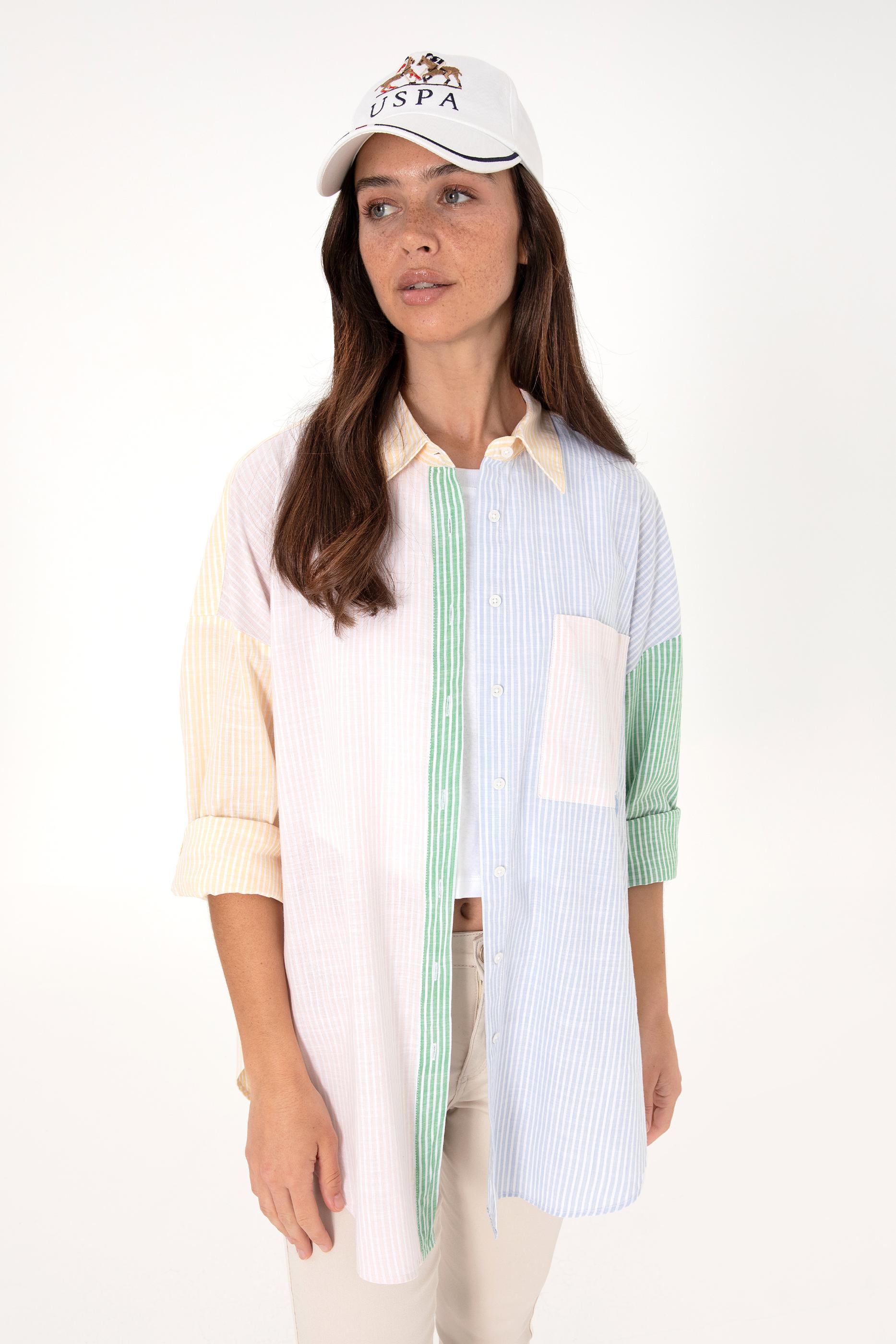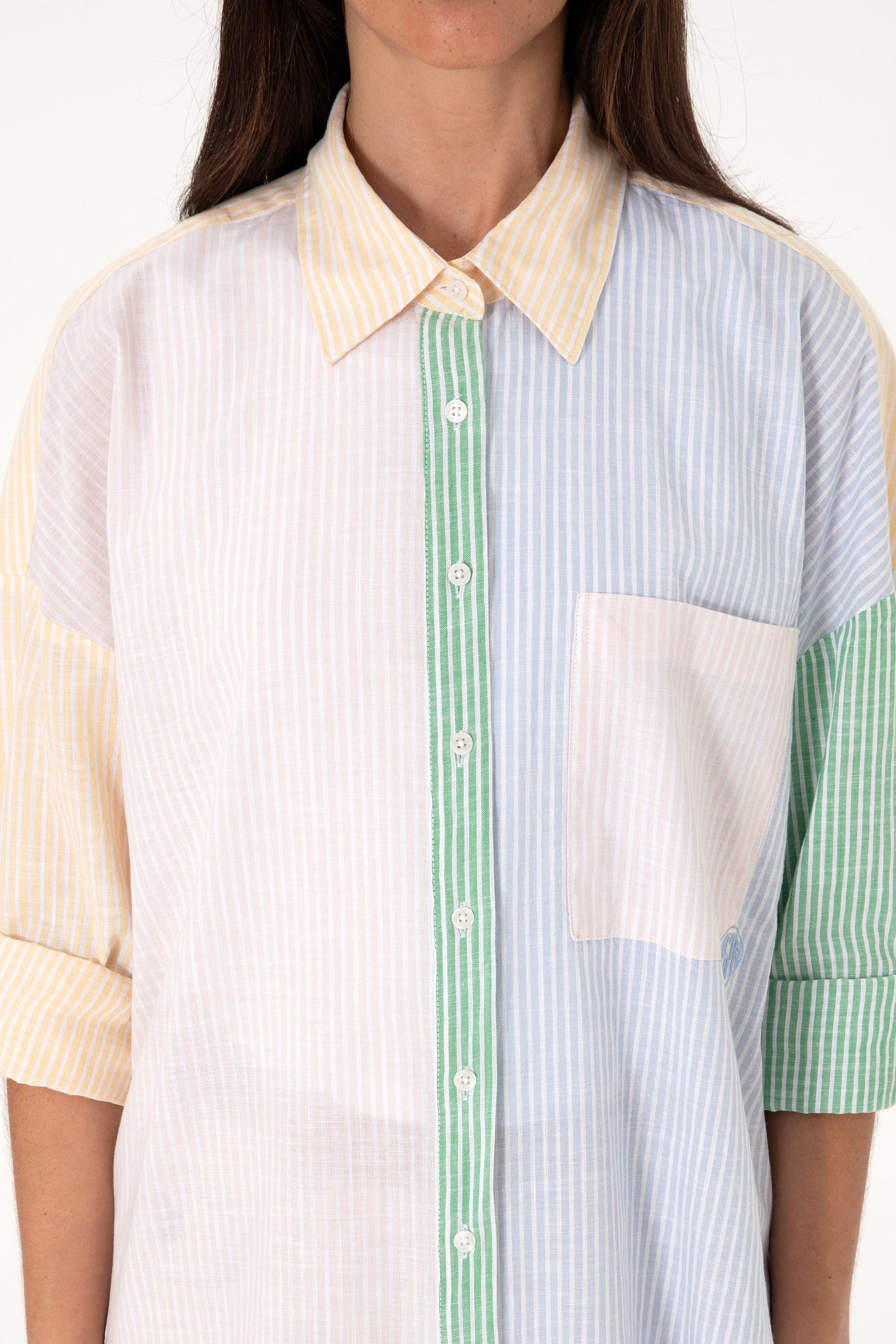 - Kadın Açık Pembe Çizgili Uzun Kollu Tunik Gömlek