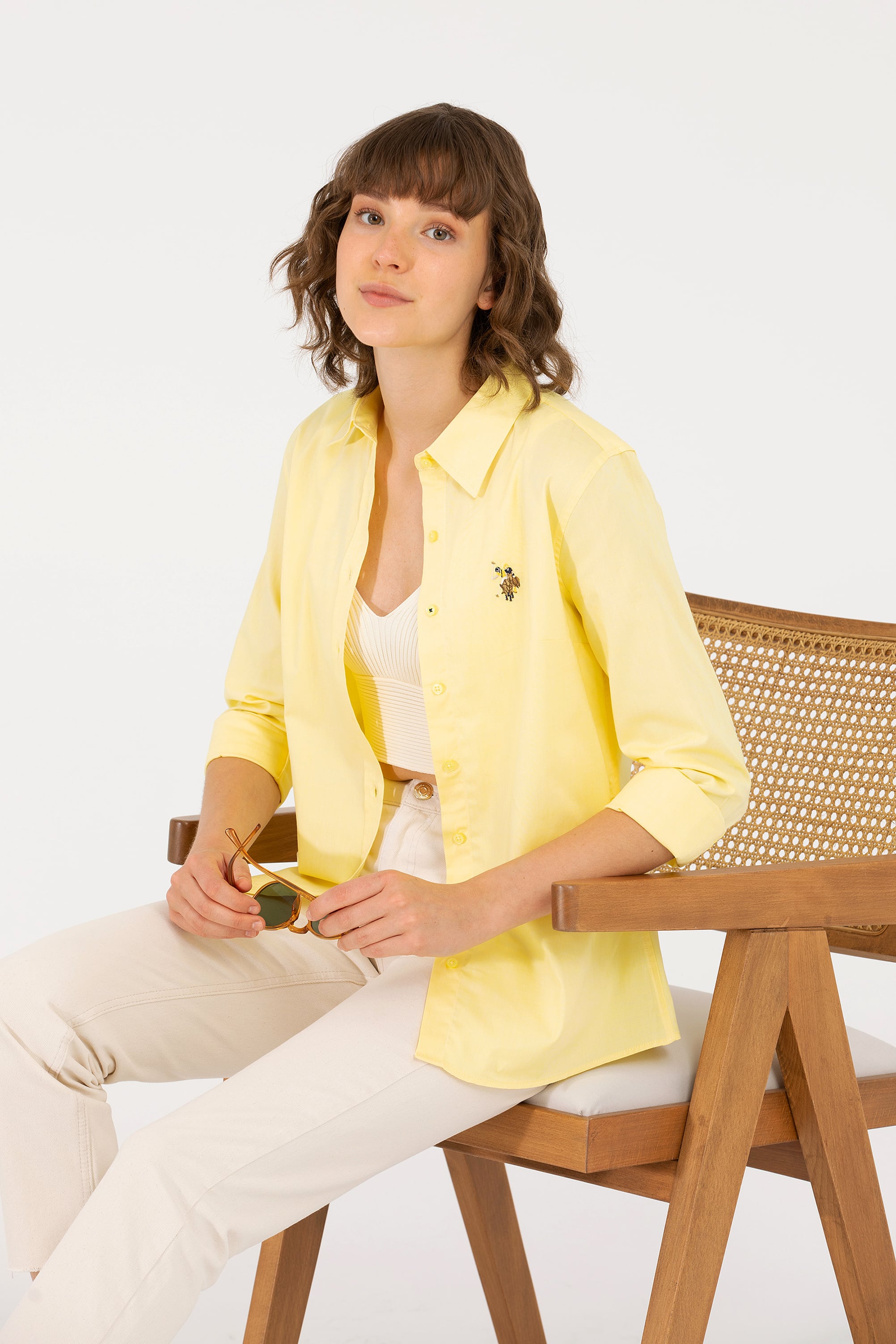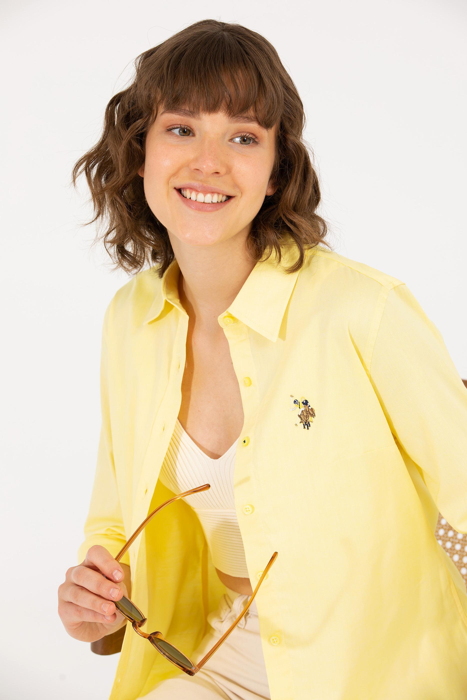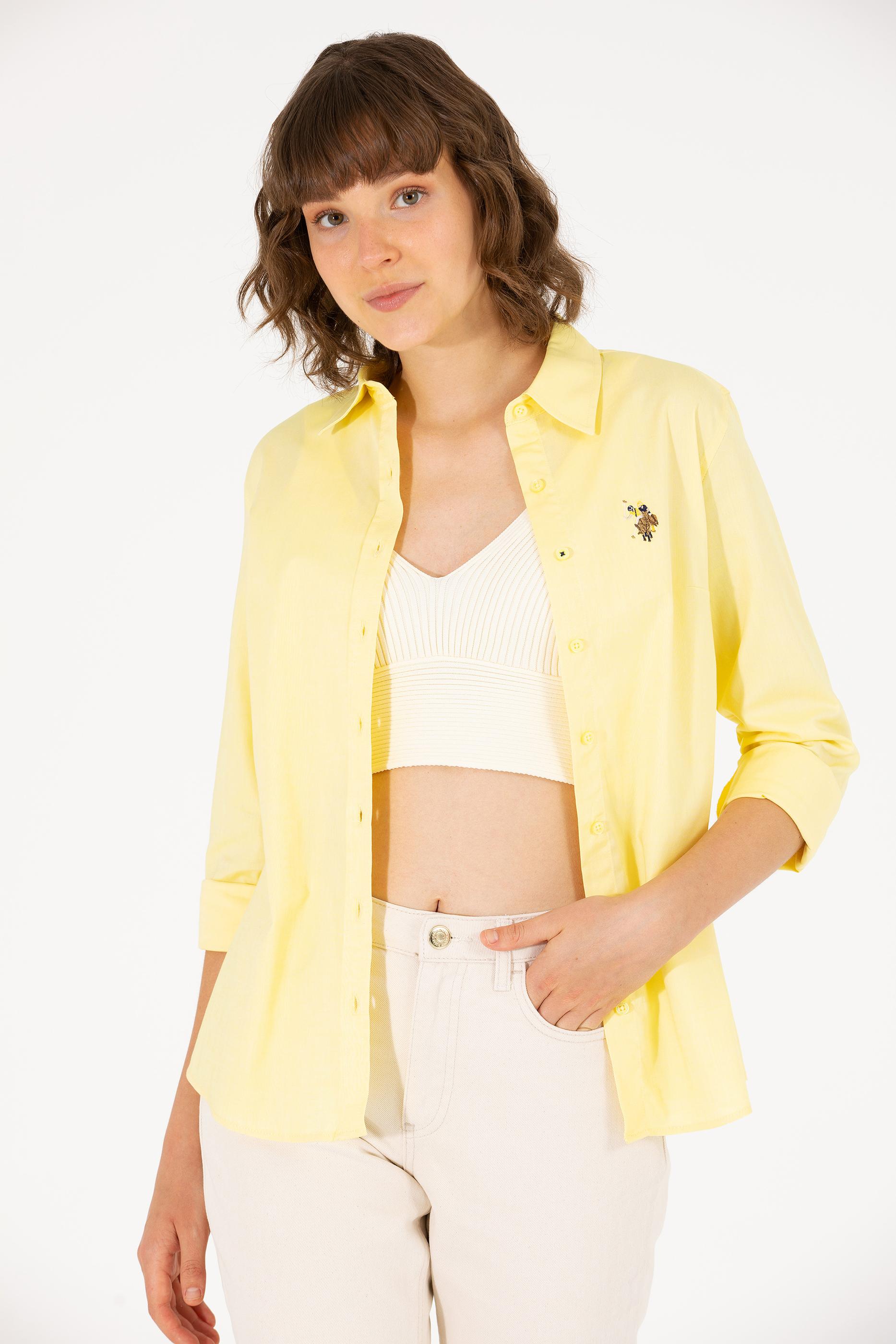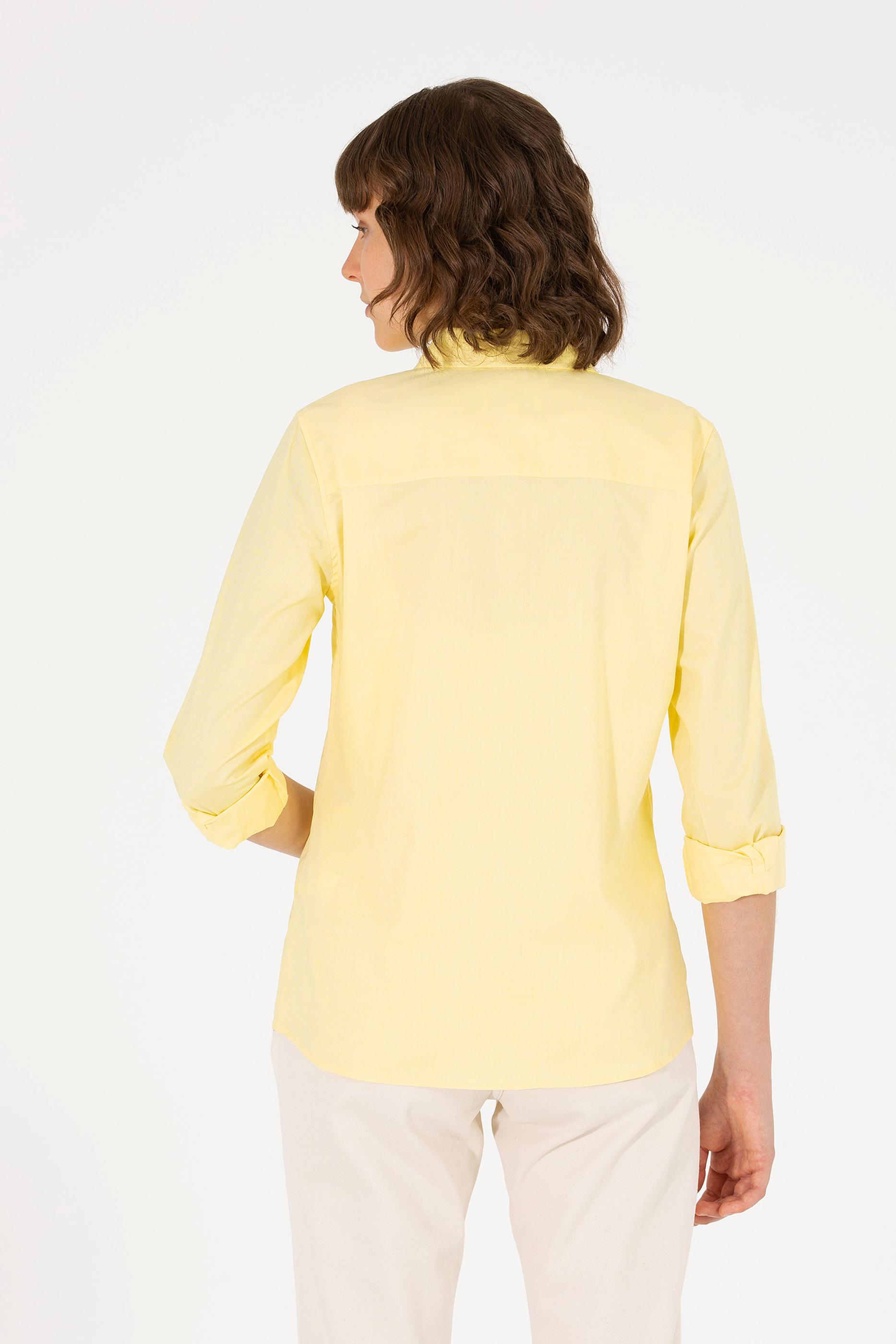 Kadın Açık Sarı Uzun Kollu Basic Gömlek