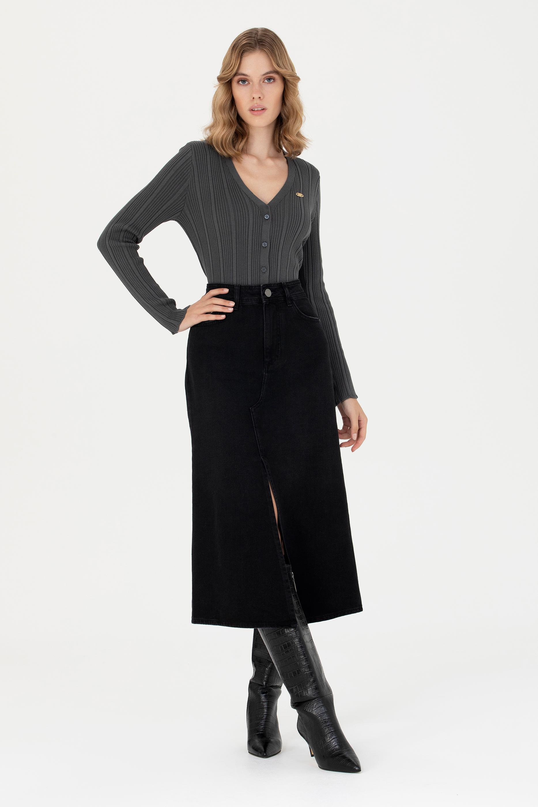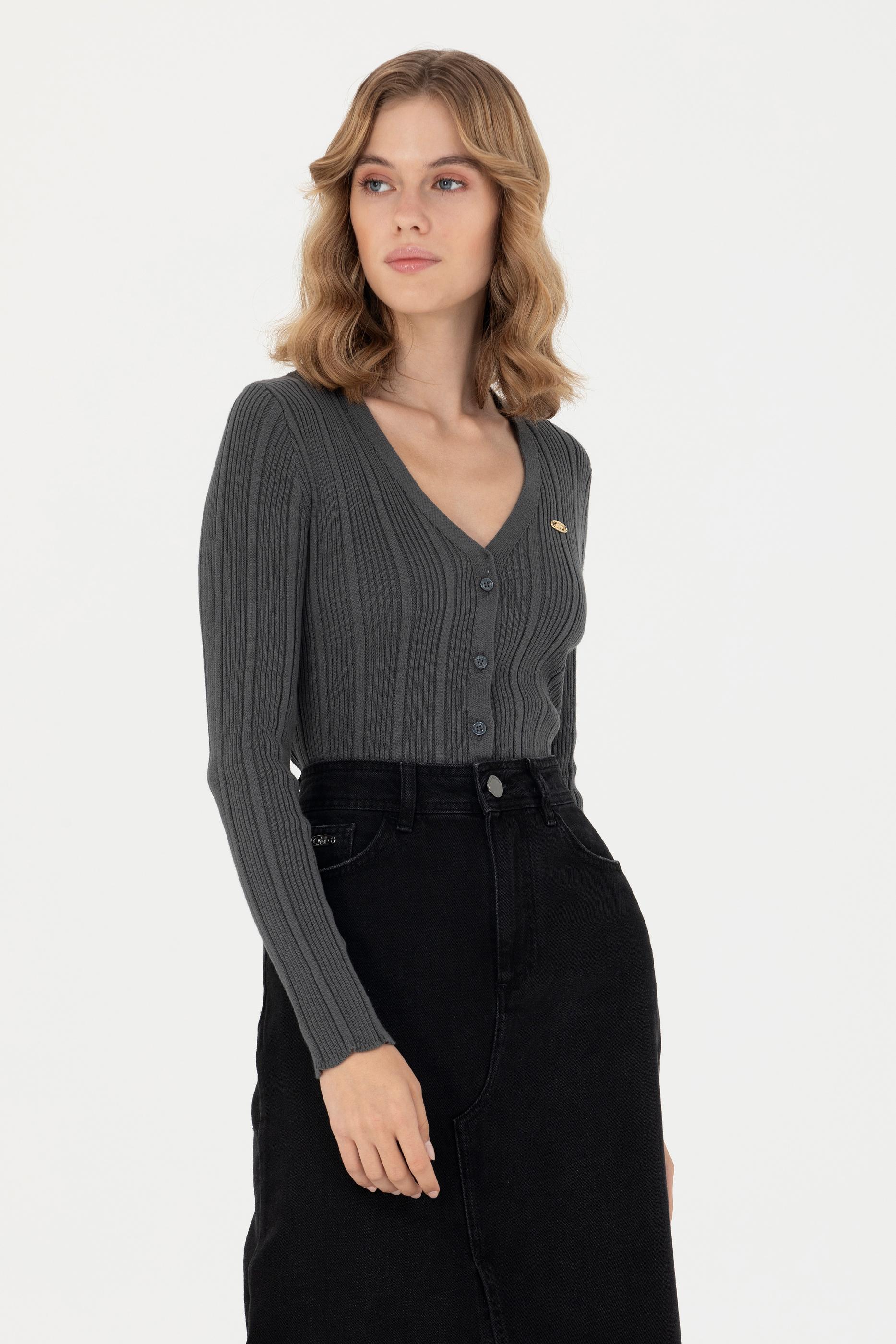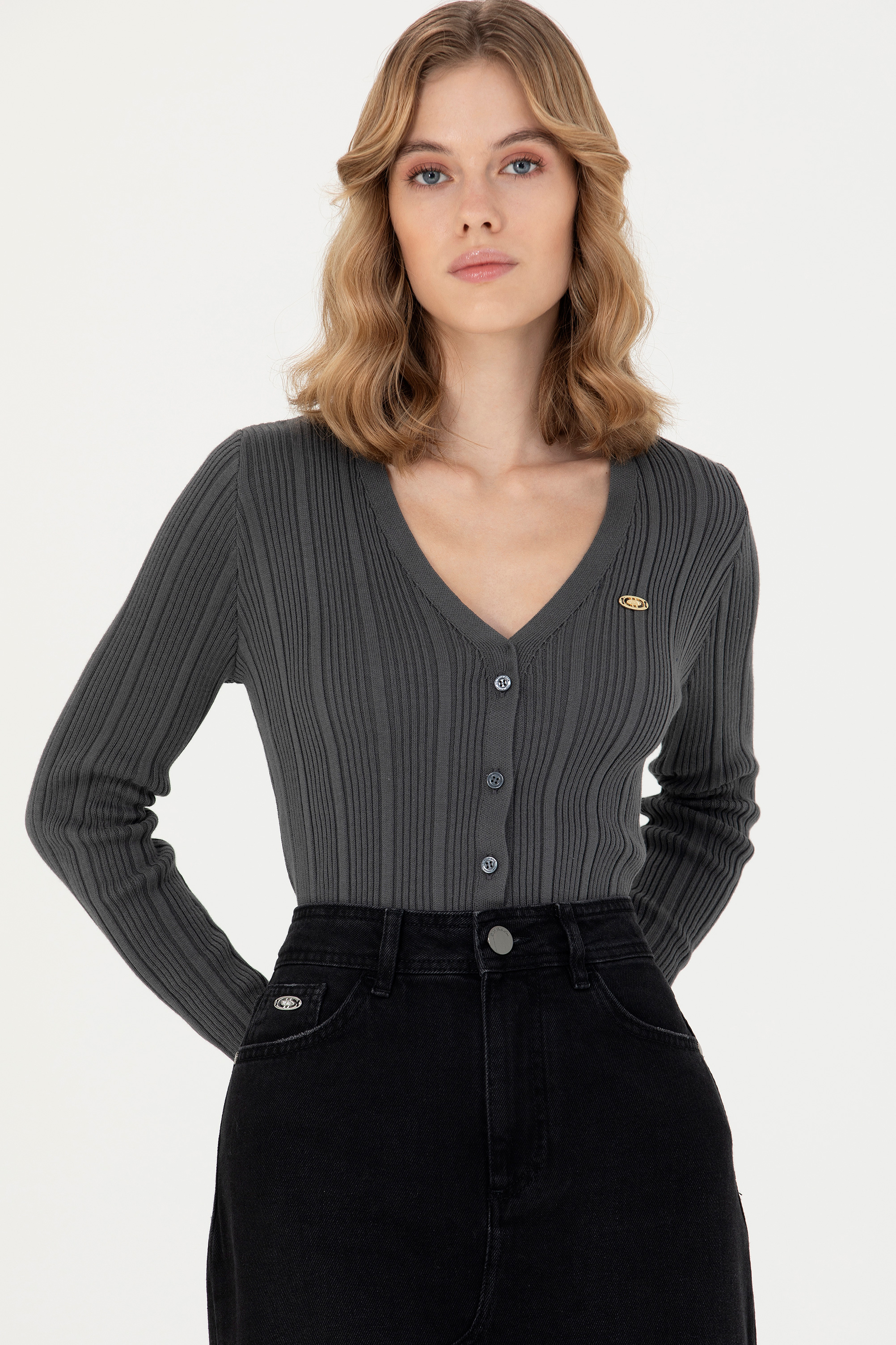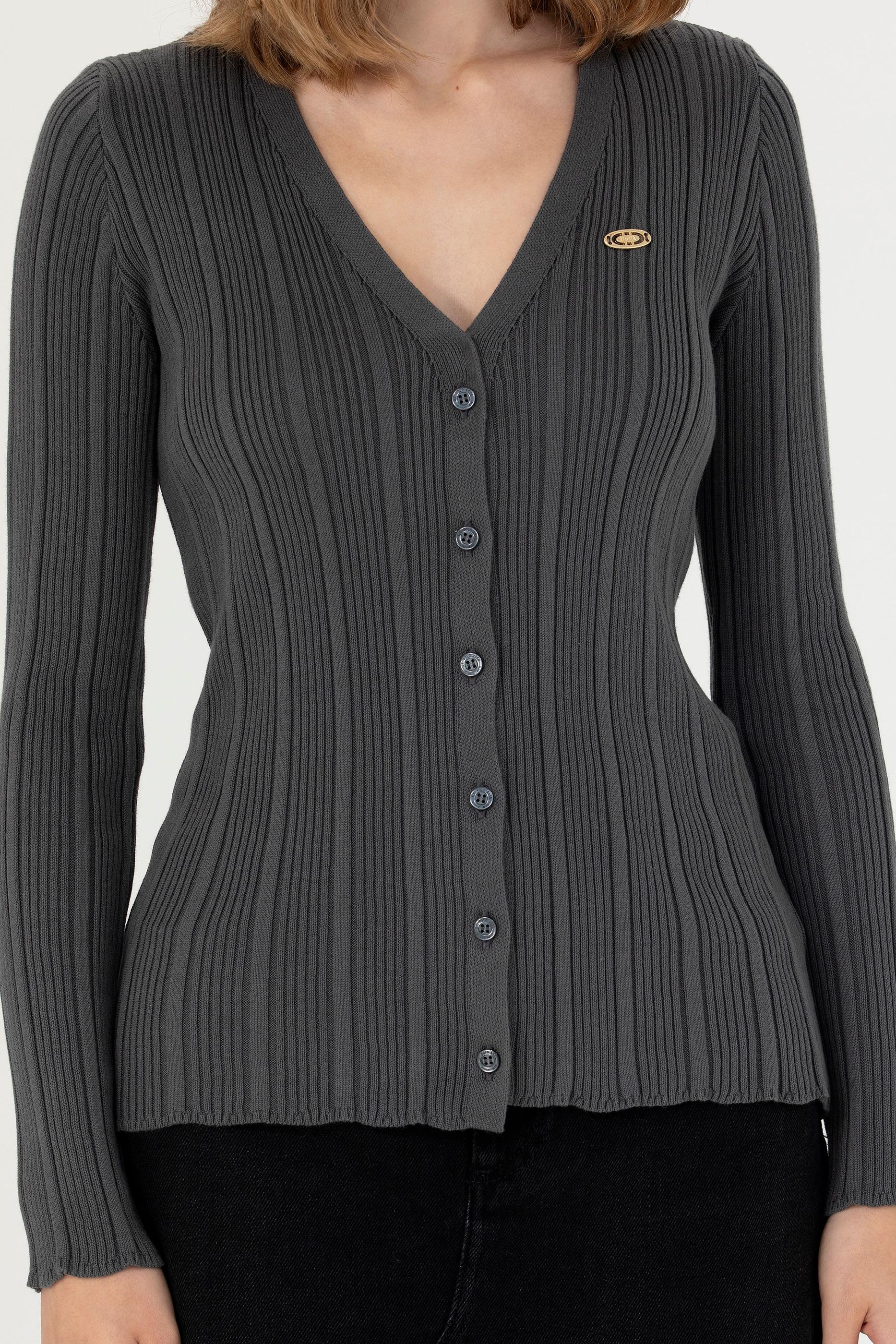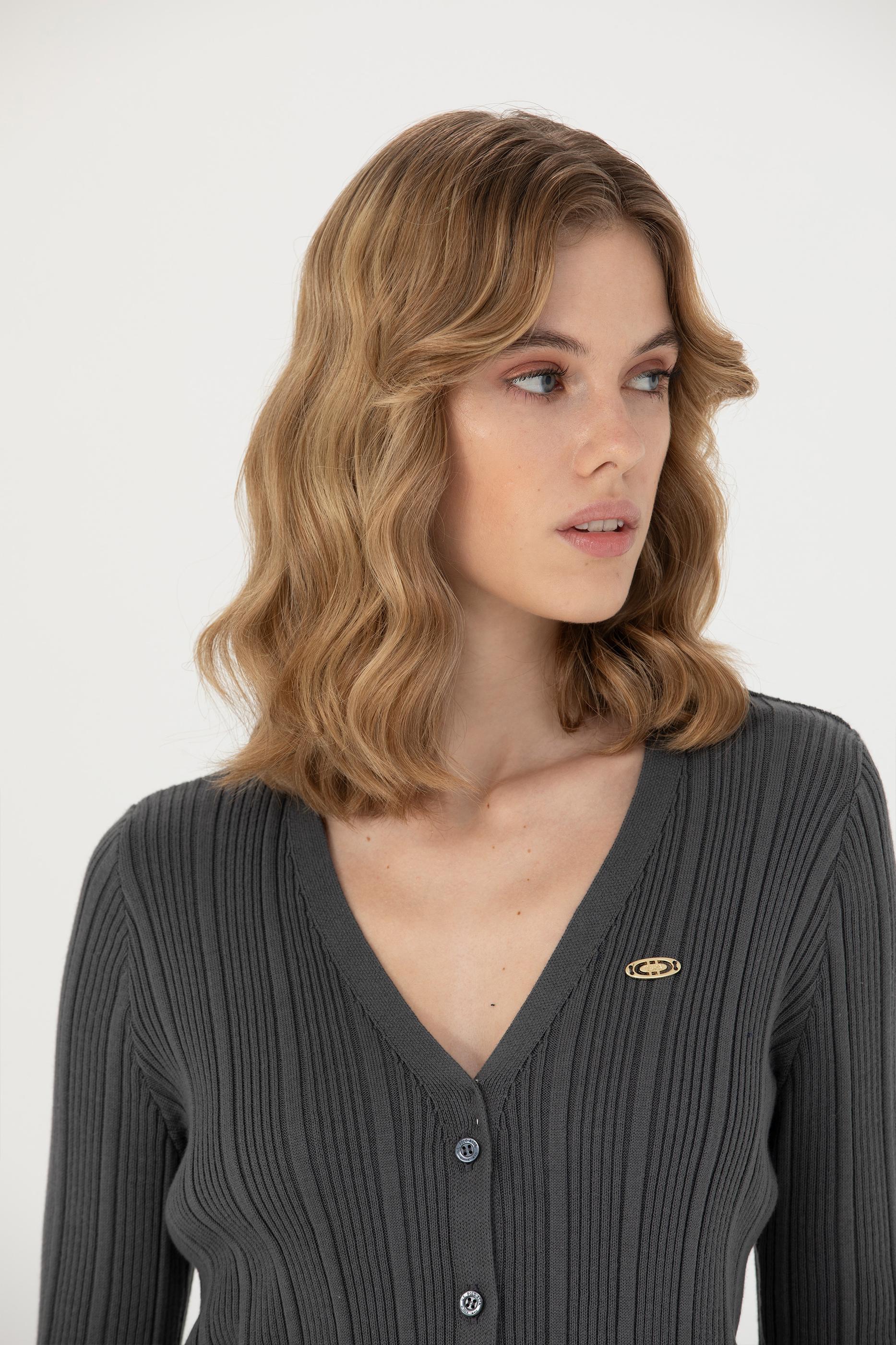 Sadece Online’da ulaşabileceğiniz ve basic tasarımı sayesinde sezonlar boyu birbirinden şık kombine imza atabileceğiniz kadın triko hırka modelimiz, %100 pamuk kumaş kullanılarak üretilmektedir. Dilerseniz tişört veya gömleklerle dilerseniz kalın düğmeleri sayesinde tek başına giyebileceğiniz V yaka kadın triko hırka modelimiz, sonbahar ve kış günlerinin kurtarıcı parçalarından biri olarak ilgi çekmektedir.