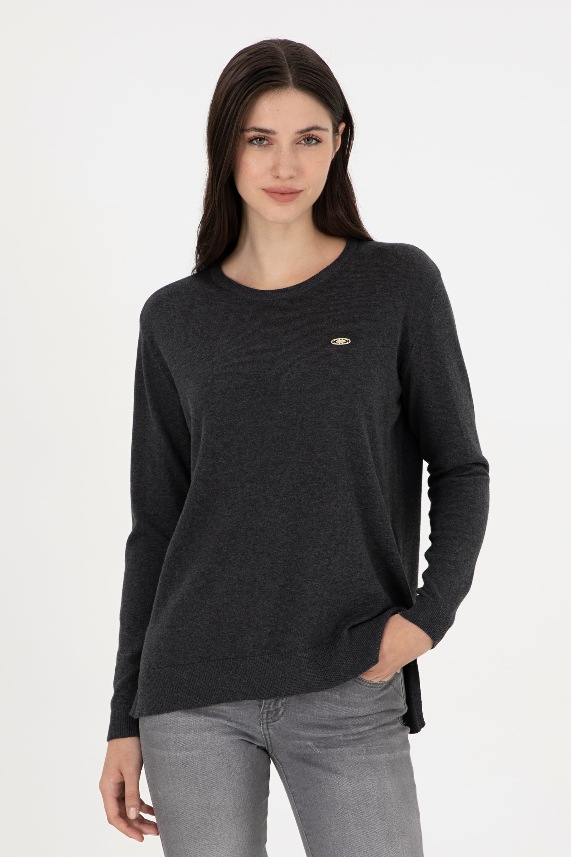Kadın Antrasit Melanj Basic Bisiklet Yaka Kazak