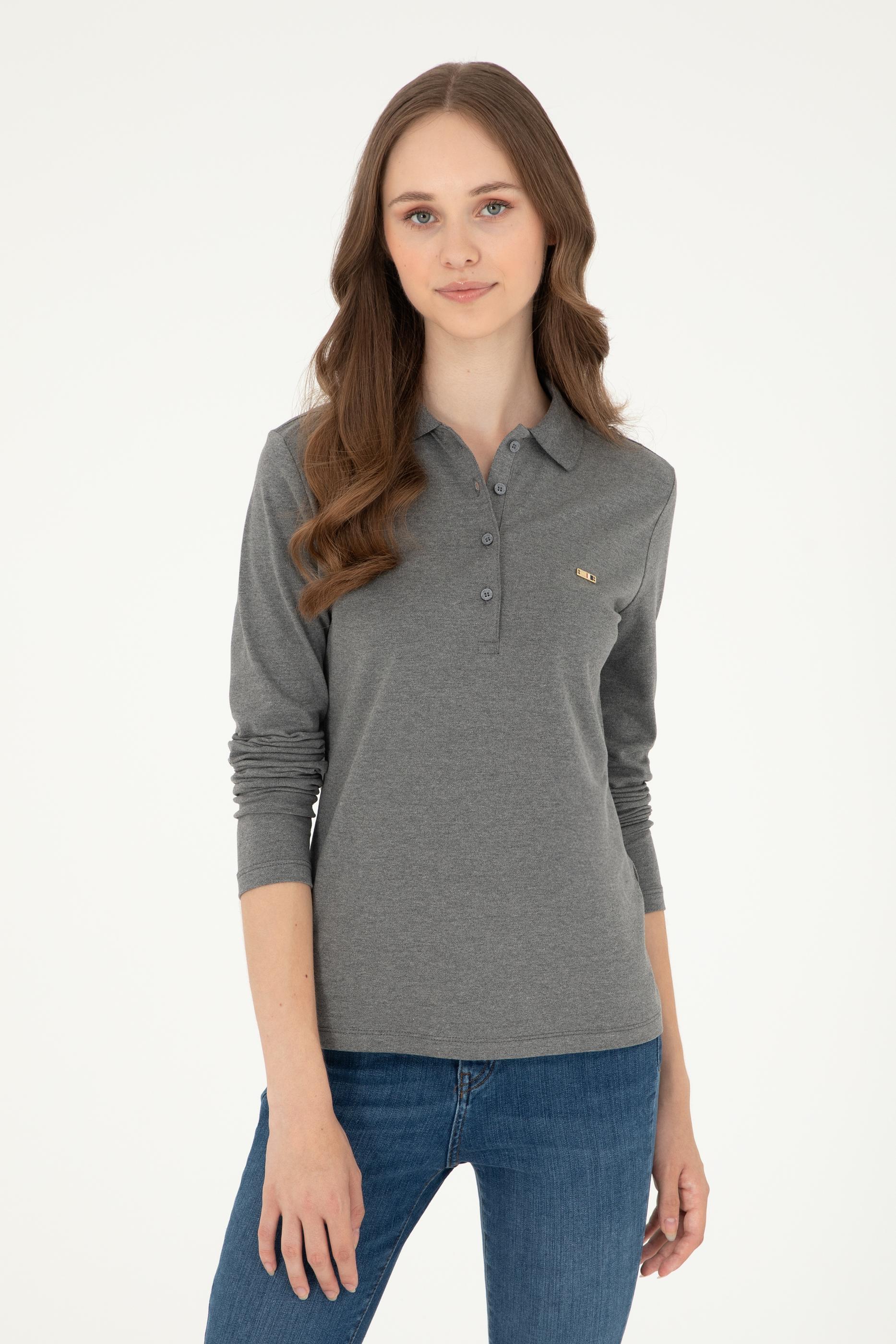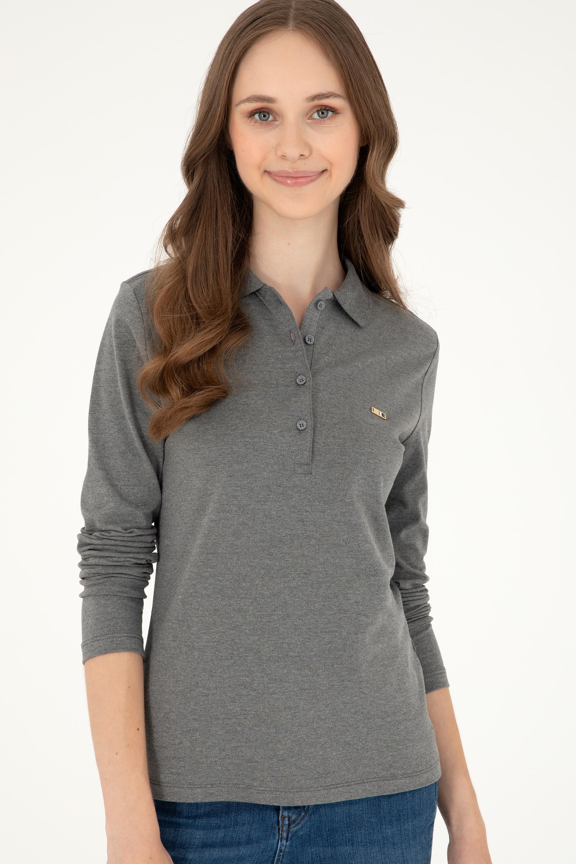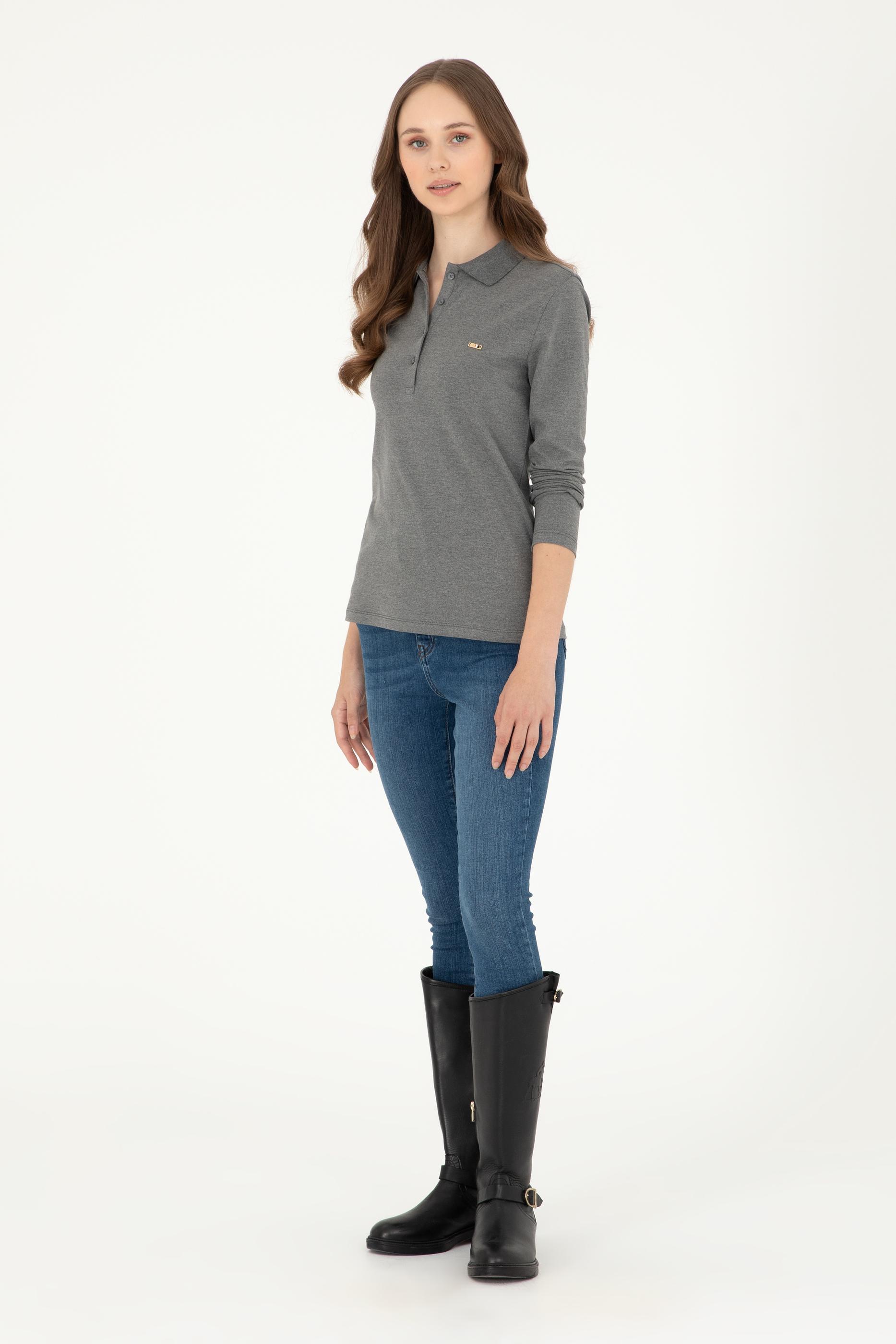 Kadın Antrasit Melanj Basic Polo Yaka Sweatshirt