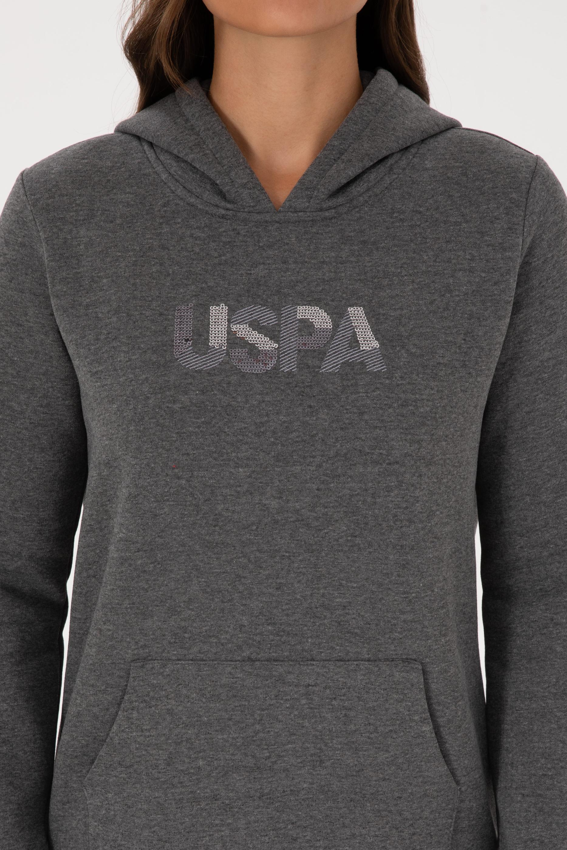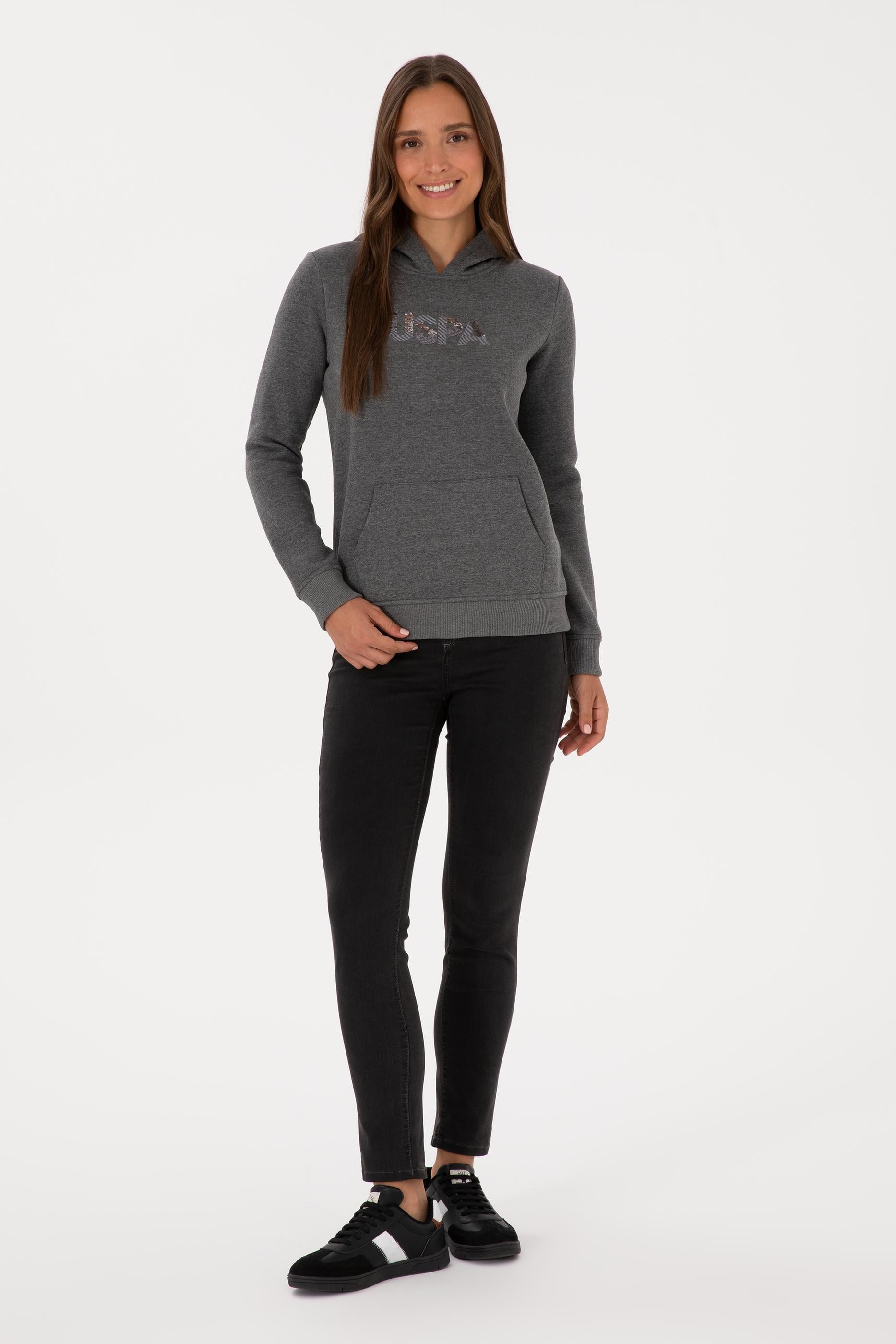 - Kadın Antrasit Melanj Kapüşonlu Basic Sweatshirt