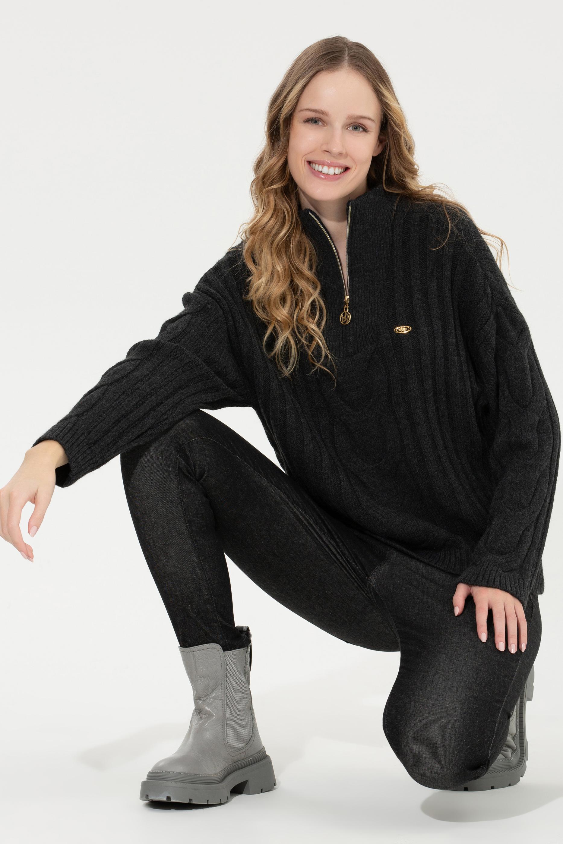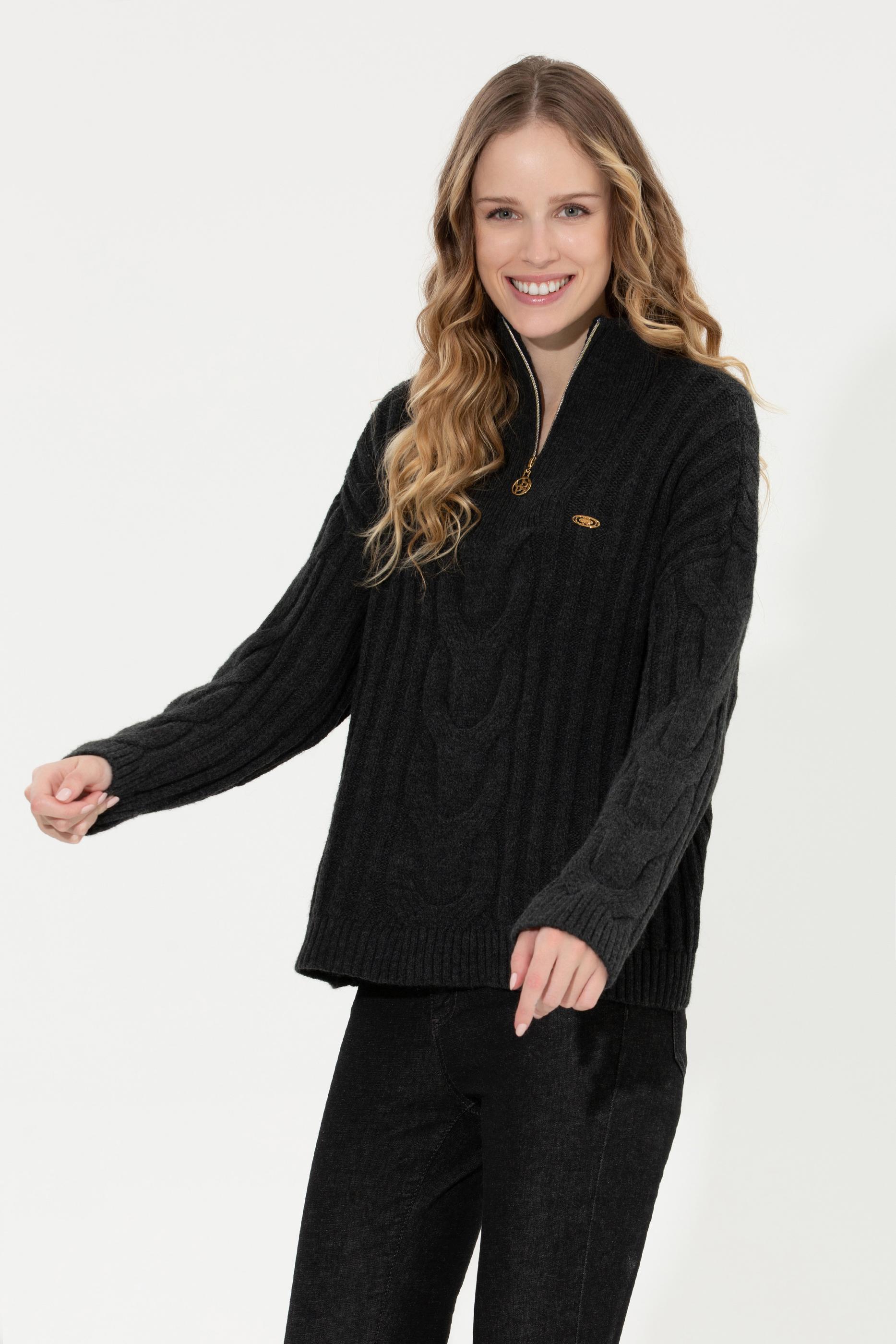 Kadın Antrasit Melanj Kazak
