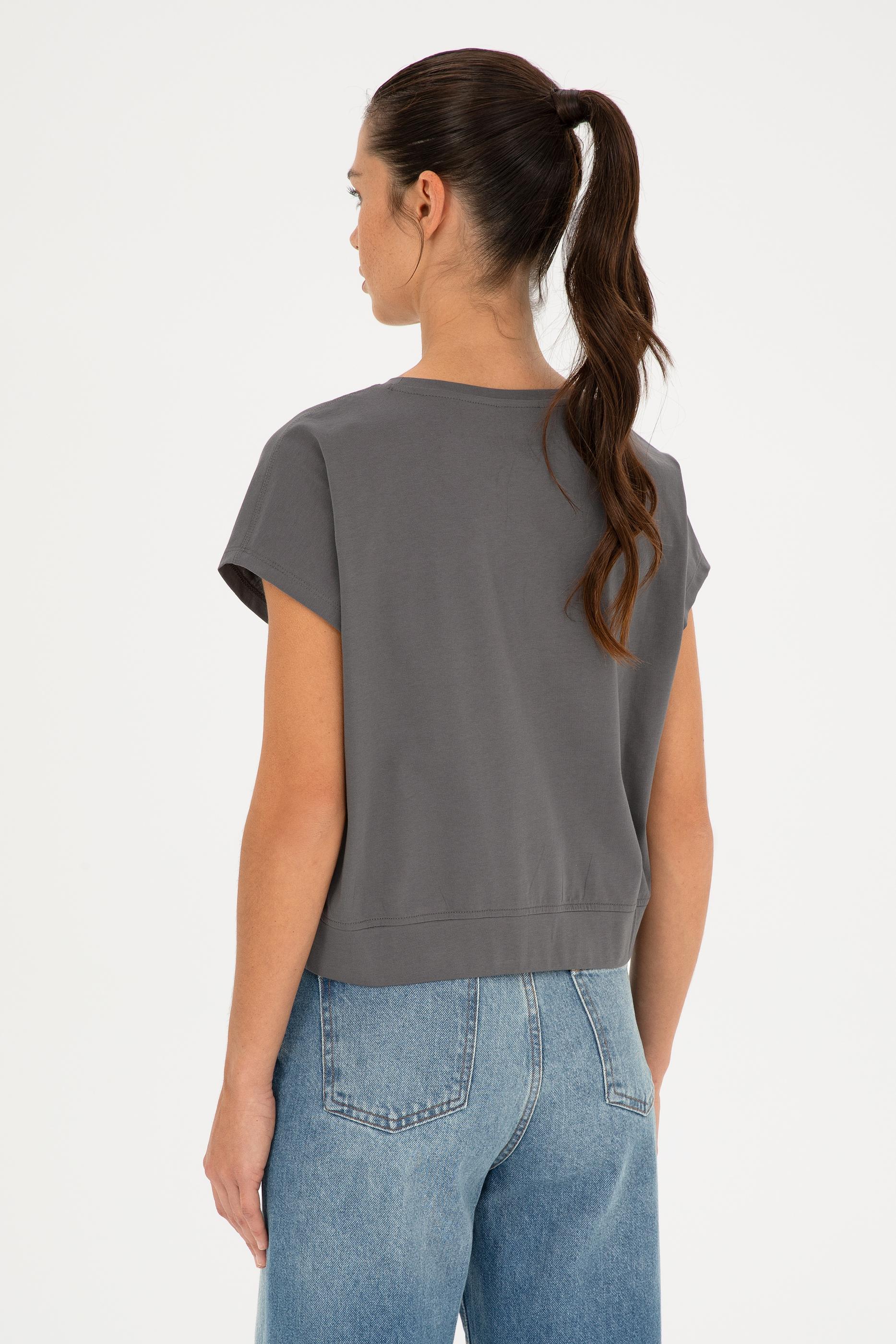 Her günün koşuşturmasında kendinizi rahat hissetmek isterseniz antrasit crop top kadın tişört tam size göre. Yumuşak pamuk kumaşı ve modern kesimi ile her an kendinizi ferah hissedersiniz. Şık ve minimal çizgileriyle bu parça, gardırobunuzun olmazsa olmazı haline gelecek.