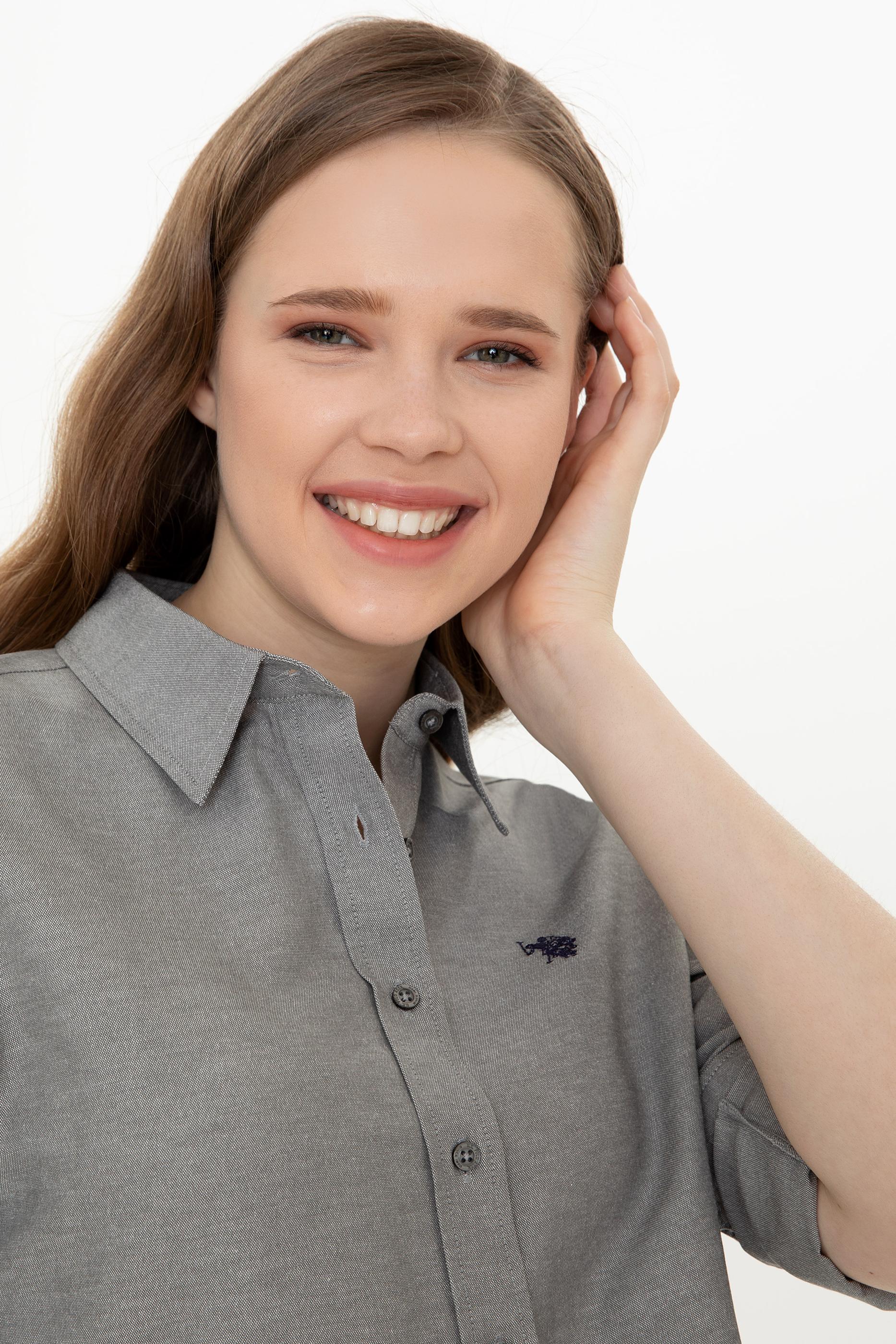 - Kadın Antrasit Uzun Kollu Basic Gömlek