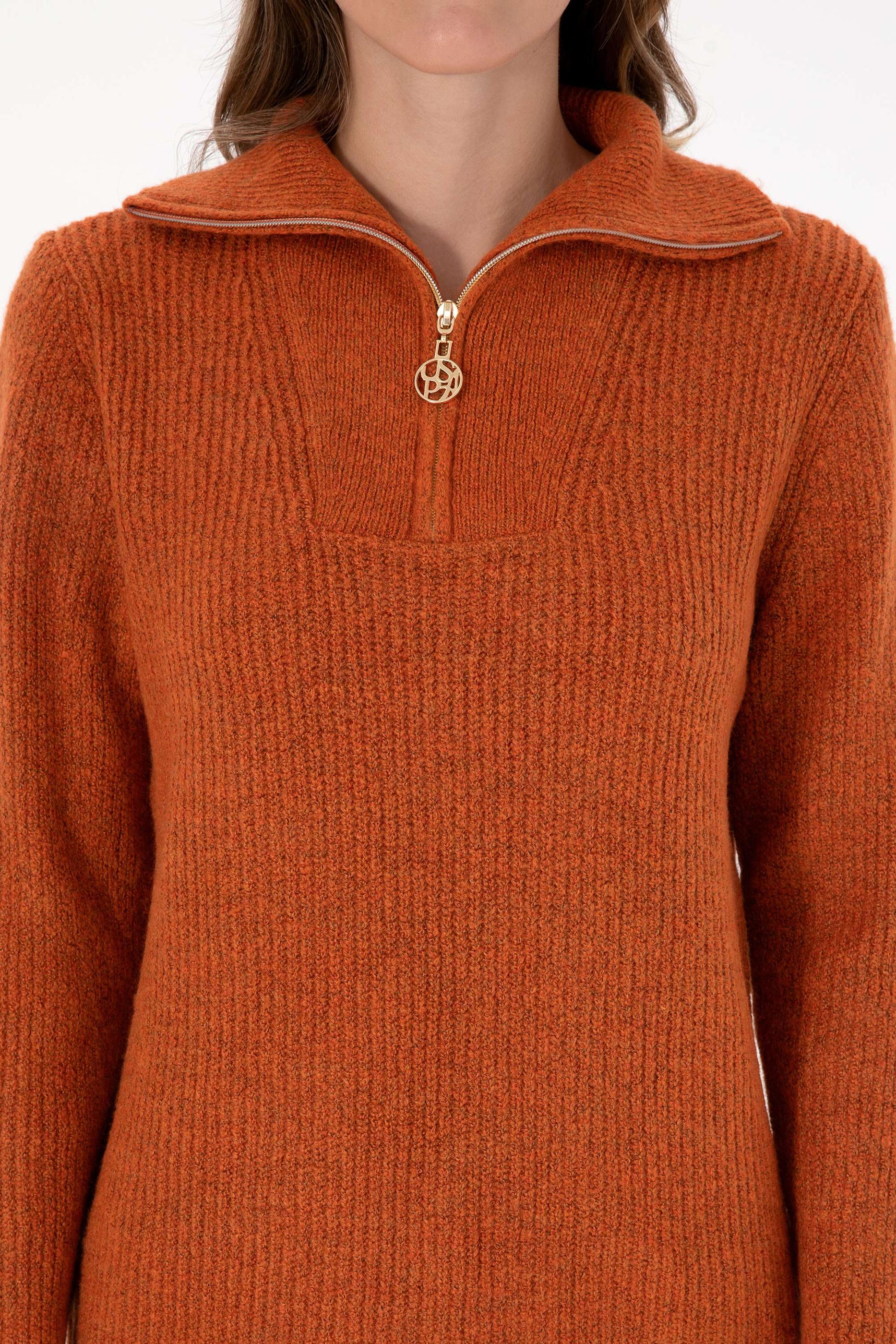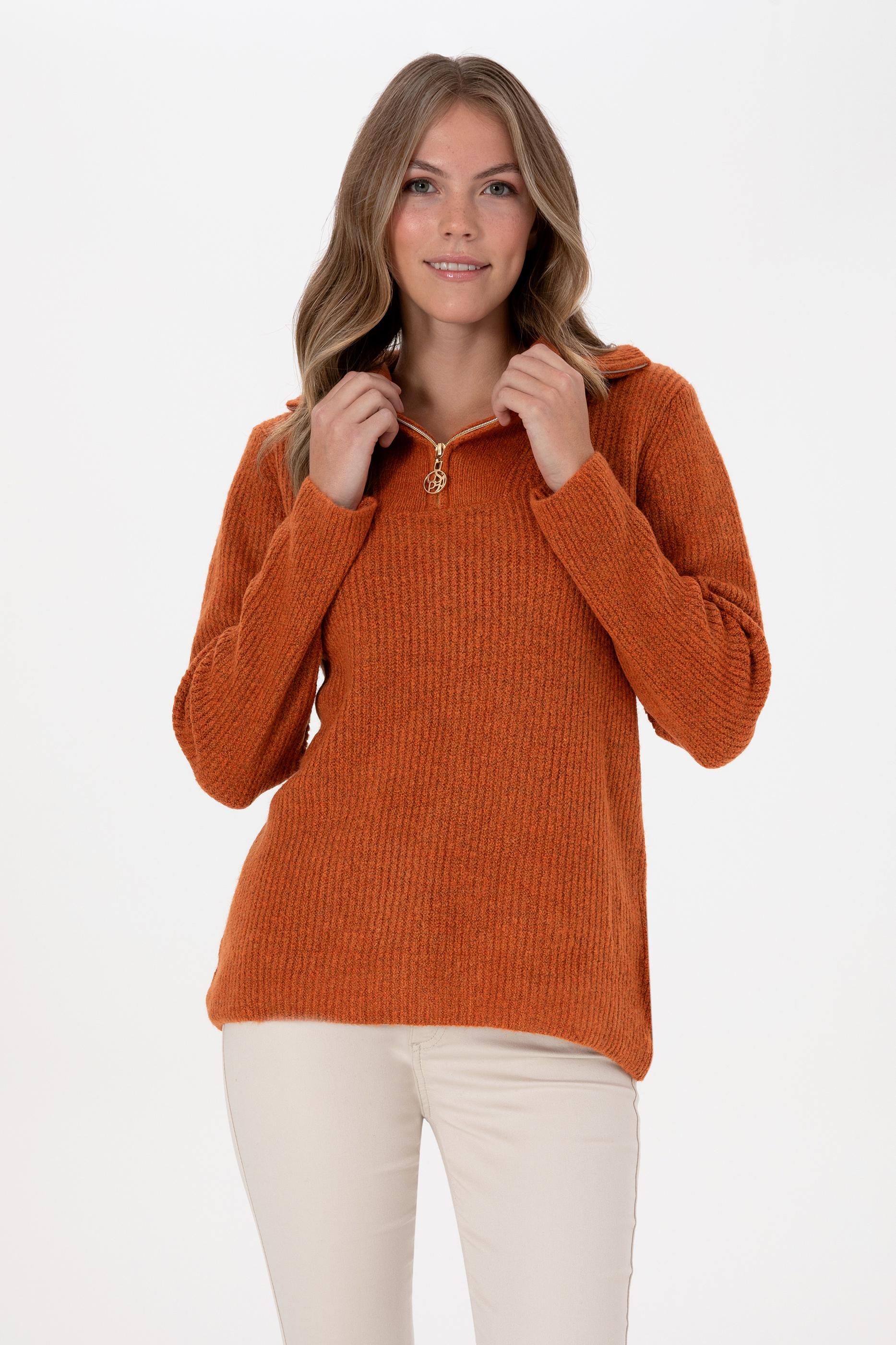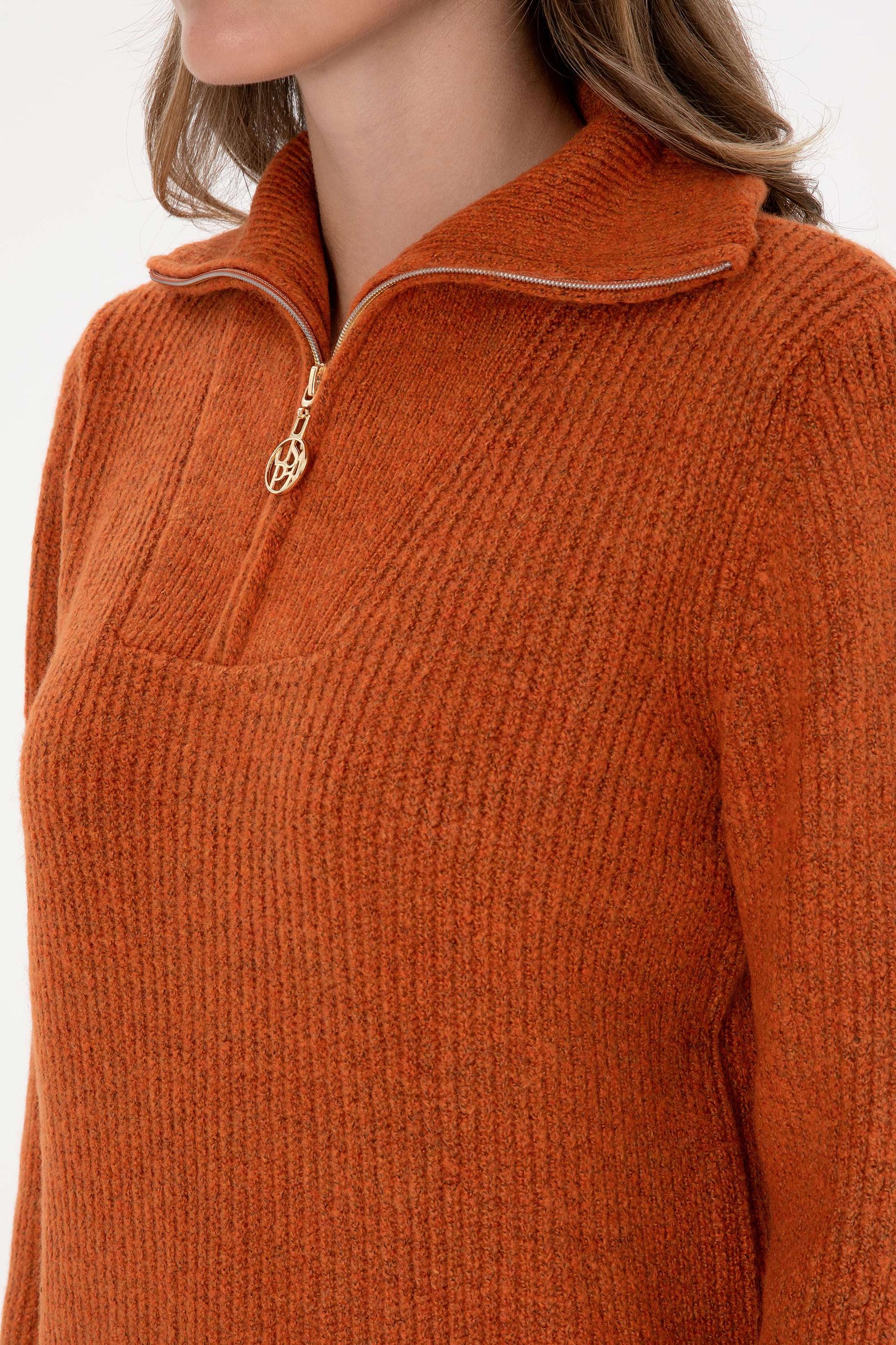 Kadın Bakır V Yaka Fermuarlı Kazak