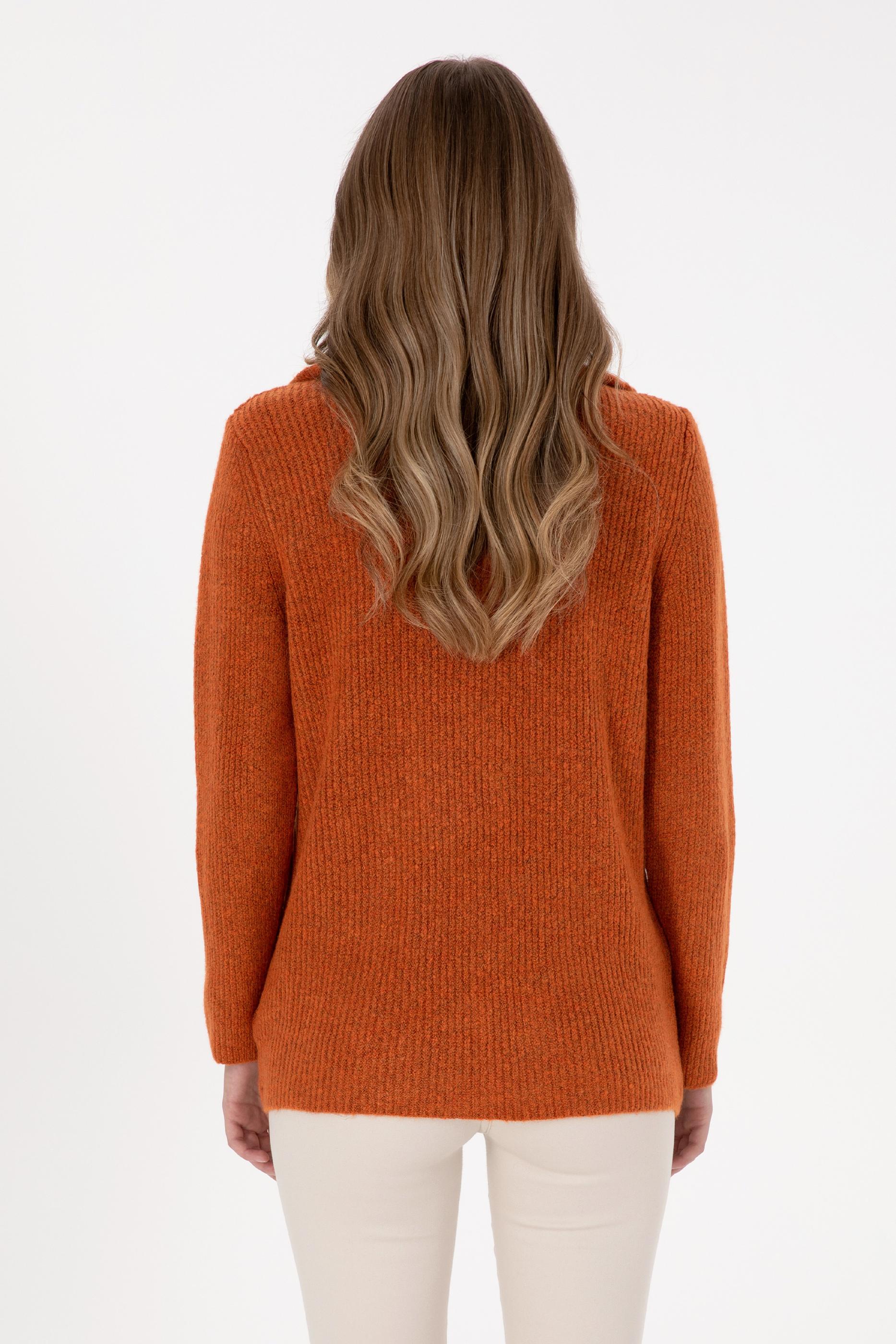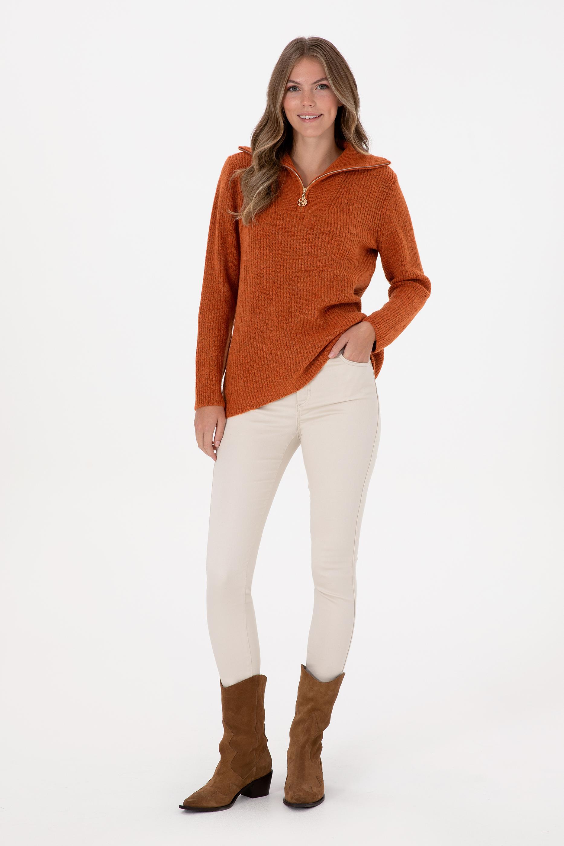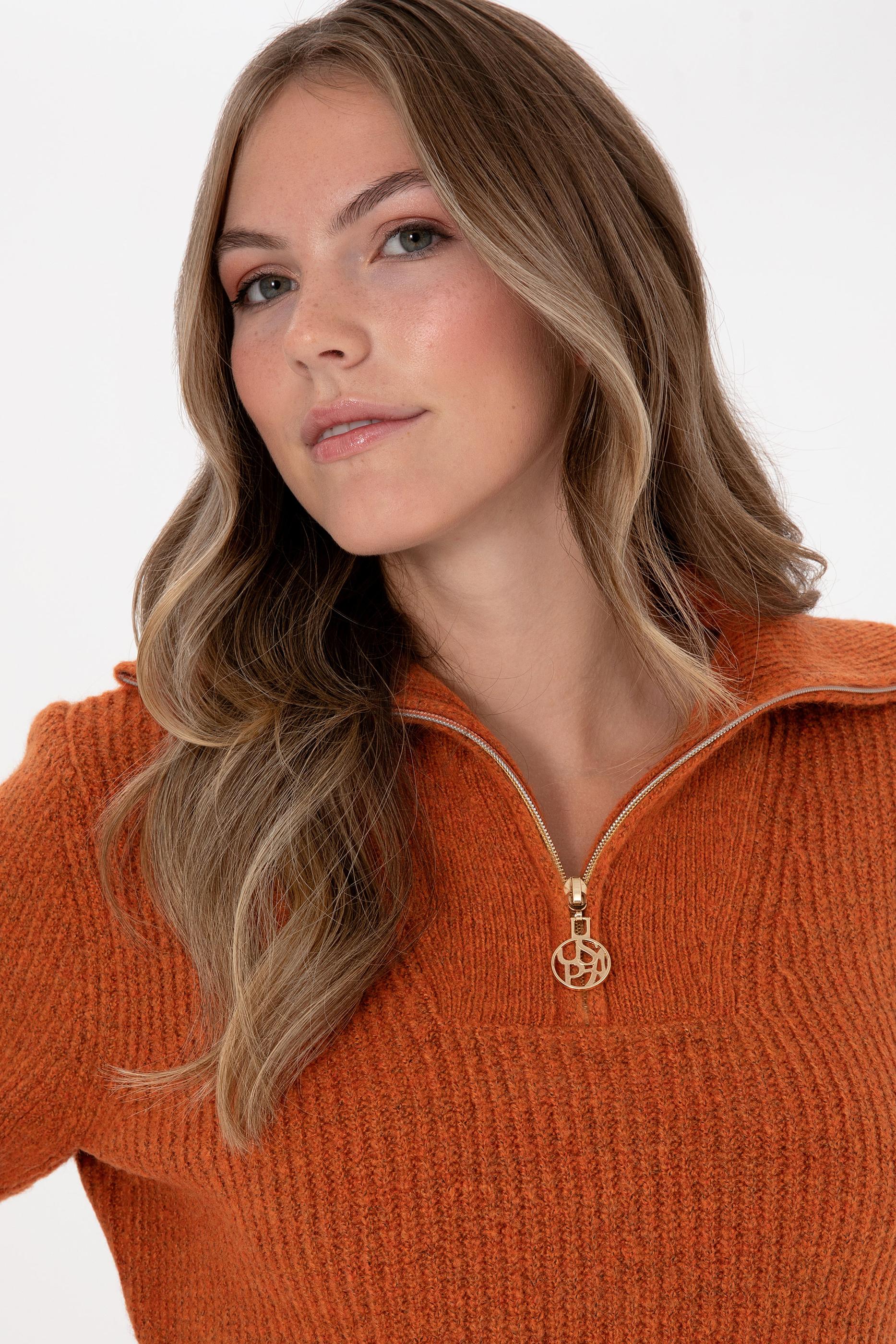 Kadın Bakır V Yaka Fermuarlı Kazak