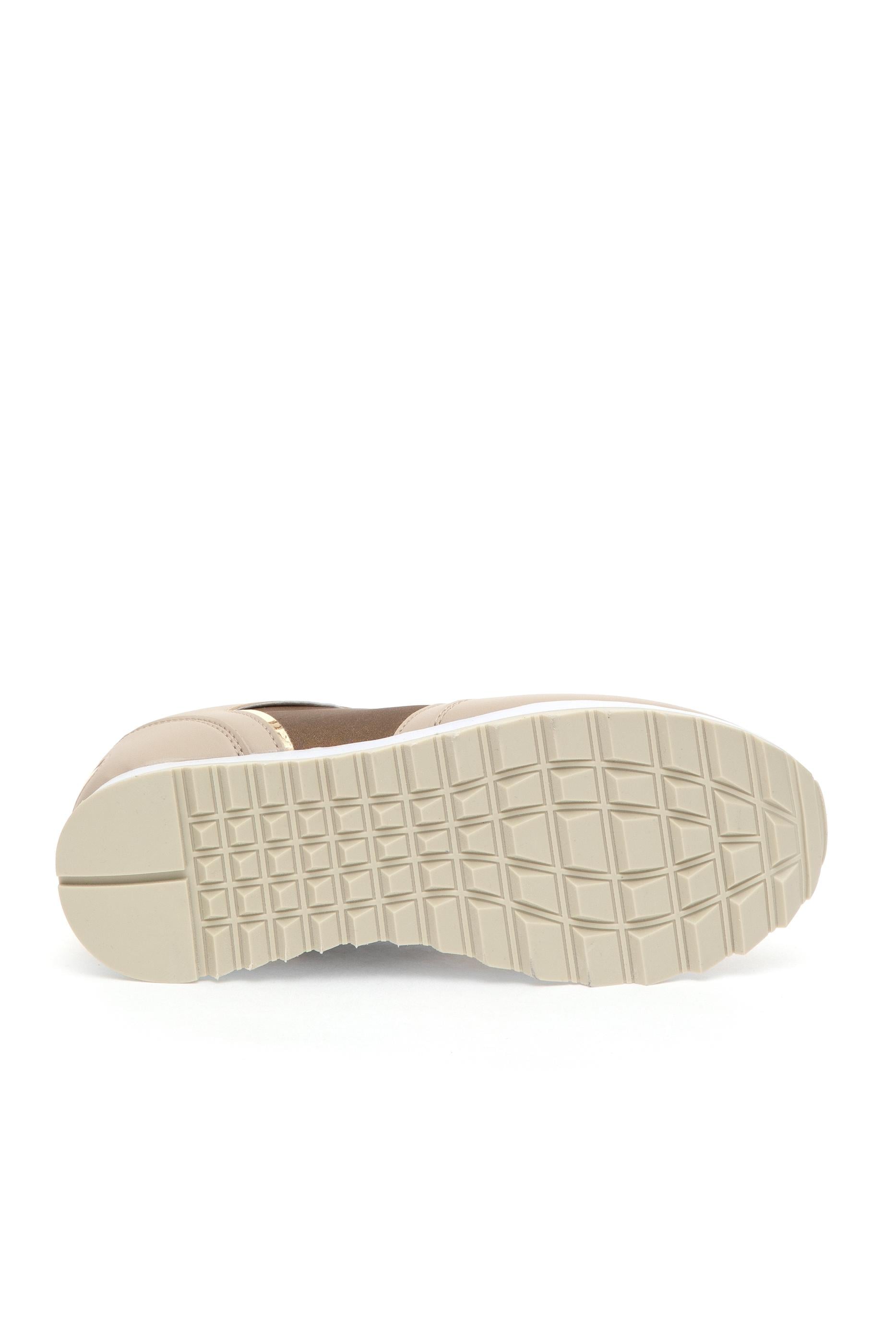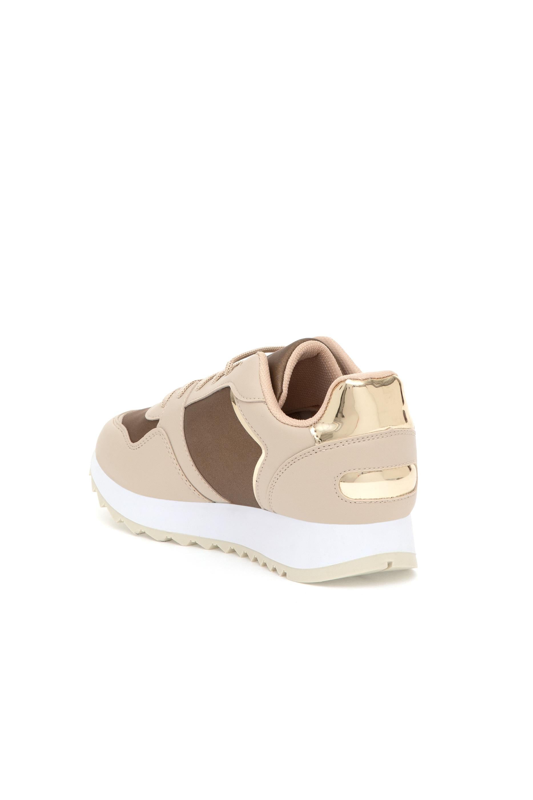Bu model, yumuşak bej tonlarının zarif ve sakin havasını, dikkat çekici metalik detaylarla bir araya getirerek hem günlük kullanımda hem de şehirli kombinlerde rahatlıkla tercih edilebilecek şık bir görünüm sunuyor. Üst yüzeyinde yer alan hafif parlak paneller, tasarıma modern bir enerji katarken, spor çizgiyi daha sofistike bir hale getiriyor. Yumuşak dokulu dış malzemesi, ayağı nazikçe kavrayarak gün boyu konfor sağlarken, hafif ve esnek tabanı adımlarınıza özgürlük ve hafiflik kazandırıyor. Minimal ama aynı zamanda etkileyici tasarımı sayesinde jean, jogger ya da zarif bir elbise gibi farklı tarzlarla kolayca uyum sağlayarak dolabınızın en çok kullanılan parçalarından biri olma potansiyeli taşıyor.