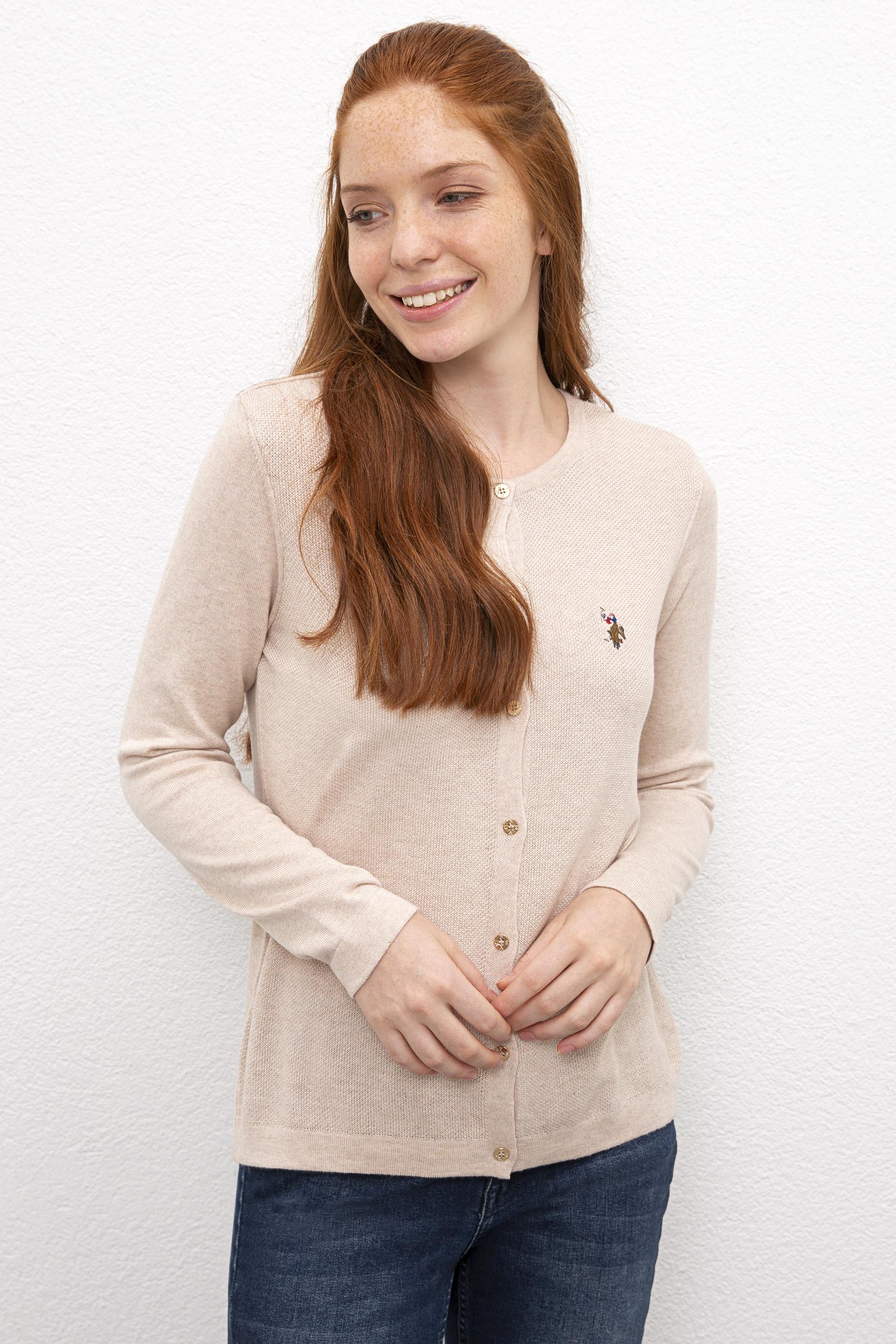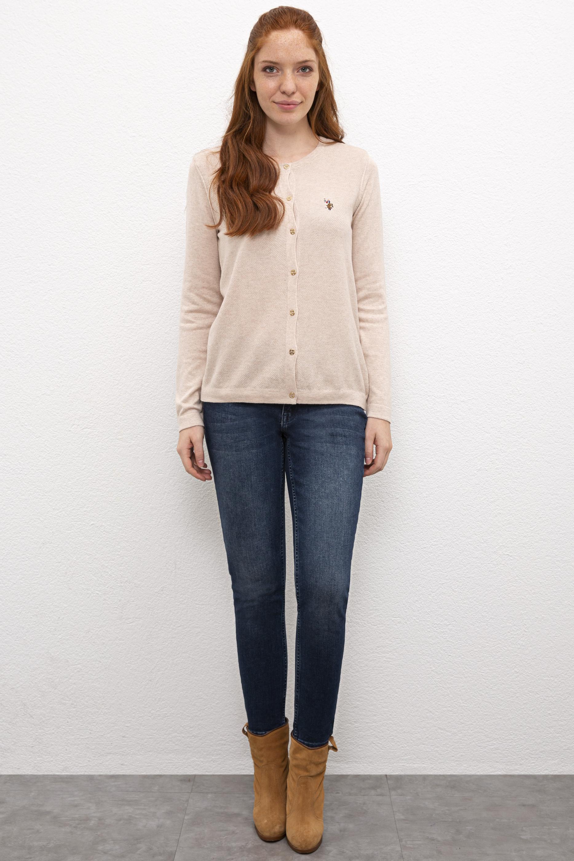 Kadın Bej Basic Triko Hırka