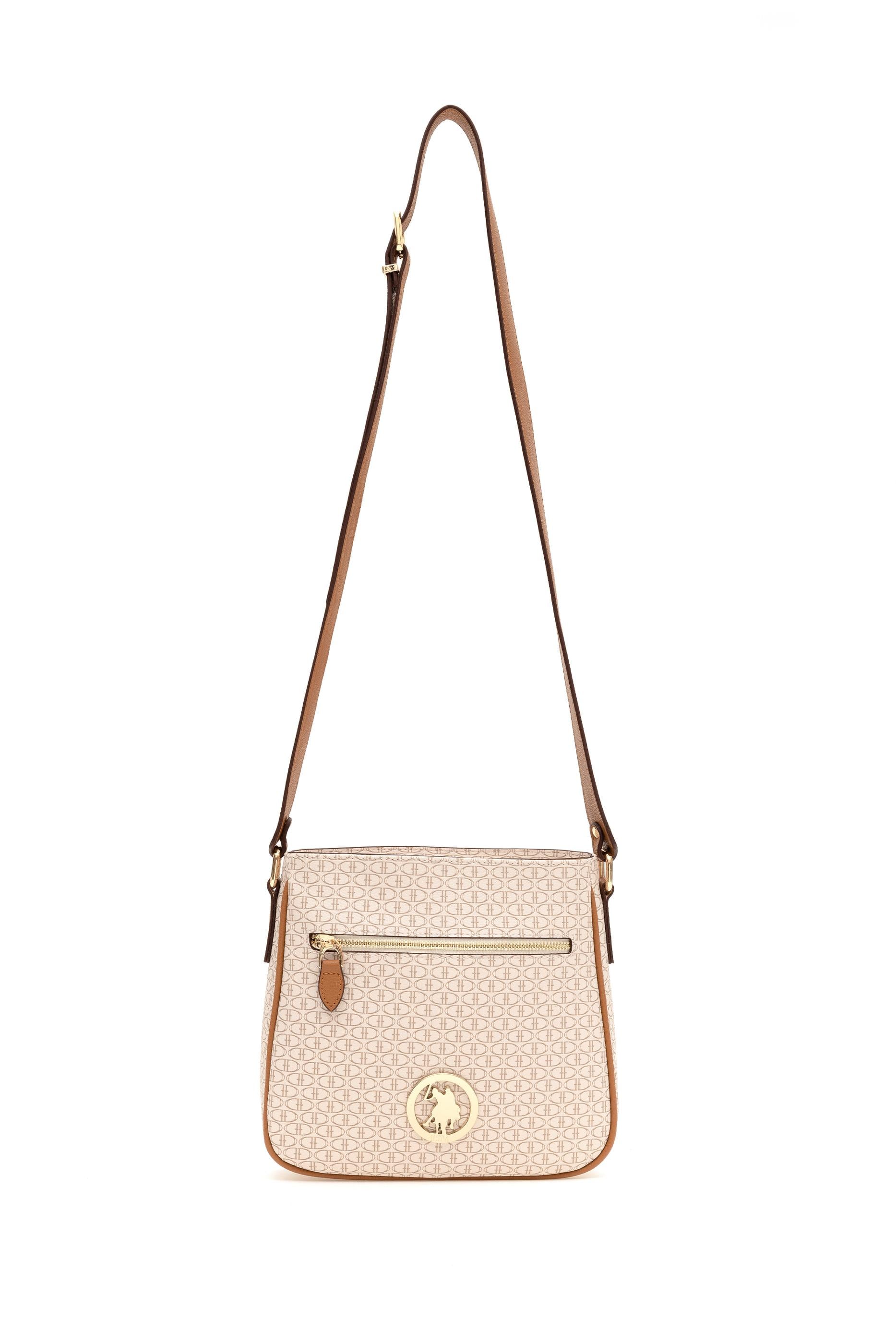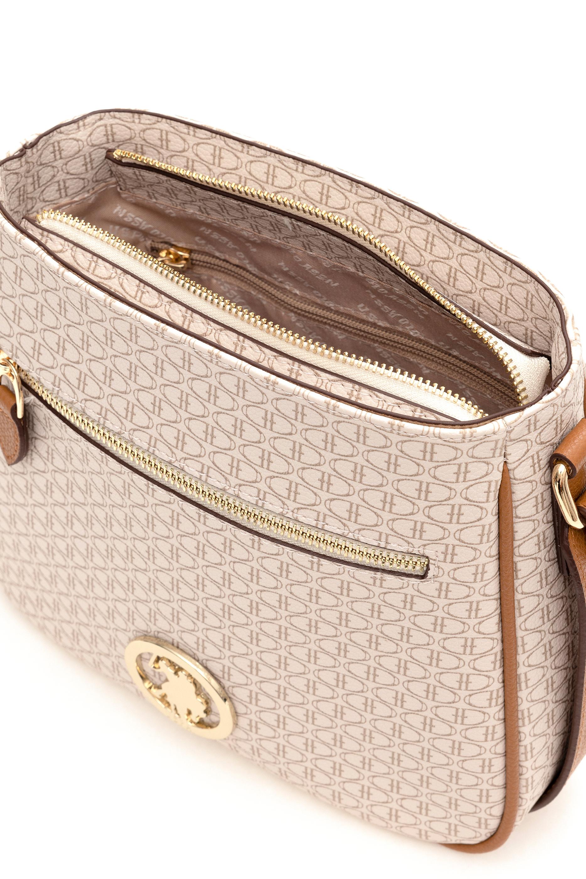 U.S. Polo Assn. bej çapraz çanta, kompakt yapısı ve hafif tasarımıyla günlük kullanımda pratiklik sunar. Tüm yüzeyi markaya özgü küçük desenlerle kaplıdır; ön kısmında altın renkli yuvarlak metal logo ve fermuarlı bir dış cep yer alır. İç bölmesi fermuarlı kapamalıdır. Ayarlanabilir omuz askısı sayesinde vücuda göre ayarlanabilir ve rahatça taşınabilir. Kahverenginin sıcak tonlarıyla sade ve şık bir görünüm sunan model, işlevsel yapısıyla her stile uyum sağlar.