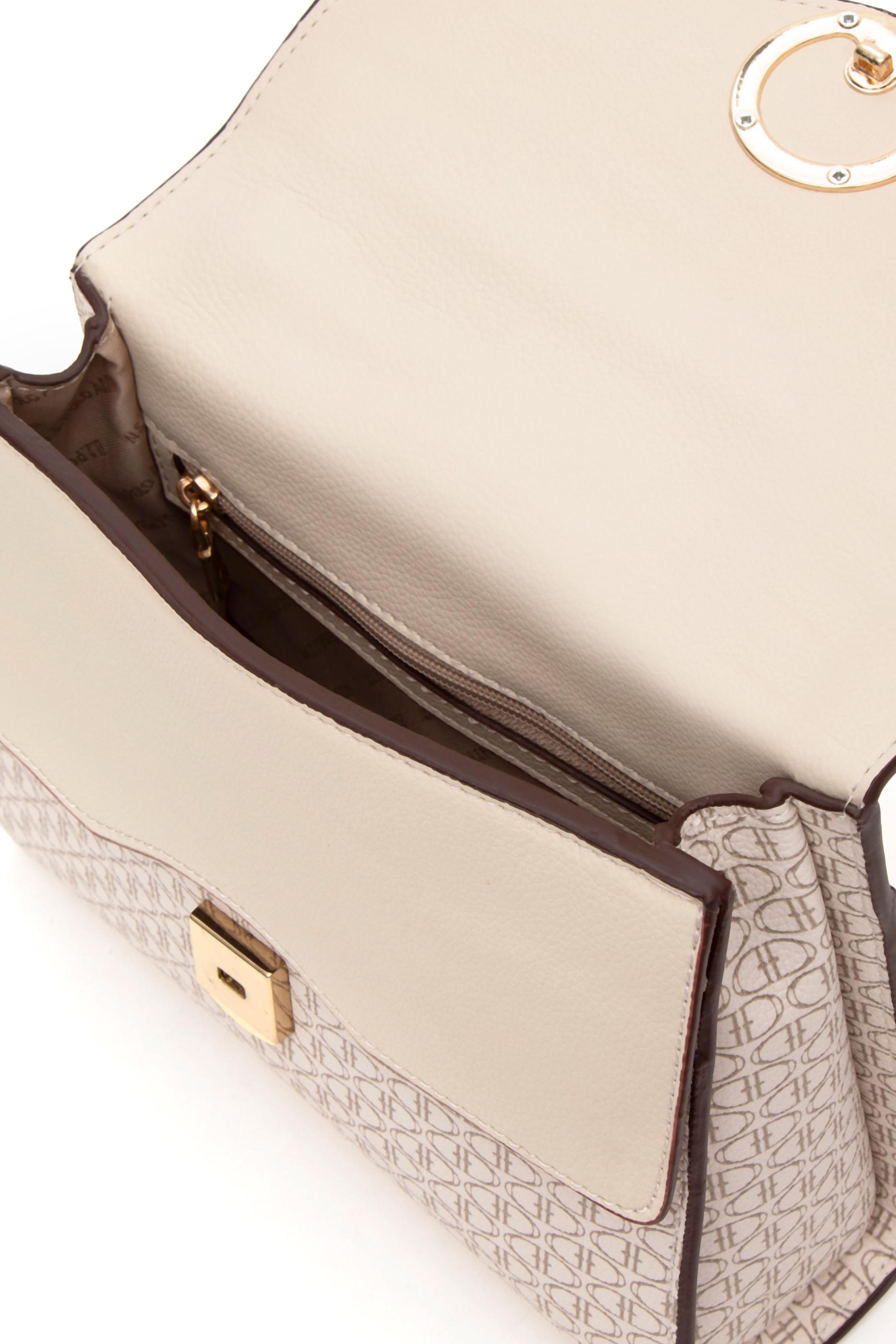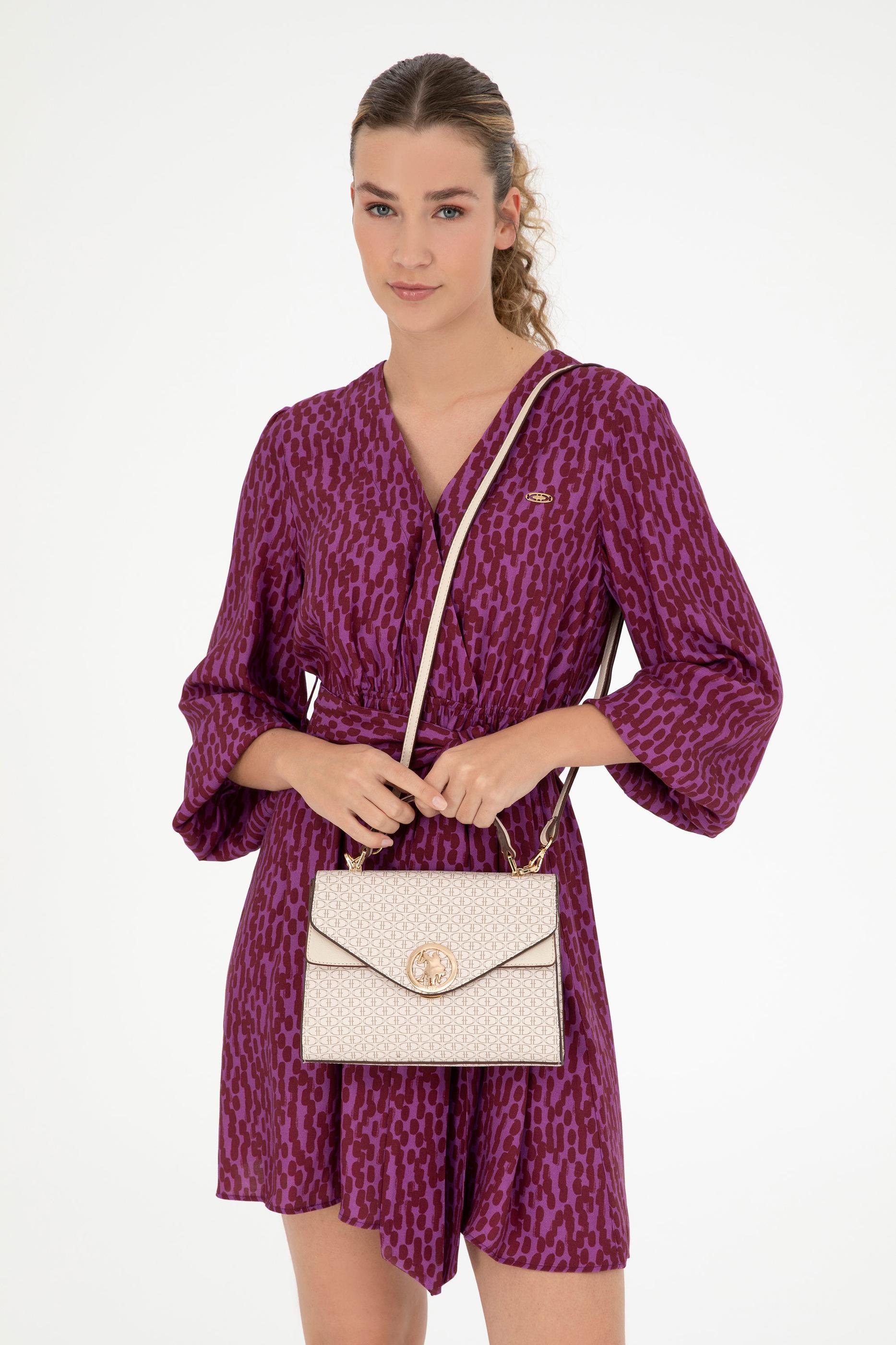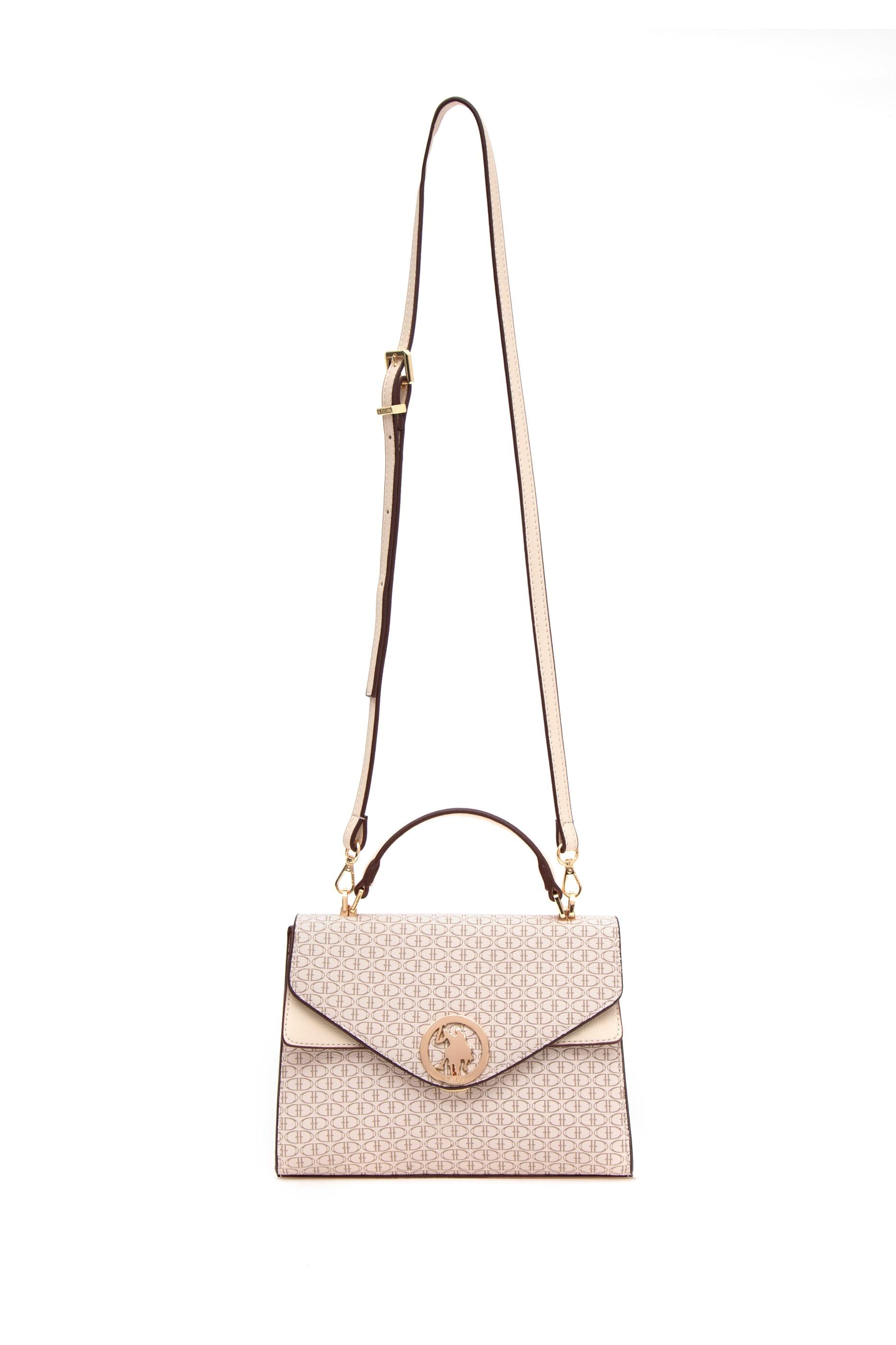 U.S. Polo Assn. bej kol çantası, belirgin hatlara ve flap kapak detayına sahip zarif bir modeldir. Yüzeyinde markaya özgü küçük geometrik desenler yer alırken, kapağın tam ortasında altın tonlu yuvarlak metal logo bulunur. V formundaki kapağı çantaya karakteristik bir siluet kazandırır. Kısa üst sapı elde taşımaya uygun olup, ayarlanabilir omuz askısı sayesinde farklı şekillerde kullanım imkânı sunar. Bej rengi tasarıma görsel derinlik katar. Yapısı sabit formda olup, hem klasik hem modern stillerle rahatlıkla uyum sağlar.