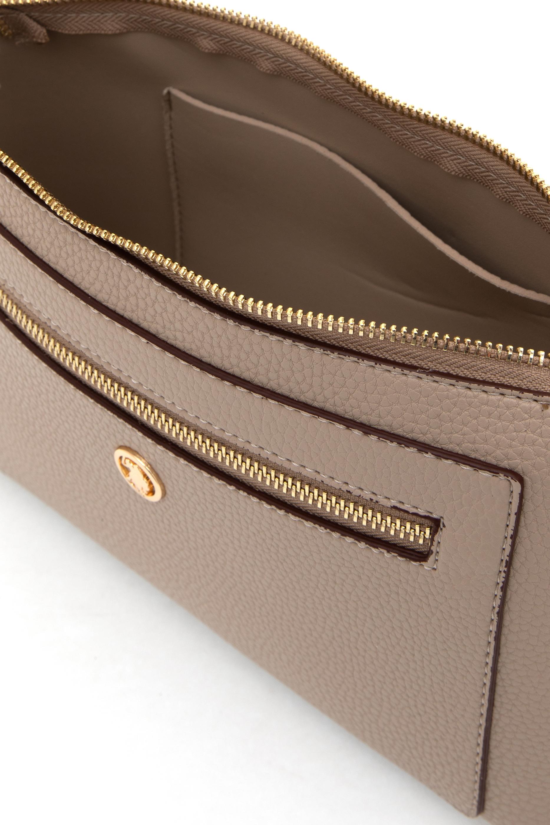 bej çapraz çanta, dış yüzeyindeki hafif granüllü dokusu ve tok duruşuyla şıklığı fonksiyonellikle birleştiriyor. Ön bölümde yer alan altın metal fermuar detaylı cep, hem görsel zenginlik hem de ekstra saklama alanı sunuyor. Geniş iç hacmi, günlük eşyalar için ideal kullanım imkânı sağlarken, yumuşak hatlı kenar kıvrımları taşıma konforunu artırır. Ayarlanabilir askısı sayesinde ister omuzda ister çapraz kullanılabilir. Nötr rengi ve sade tasarımıyla kapsül dolapların tamamlayıcı anahtar parçalarından biri olmaya aday.