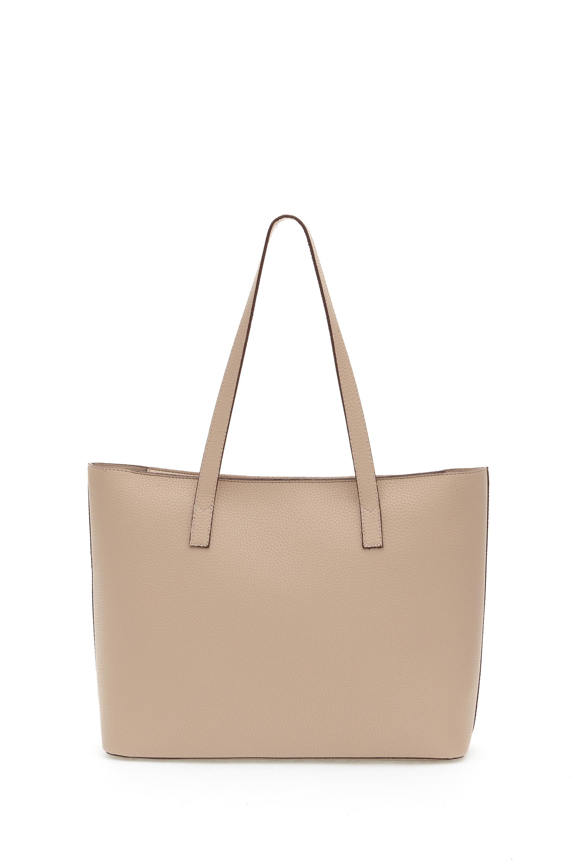 Geniş ve dik yapısıyla gün boyu ihtiyaçlarınızı rahatça taşıyabileceğiniz bu bej kol çantası, dış yüzeyiyle sağlam ve kaliteli bir duruş sunar. Düz formu, ayakta durabilen tabanı ve uzun sapları sayesinde hem omuzda hem elde konforlu taşınabilir. İç kısmında yer alan çıkarılabilir makyaj çantası, küçük eşyaları düzenli saklamak için fonksiyonel bir detay olarak öne çıkar. Altın renkli yuvarlak logo detayı ise tasarıma zarif bir dokunuş katar. Geniş hacmi ve zamansız rengiyle hem günlük kullanım hem iş stili için kapsül dolapların güçlü tamamlayıcısıdır.