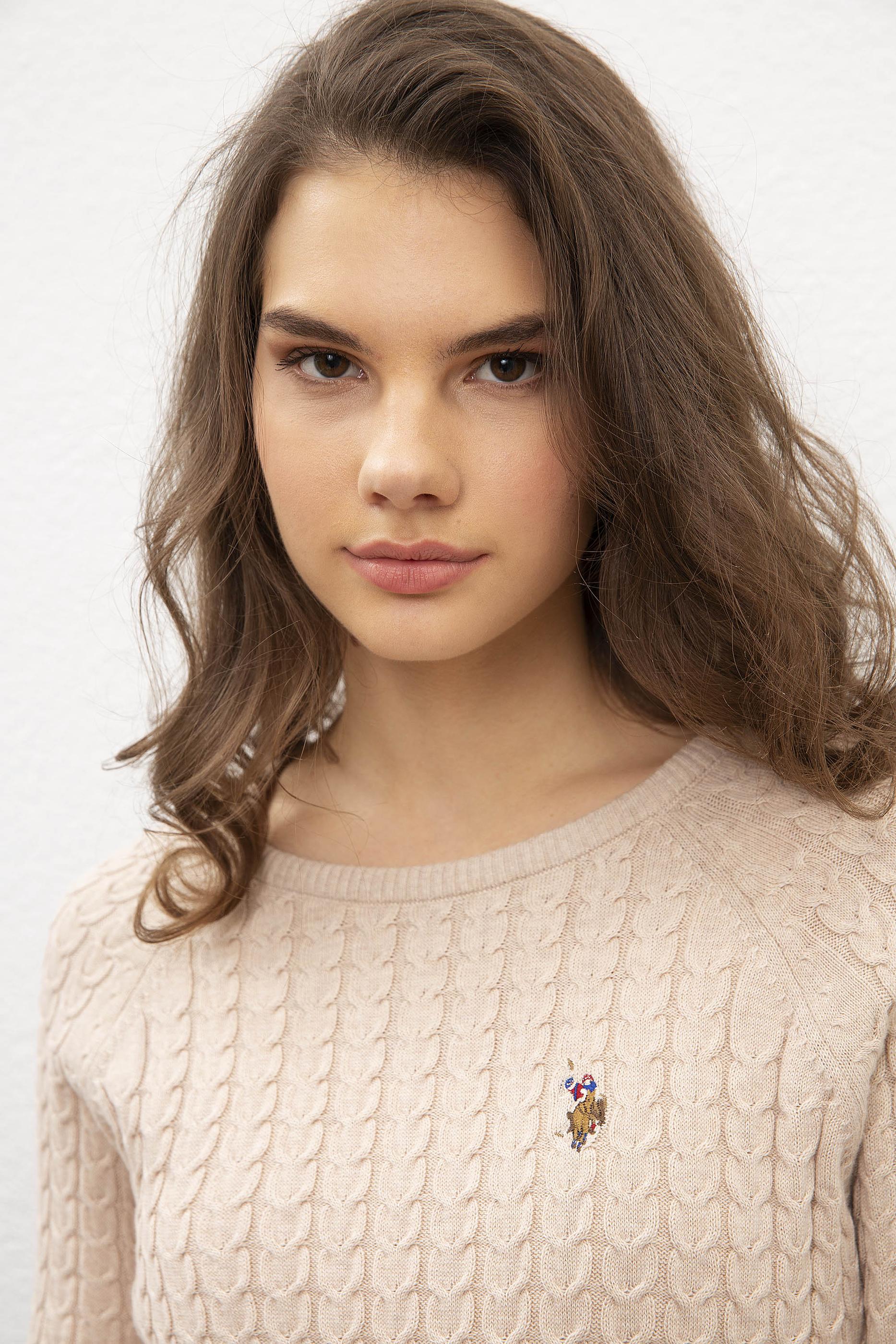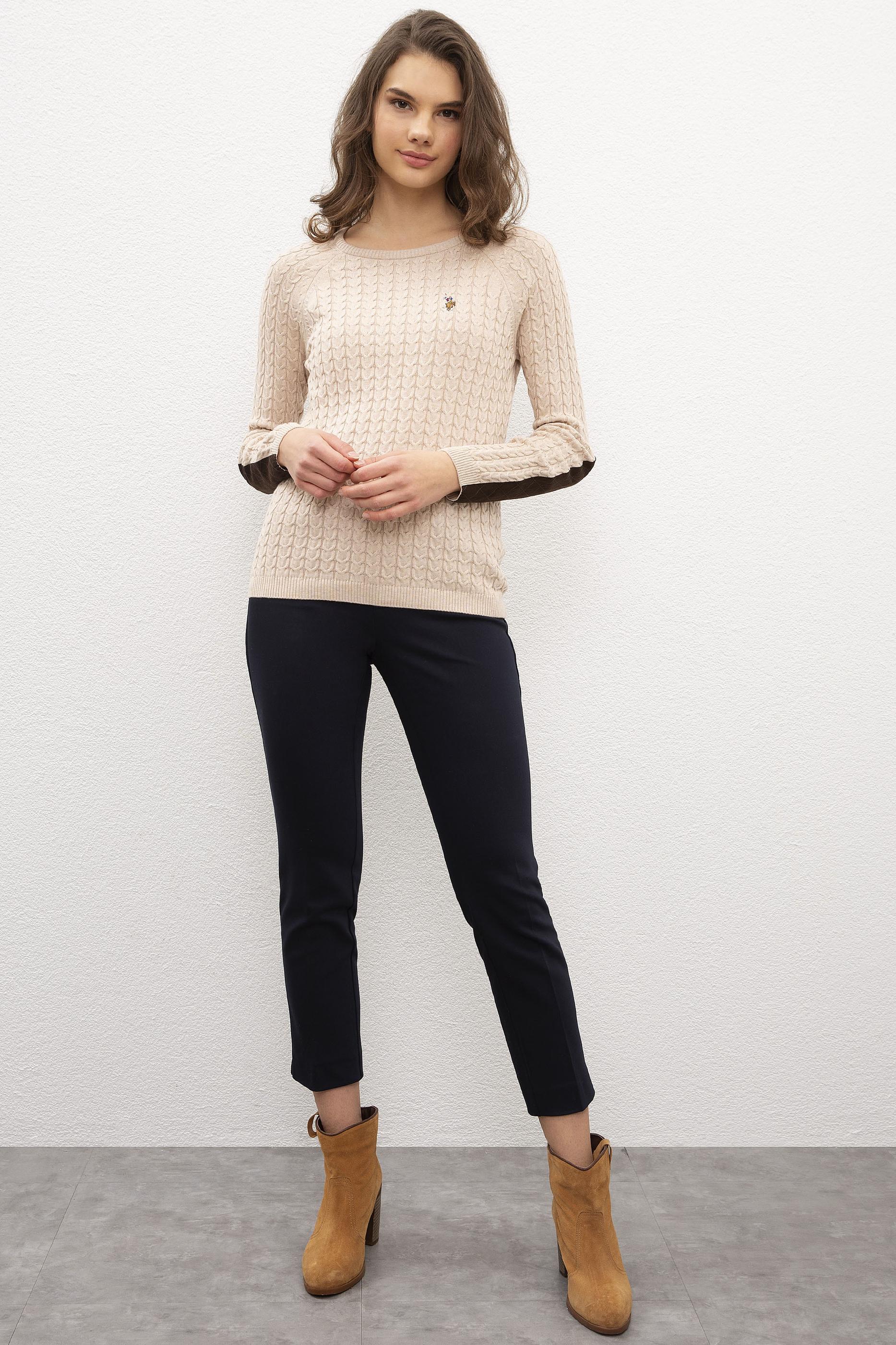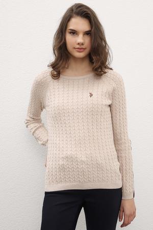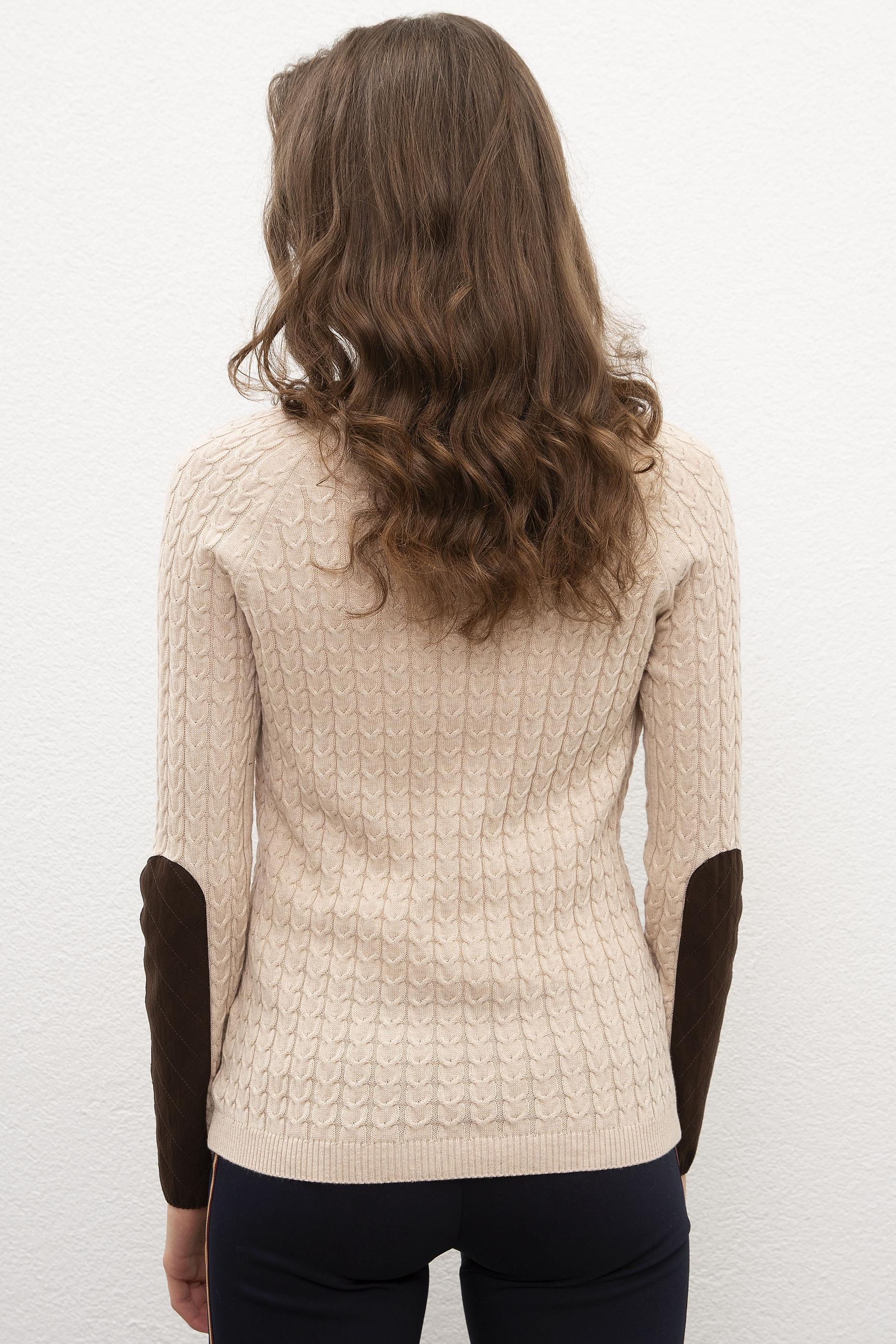 Formda görünüm sunan slim fit kadın triko kazak modelimiz saç örgüsü detaylarla benzersiz bir tasarım niteliği kazanıyor.