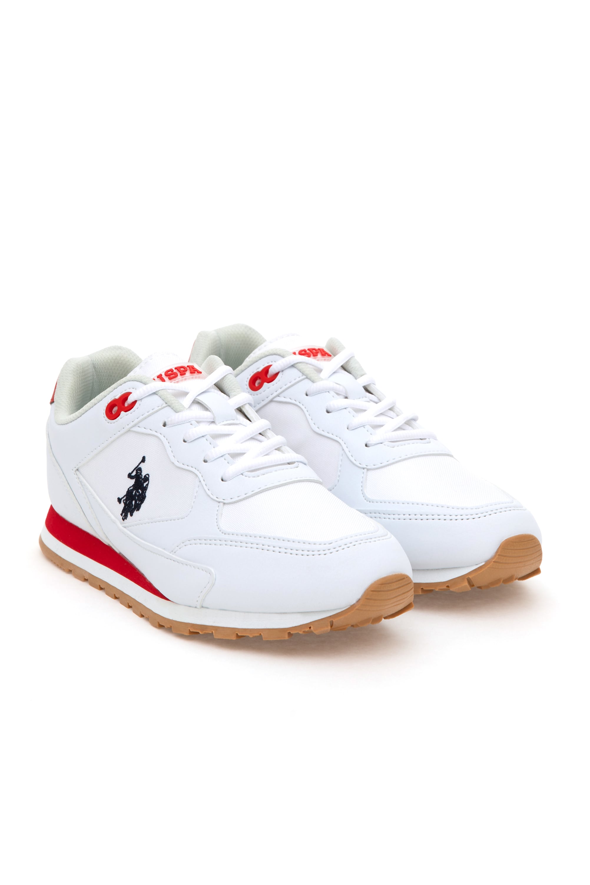 Spor şıklığı zamansız bir tasarımla buluşturan U.S. Polo Assn. beyaz kadın sneaker, dinamik formu ve rahat yapısıyla günlük stilin vazgeçilmez parçası olmaya aday. Hafif ve esnek tabanı sayesinde gün boyu konfor sunarken, kırmızı detaylar ve yan kısımdaki ikonik atlı logo modern bir görünüm kazandırıyor. Bağcıklı yapısı ayağa tam otururken, dış yüzeydeki deri benzeri mat dokular ayakkabıya sade ama sofistike bir hava katıyor. Jean, eşofman ya da elbiselerle kolayca kombinlenebilen bu model, sportif tarzınızı tamamlamak için ideal.
