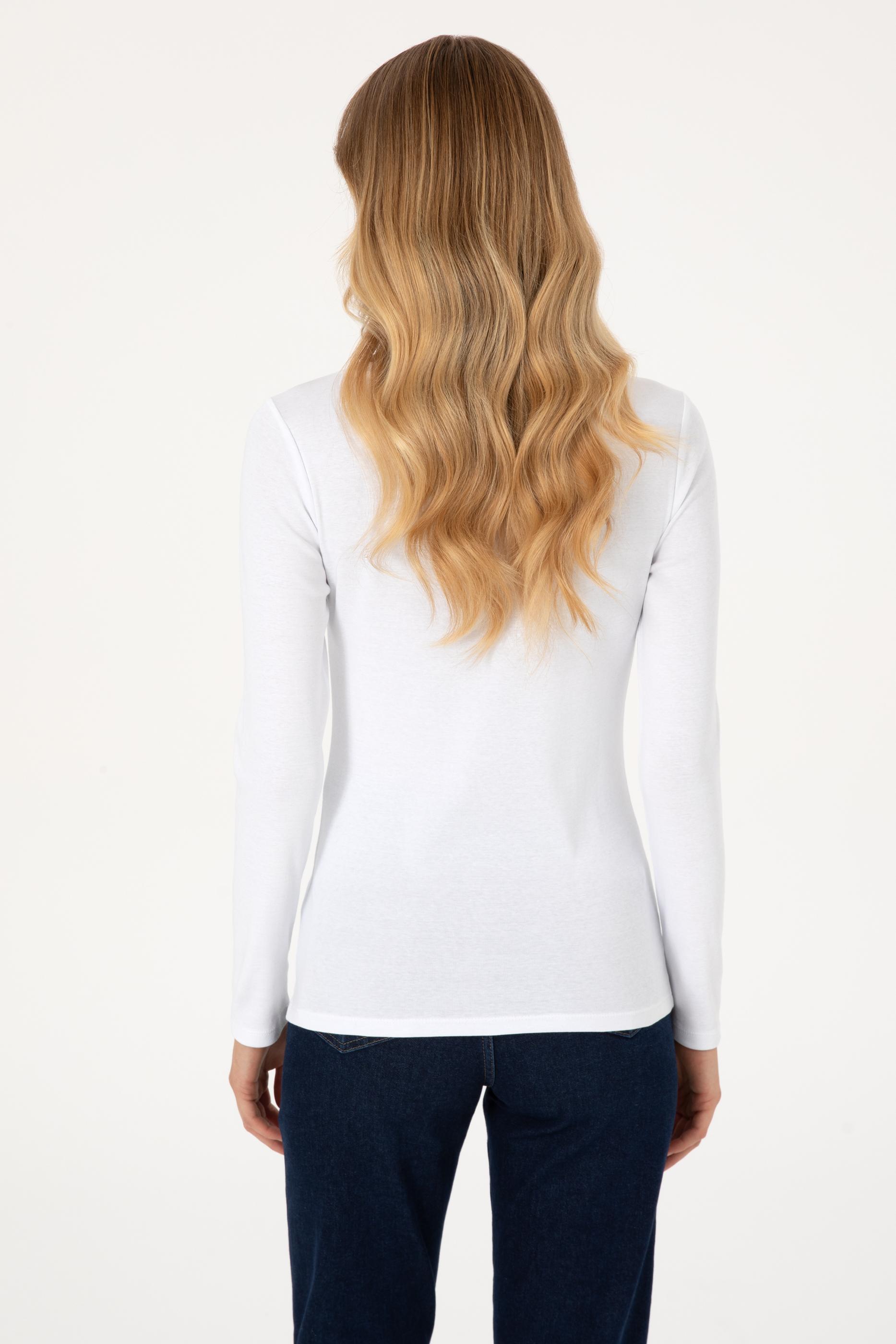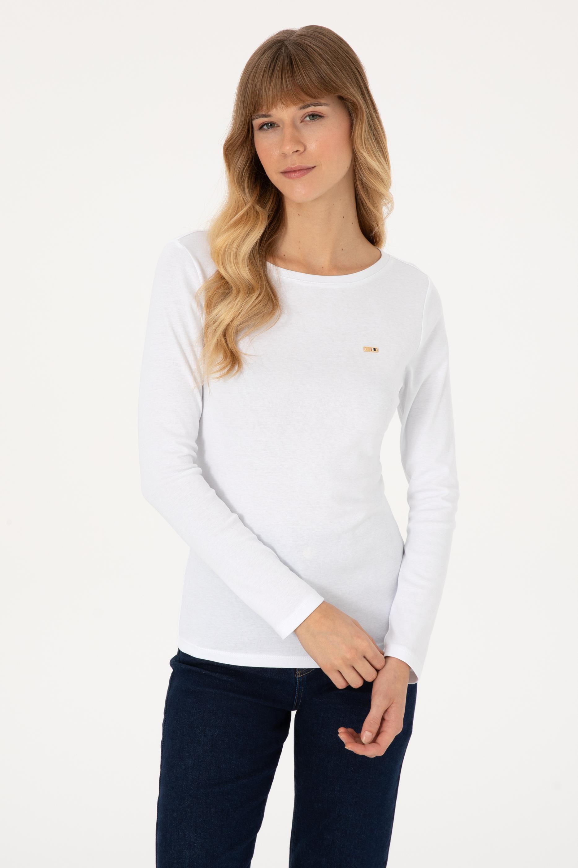 Kadın Beyaz Slim Bisiklet Yaka Basic Sweatshırt