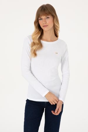 - Kadın Beyaz Slim Bisiklet Yaka Basic Sweatshırt