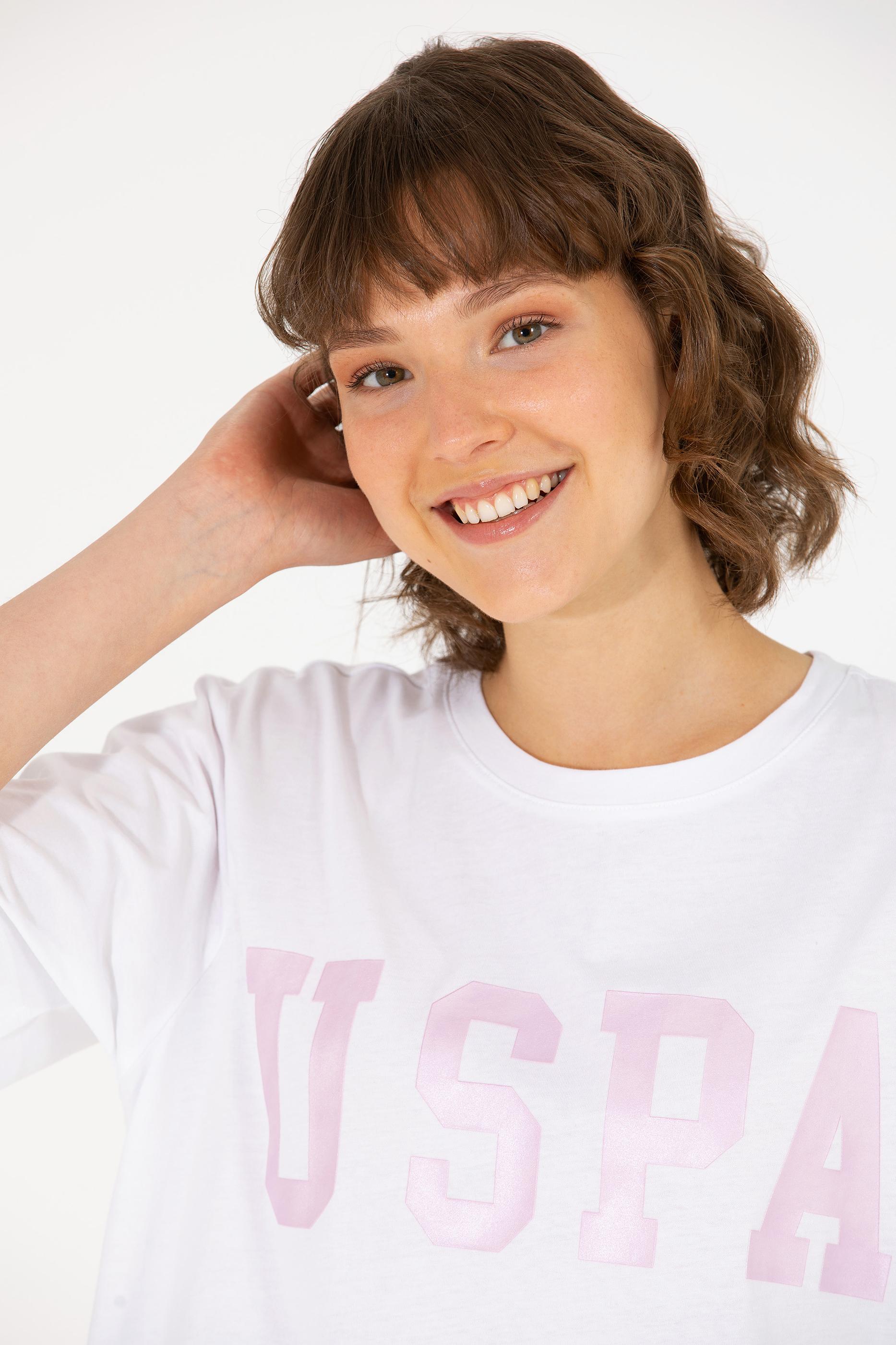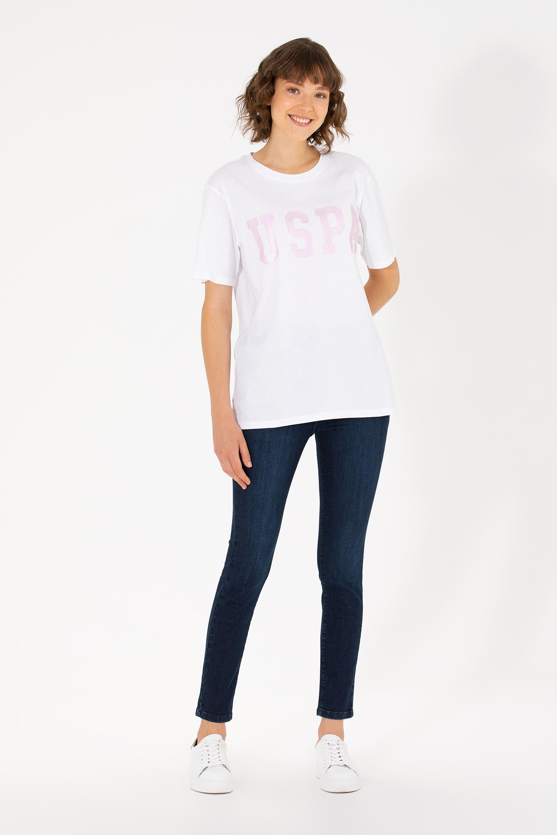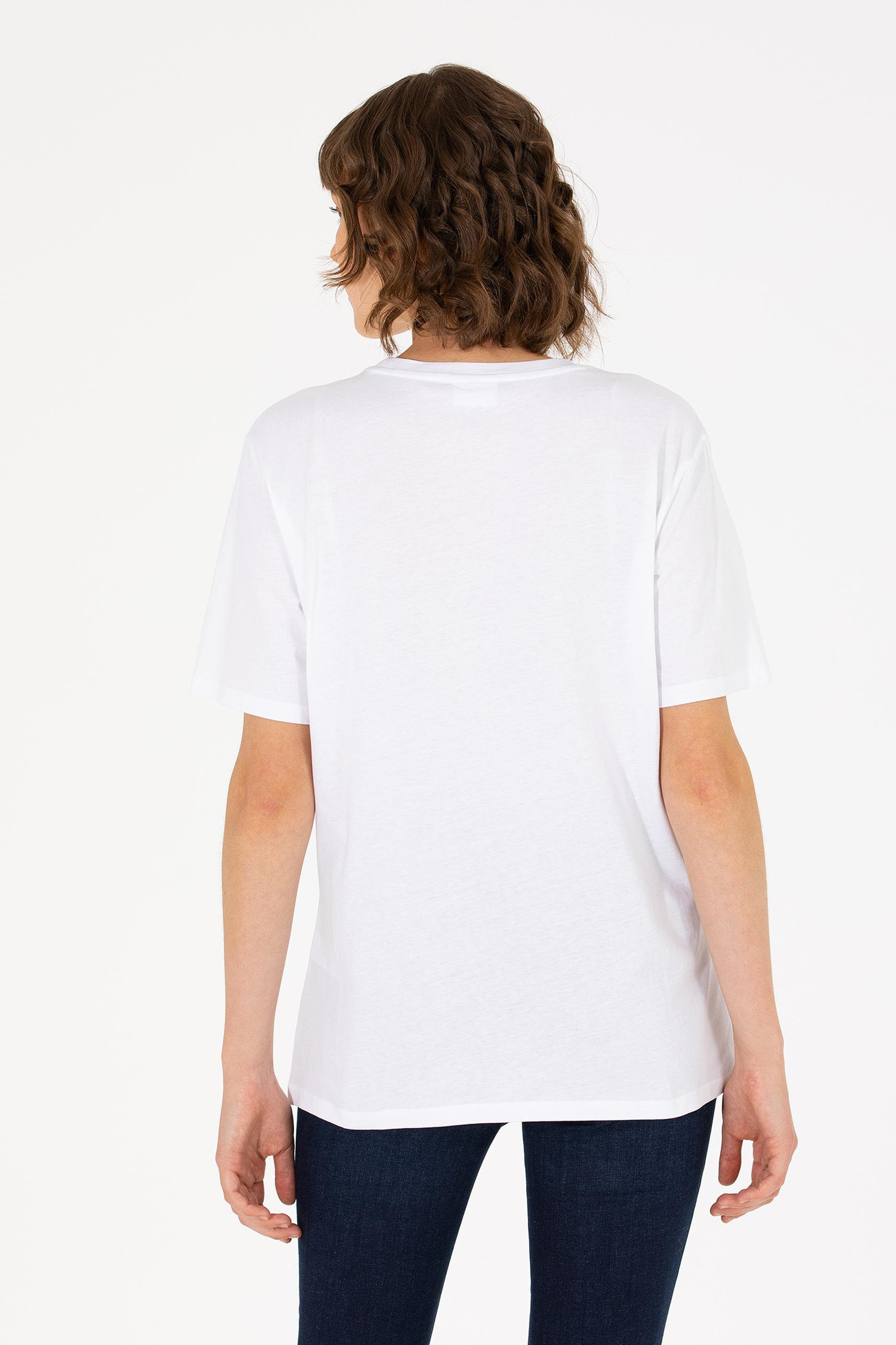Kadın Beyaz Bisiklet Yaka Basic Tişört