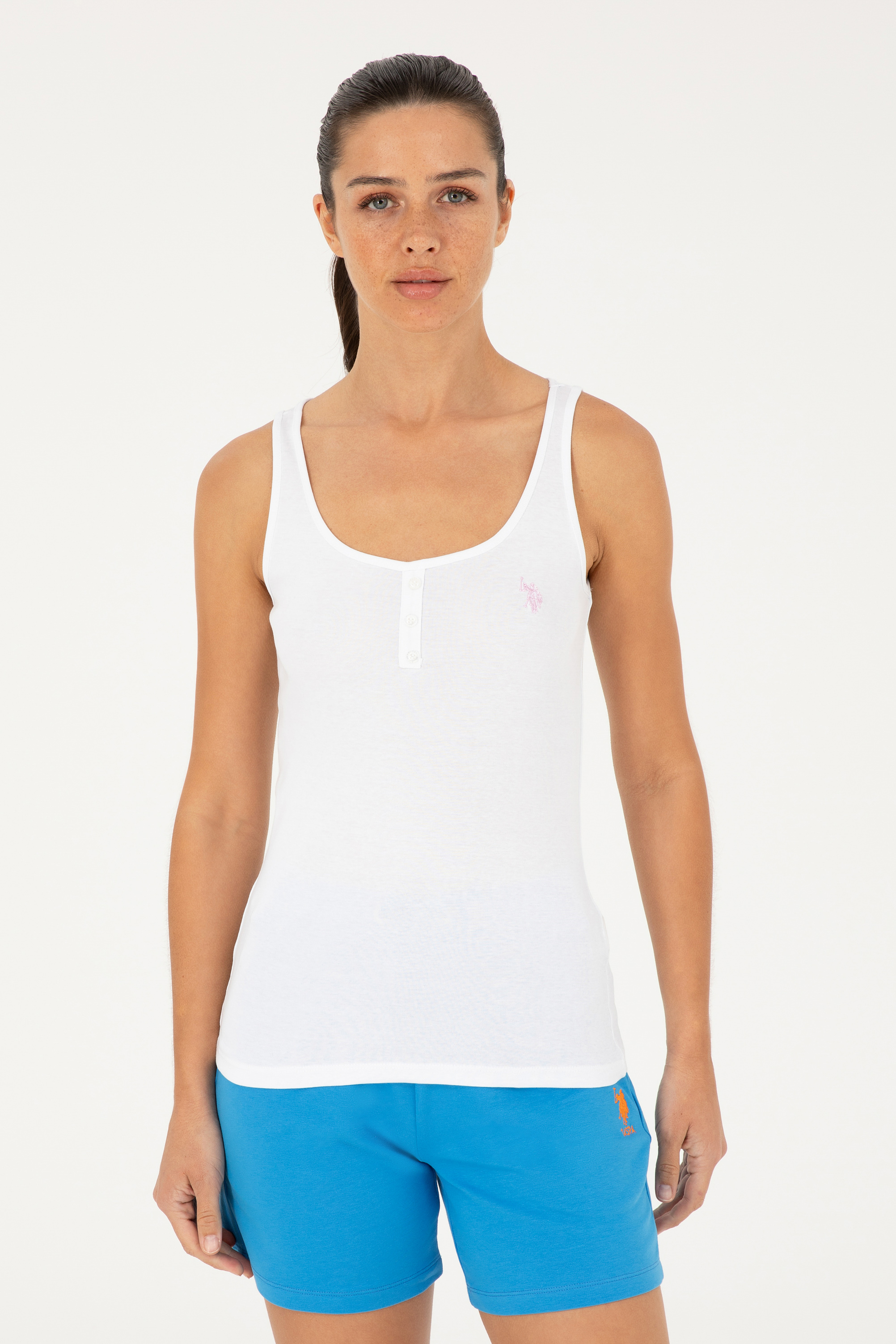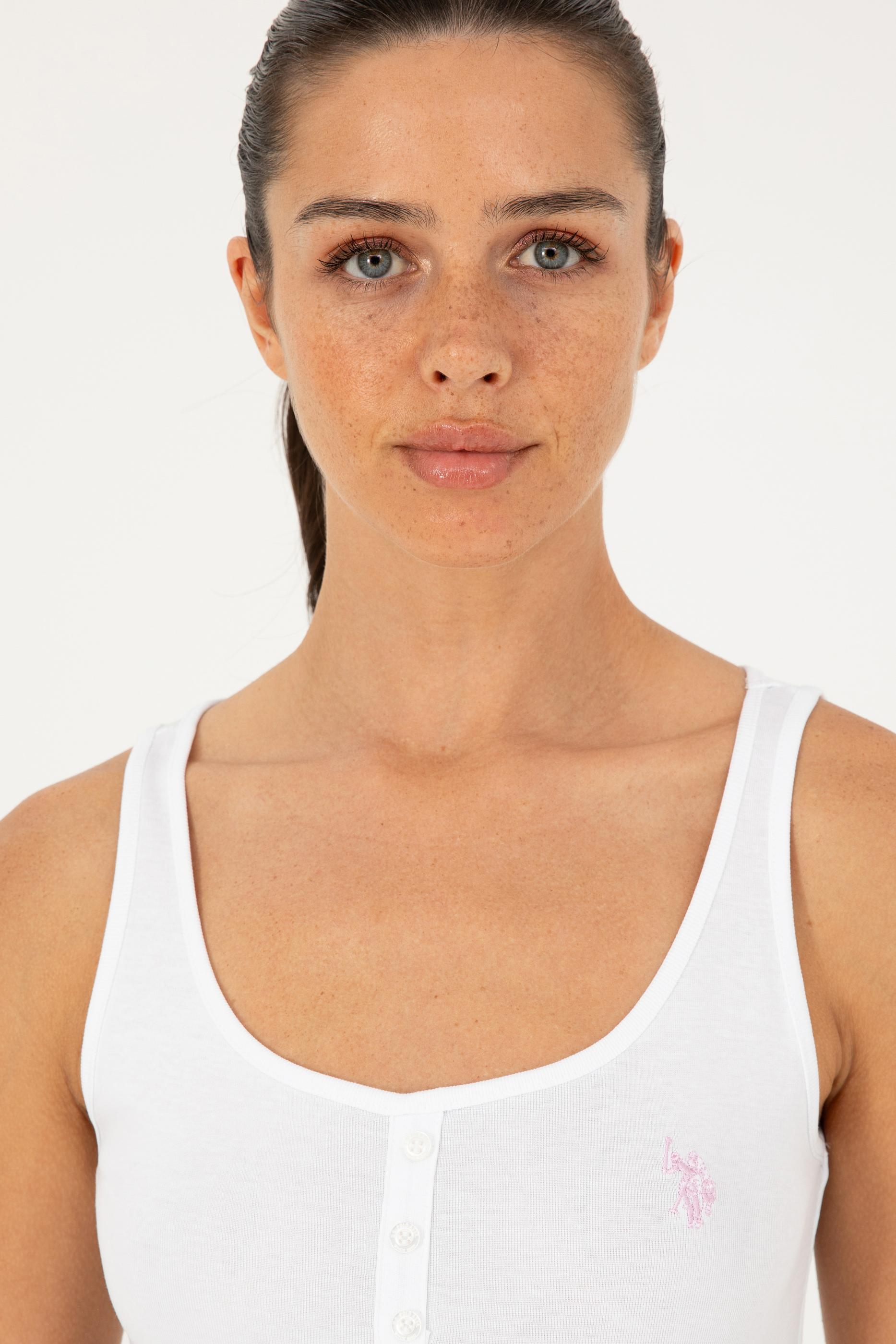 - Kadın Beyaz Kolsuz Bisiklet Yaka Basic Tişört