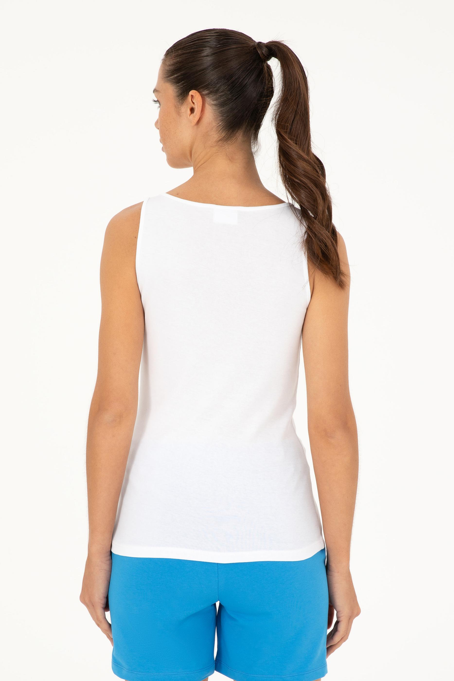 Kadın Beyaz Kolsuz Bisiklet Yaka Basic Tişört