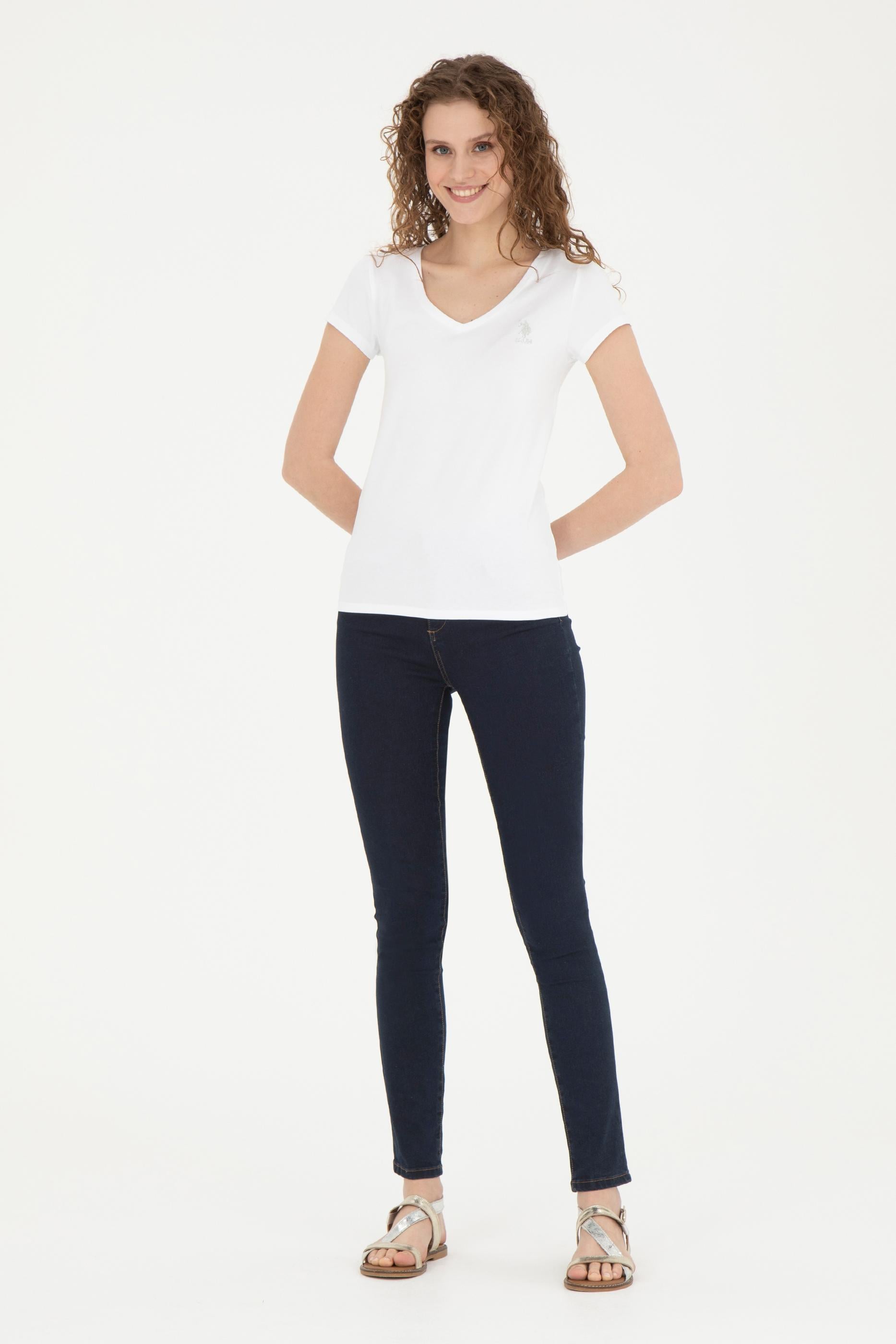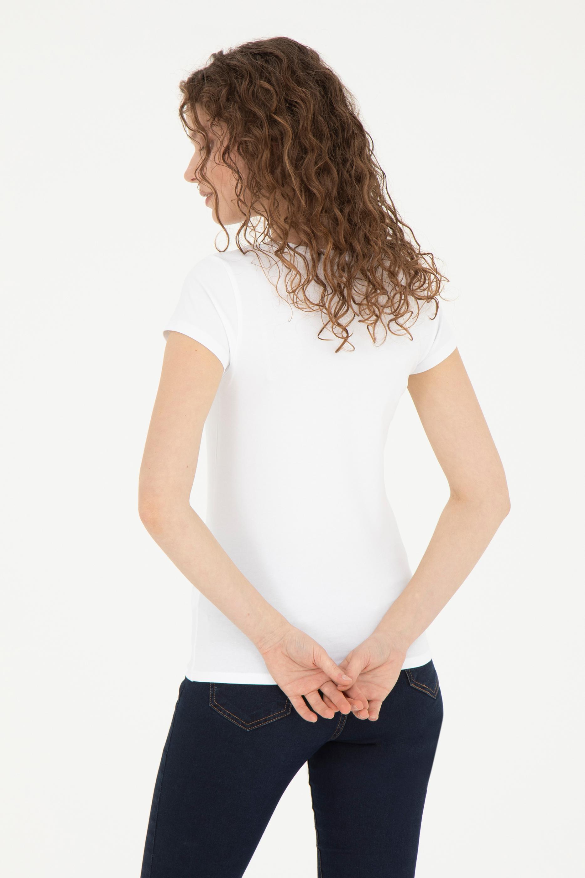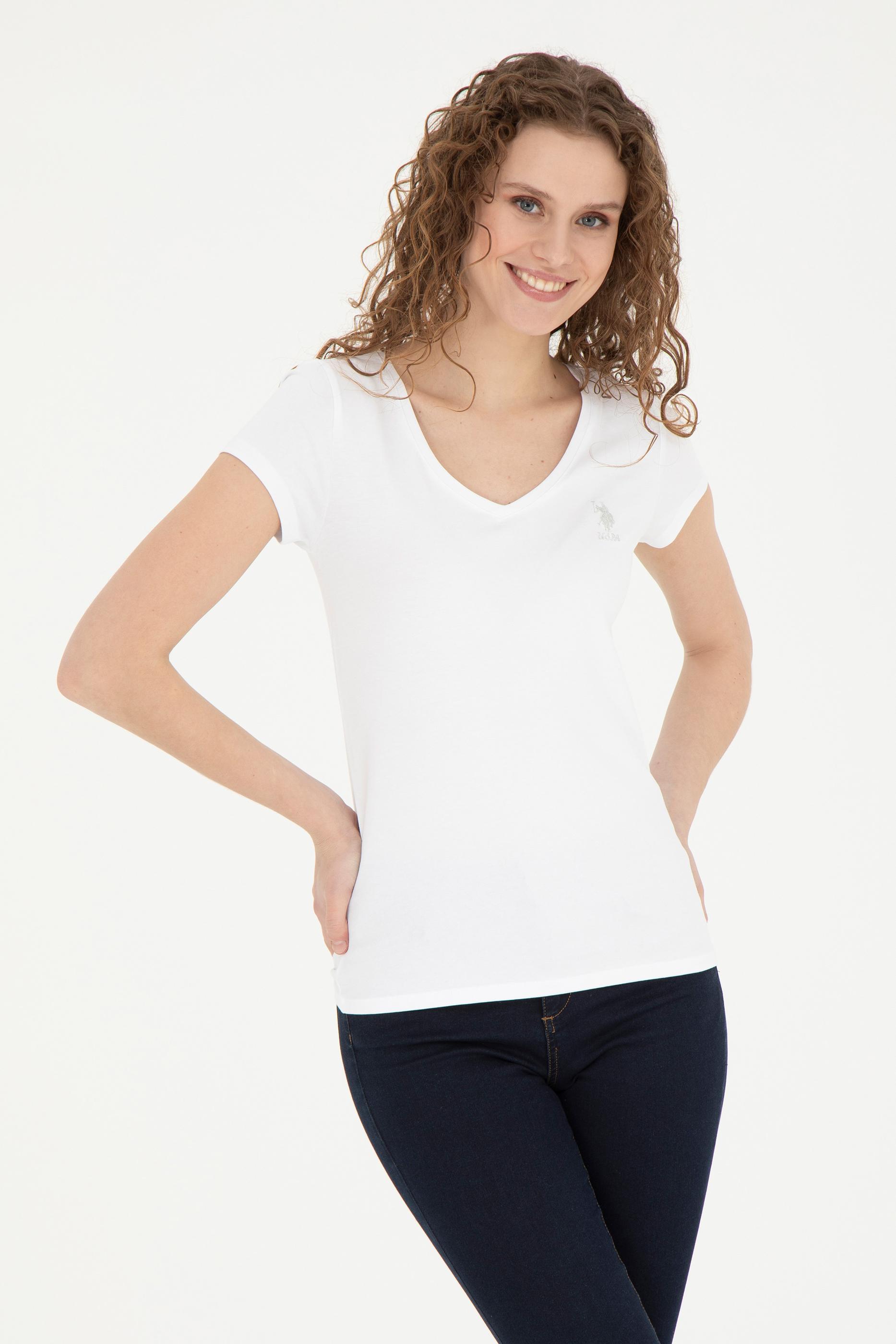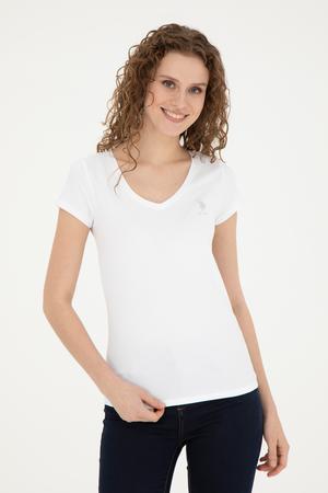 Kadın Beyaz V Yaka Basic Tişört