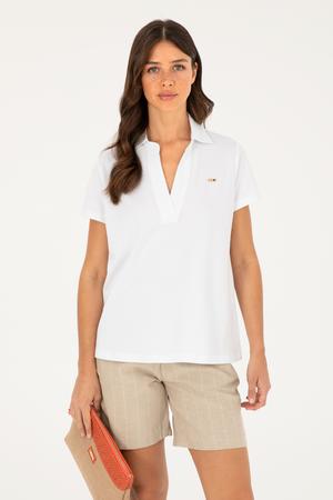%95 pamuk ve %5 elastan karışımı kumaşı sayesinde kaçık yaka beyaz tişört, cildinize nefes aldırır. Aynı zamanda elastan içeriği sayesinde esnek bir yapı sunar. Modern ve zarif bir tasarıma sahip olan tişört, her vücut tipine uyum sağlayan A-form fit kesimiyle dikkat çeker. Kaliteli yerli üretim olan tişört, U.S. Polo Assn. markasının güvencesiyle sunulmaktadır. Dayanıklı dikişleri ve özenle işlenmiş detayları uzun ömürlü kullanım garantisi verir.