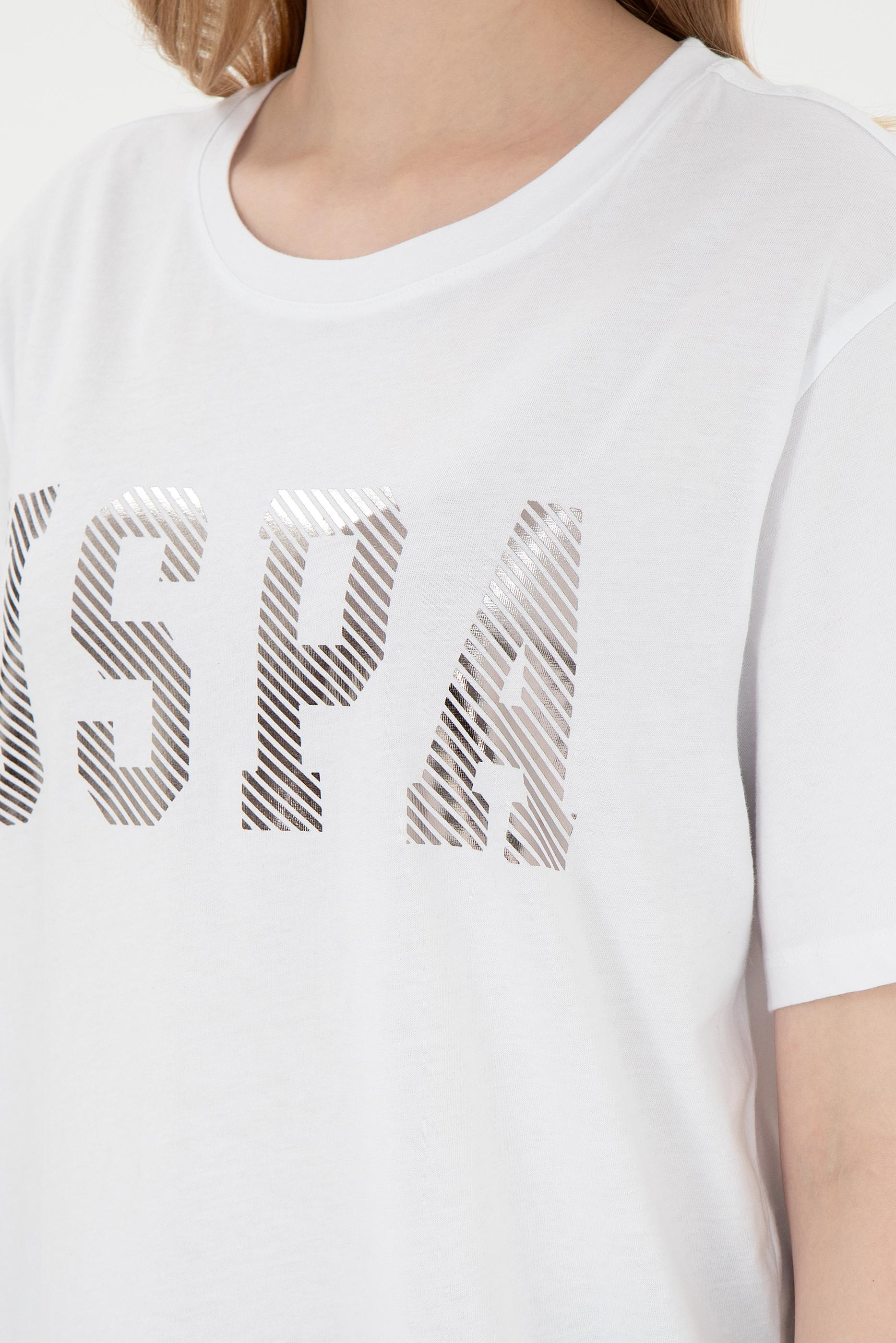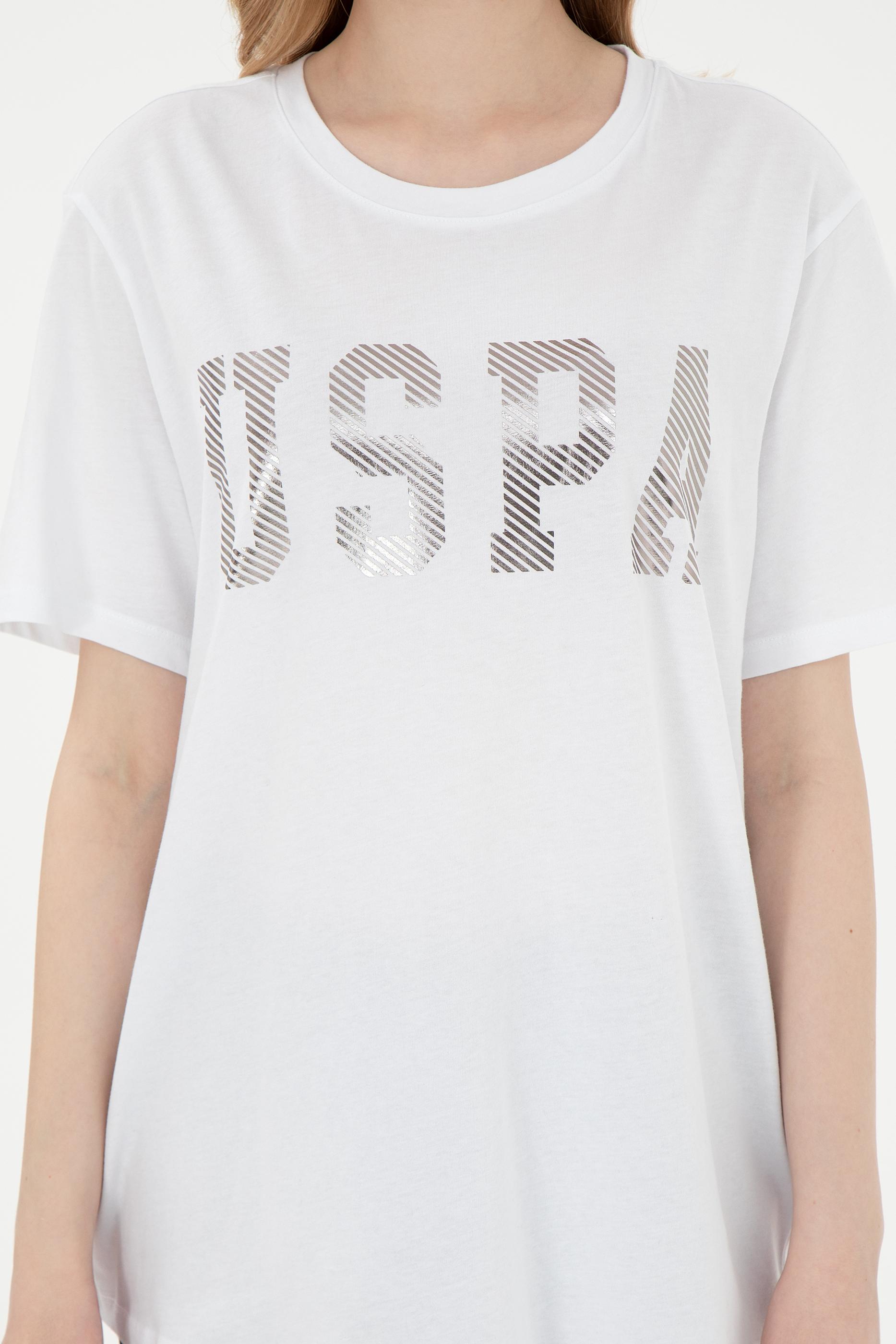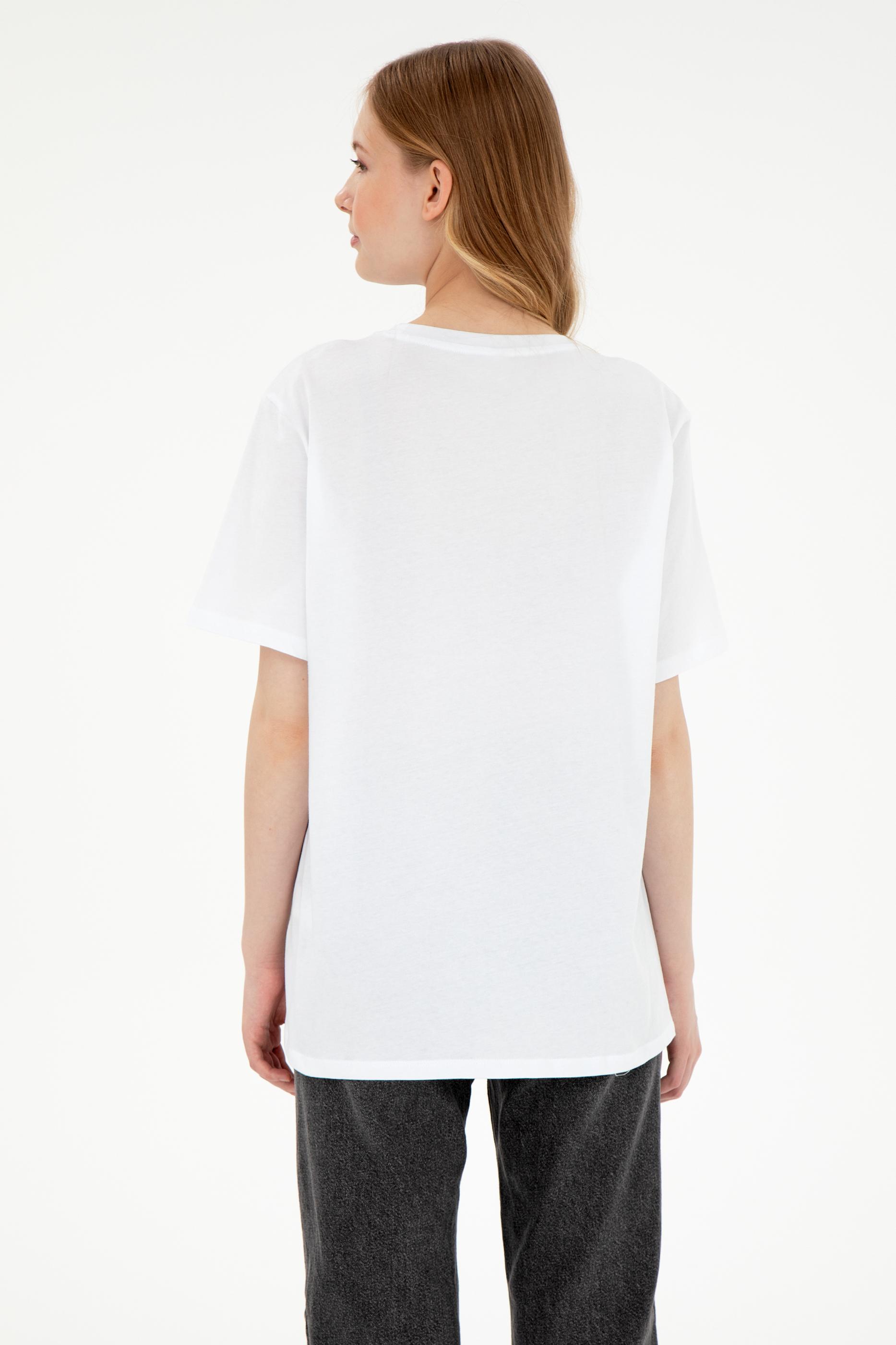 Kadın Beyaz Bisiklet Yaka Basic Tişört