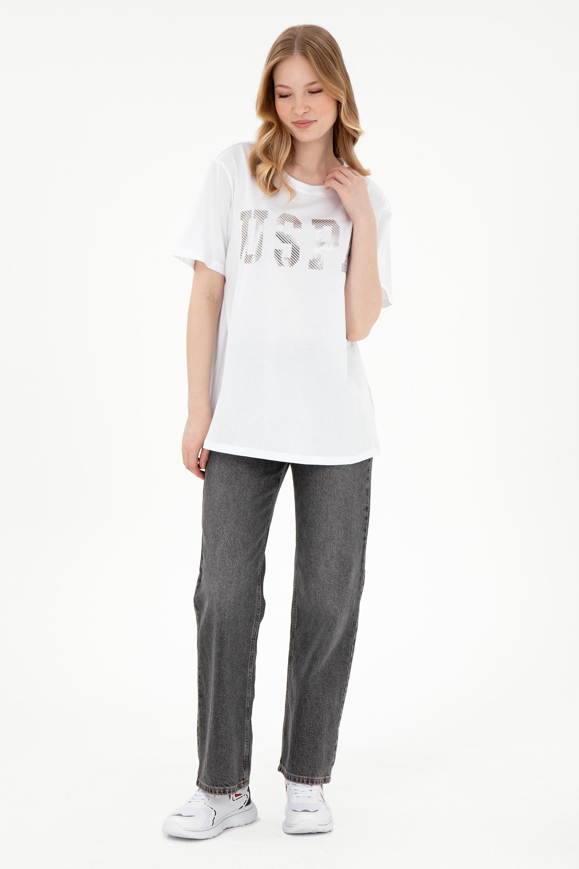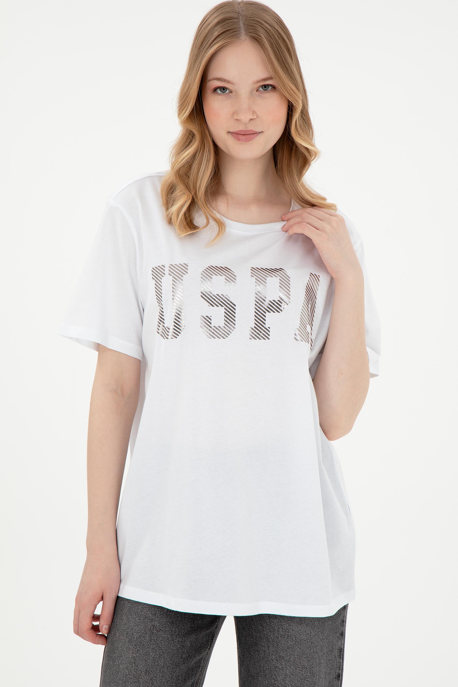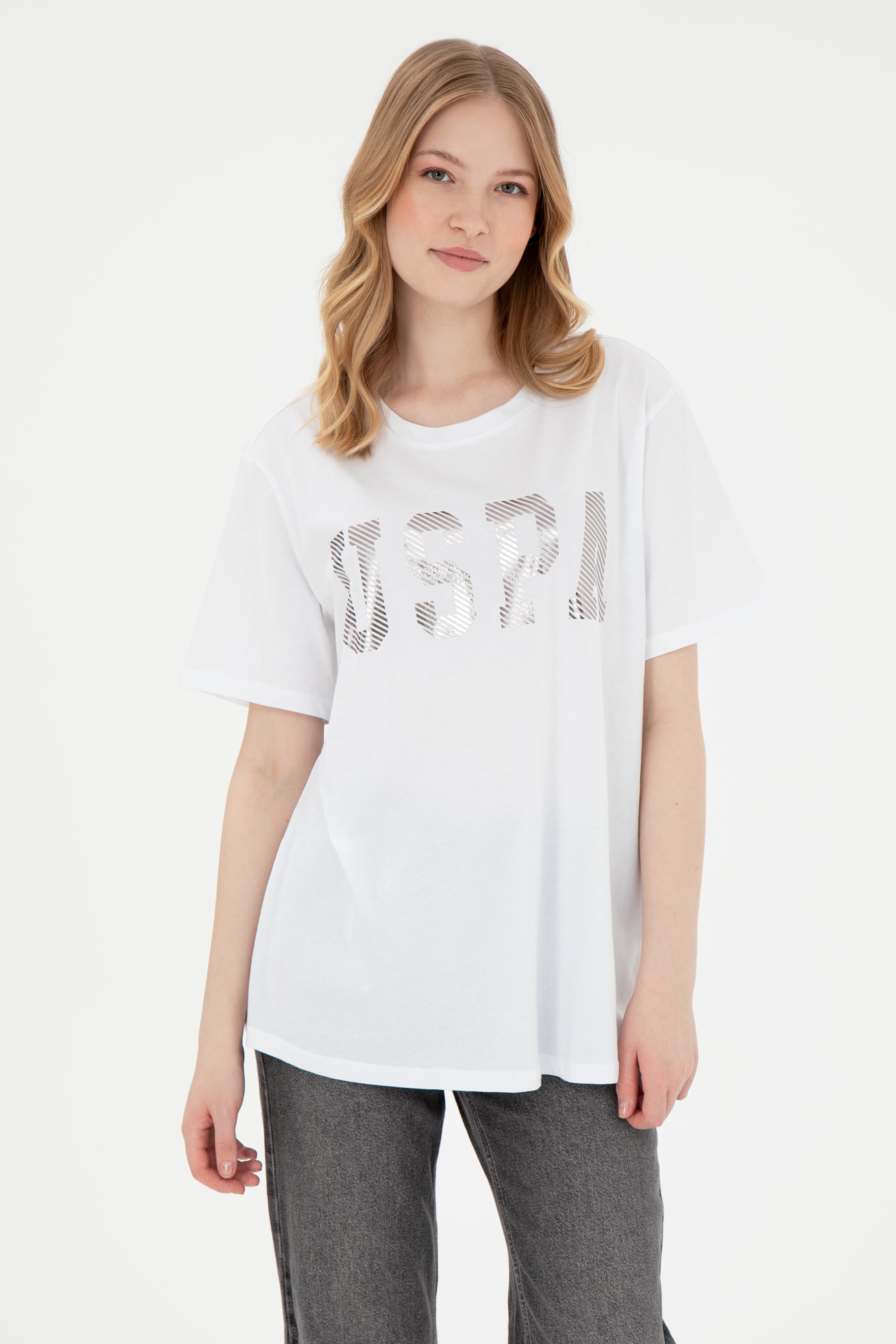 Kadın Beyaz Bisiklet Yaka Basic Tişört