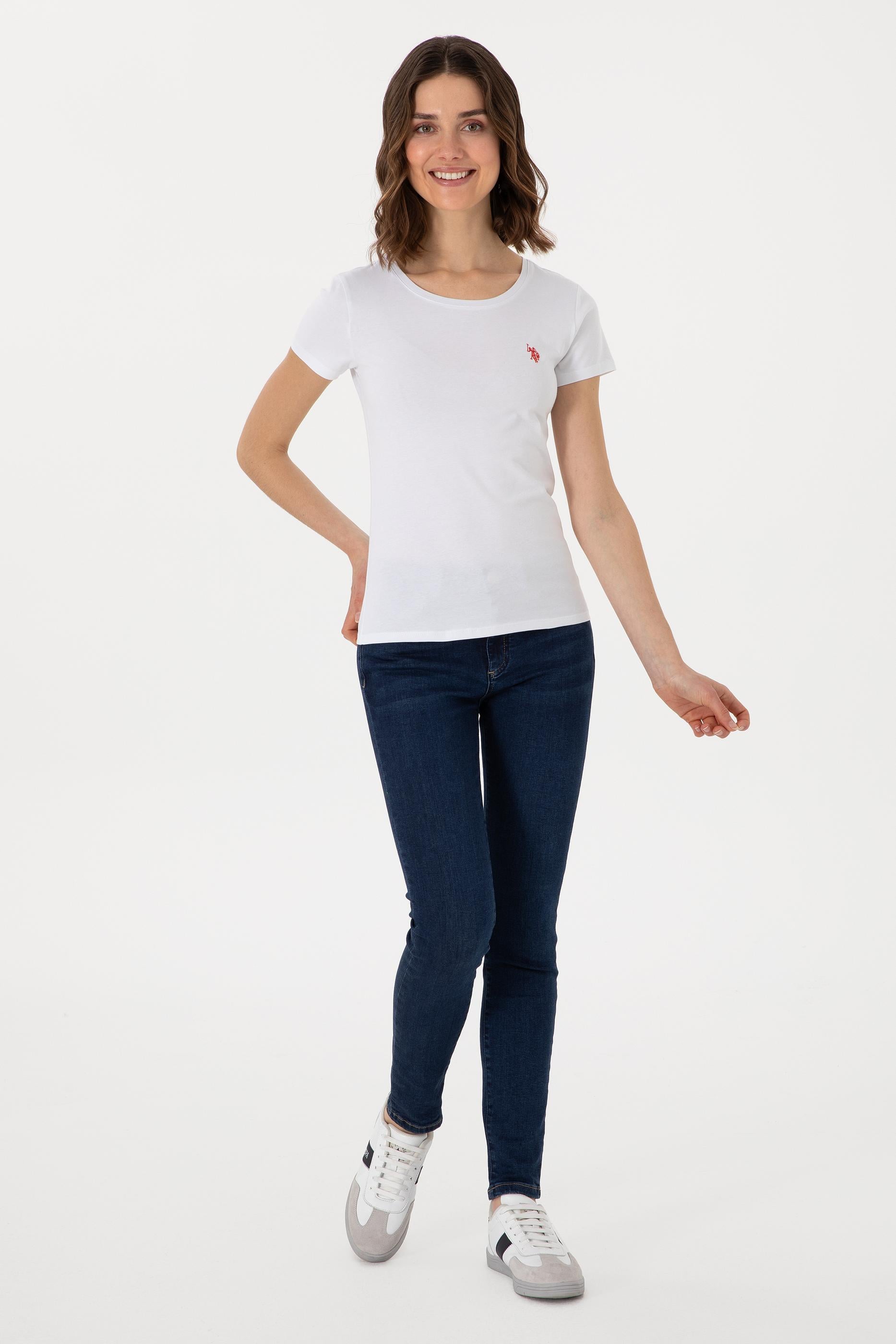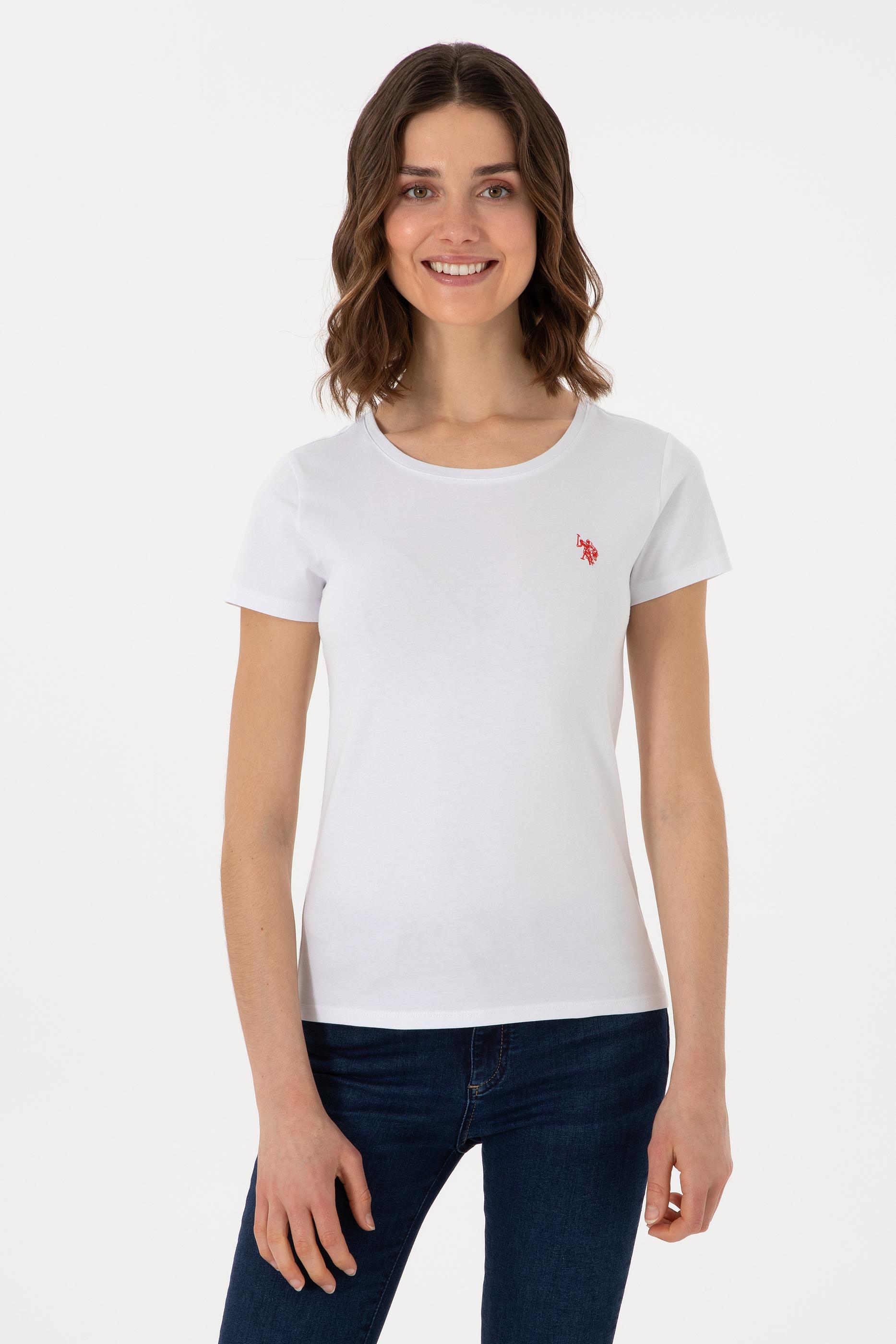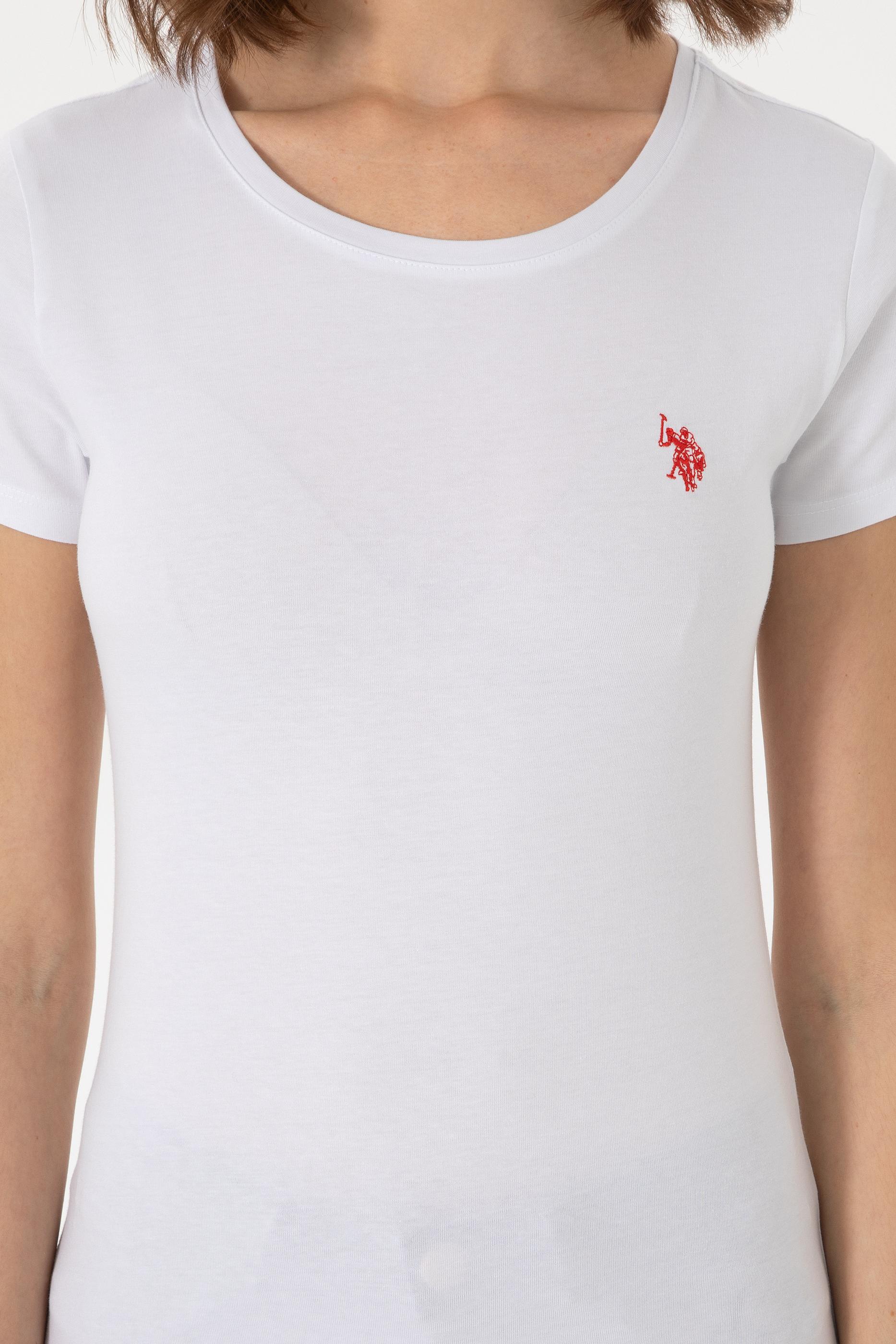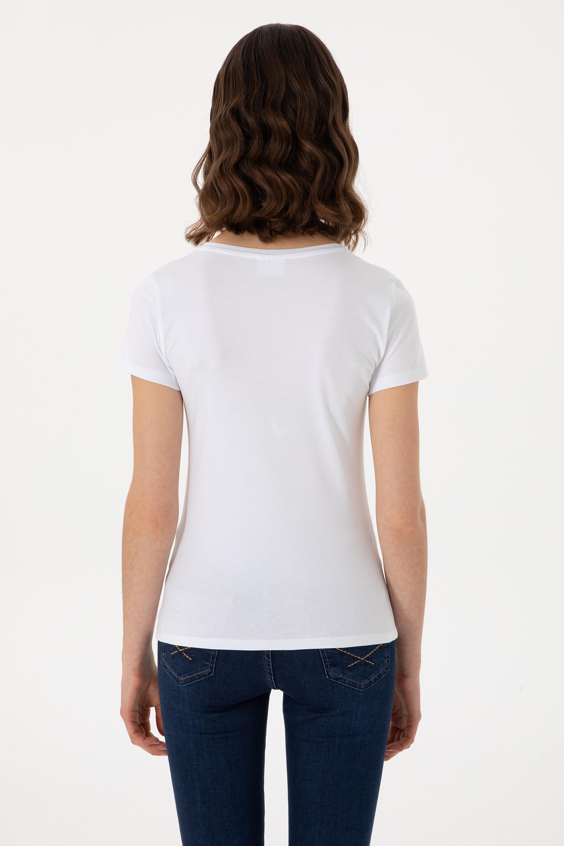 Kadın Beyaz Bisiklet Yaka Tişört - 50300894005