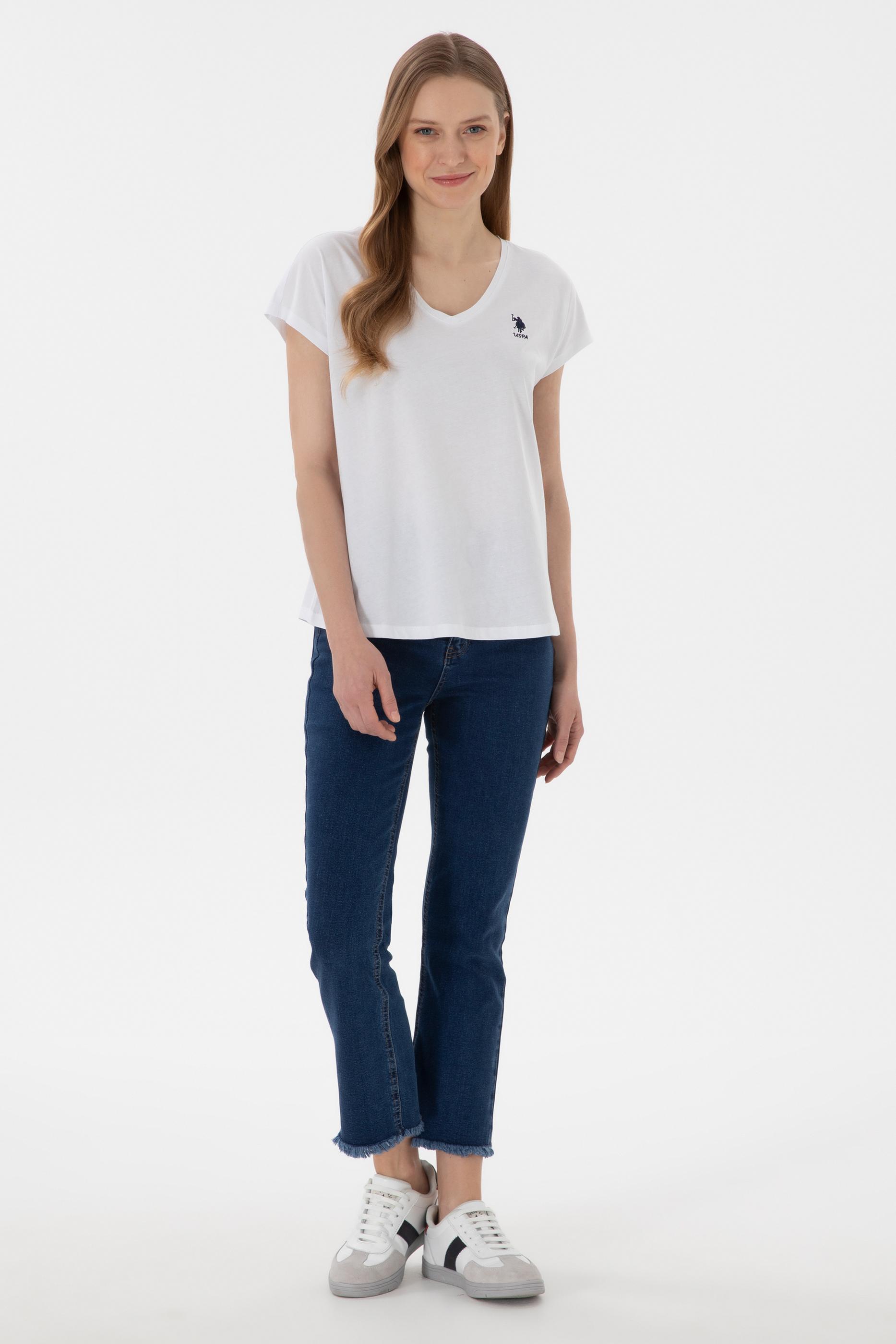 Beyaz V yaka t-shirt %100 pamuklu kumaşı sayesinde hafif ve nefes alabilen bir yapı sunar, böylece gün boyu konfor sağlar. Düz tasarımı ve sade formu, onu birçok farklı kombinle uyumlu hâle getirirken, regular kesimi sayesinde vücuda tam oturur. Yumuşak dokusu teni rahatsız etmez, doğal ve rahat bir his bırakır. Beyaz rengi, enerjik ve canlı bir görünüm sağlarken, üzerindeki küçük logo detayı modele göz alıcı bir dokunuş katar. V yaka kesimi, boyun bölgesini daha uzun ve zarif gösterir, aynı zamanda rahat bir kullanım sunar. Günlük hayatta şortlarla, kot pantolonlarla veya eteklerle kolayca kombinlenebilir, hem sportif hem de şık bir görünüm elde etmeye yardımcı olur. Yaz aylarında tek başına kullanılabileceği gibi serin havalarda hırka veya ceketlerle tamamlanarak çok yönlü bir kullanım imkânı sunar. Her gardıropta olması gereken klasik model, kullanışlılığı ile öne çıkar ve dikkat çekici bir stil yaratmak isteyenler için ideal bir seçenektir. Kaliteli kumaşı sayesinde uzun süre formunu korur, yıkama sonrası bile canlı rengini ve yumuşaklığını korur.