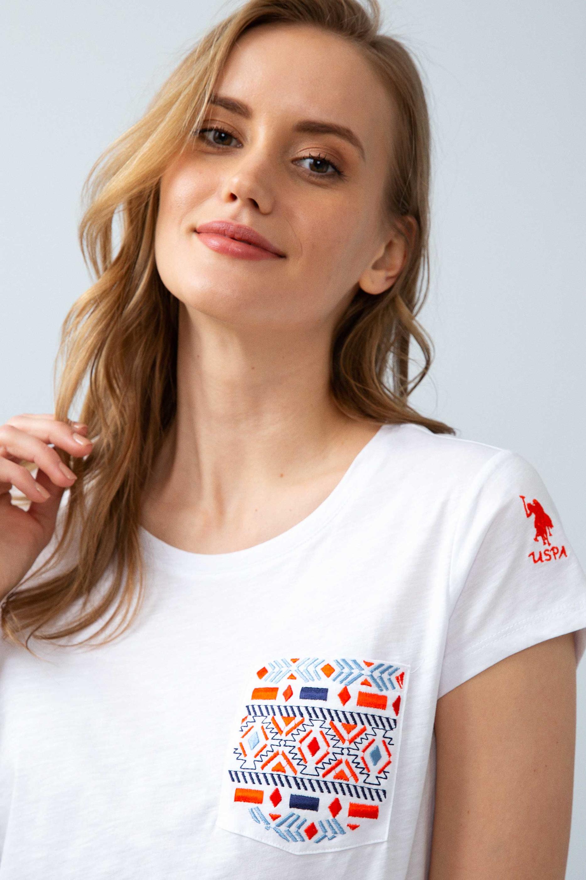 Kadın Beyaz Bisiklet Yaka T-Shirt