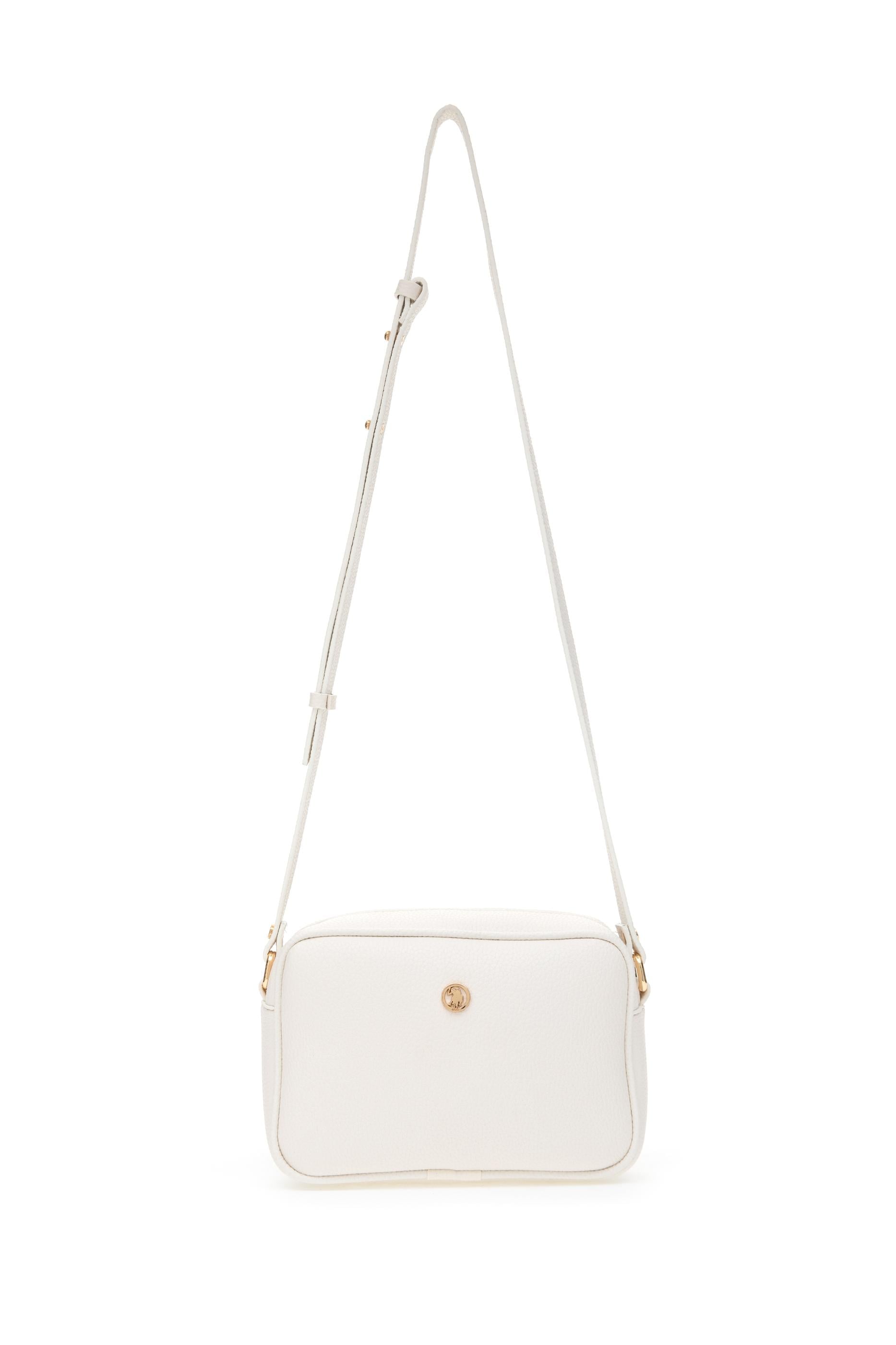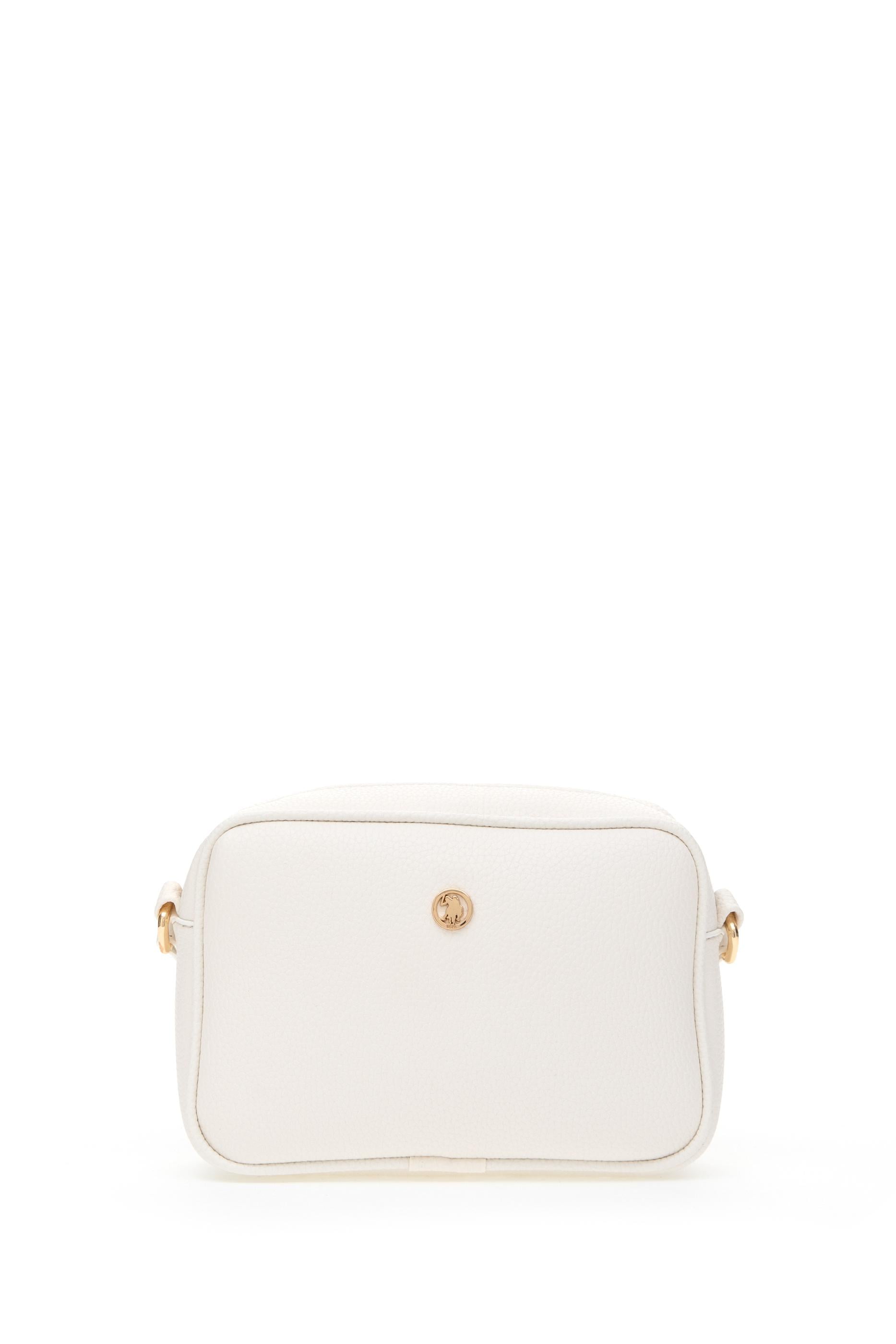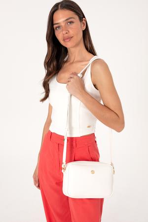 Yuvarlatılmış dikdörtgen formu ve hafif dokulu yüzeyiyle öne çıkan bu beyaz çapraz çanta, günlük kullanım için hem konforlu hem stil sahibi bir seçenek sunar. Ayarlanabilir ince askısı sayesinde omuzda ya da çapraz taşımaya uygun olan model, altın renkli yuvarlak logo detayıyla şıklığını tamamlar. Kompakt yapısına rağmen temel eşyaları rahatça taşıyabilecek iç hacmiyle, kapsül dolaplarda kendine yer bulacak zamansız bir parça.