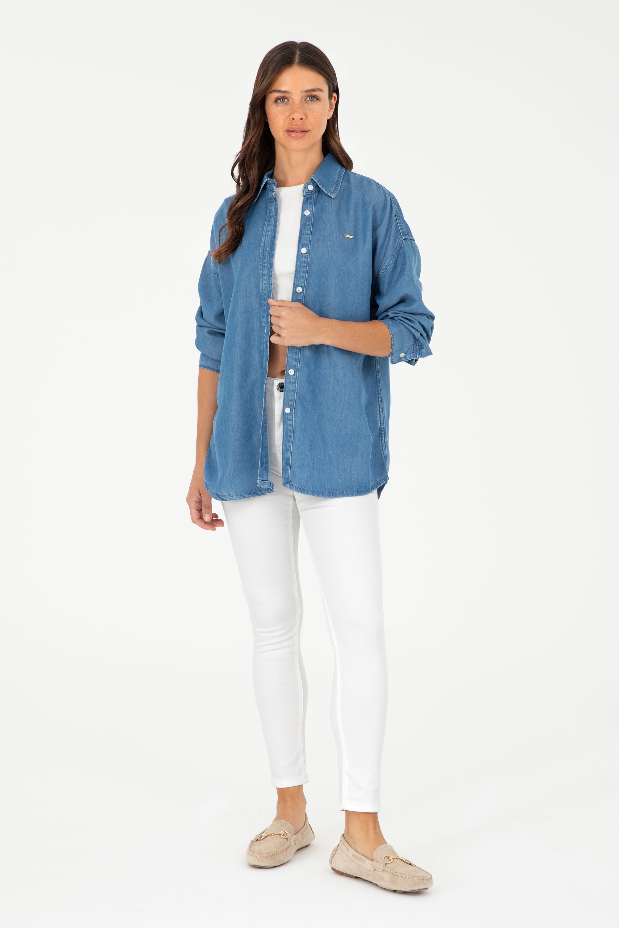Kadın Beyaz Toothpick Fit Kanvas Pantolon