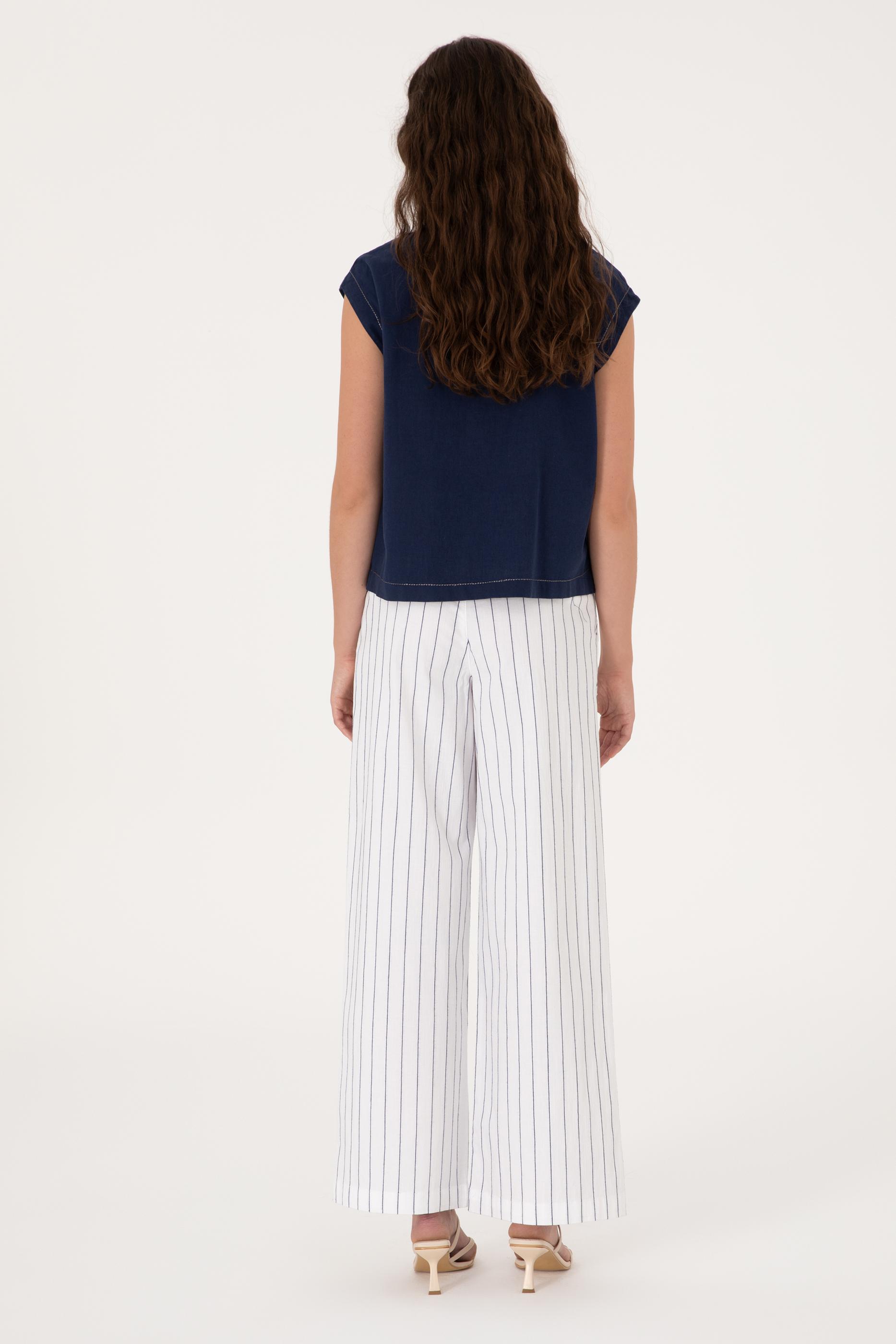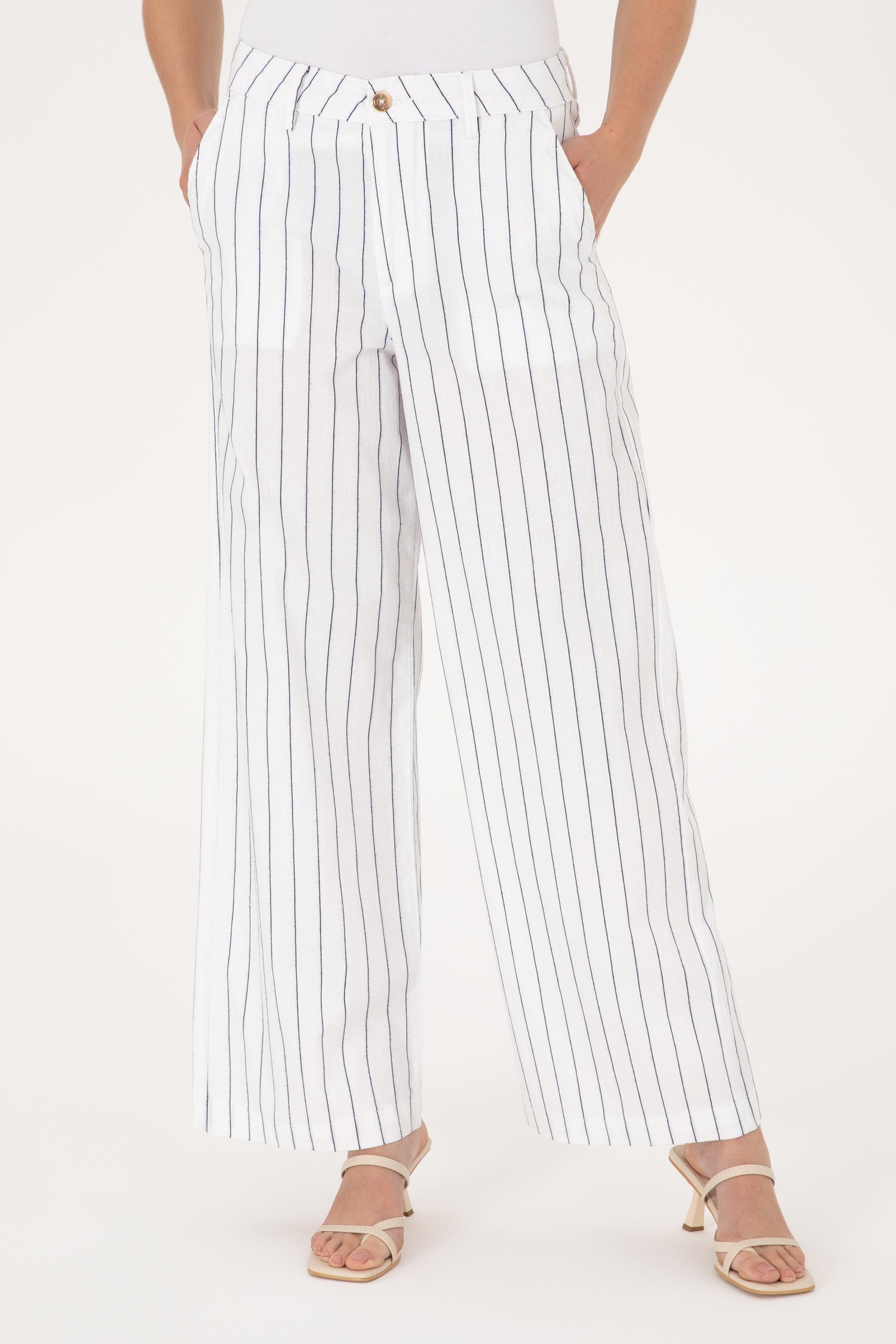 - Kadın Beyaz Çizgili Loose Fit Kanvas Pantolon