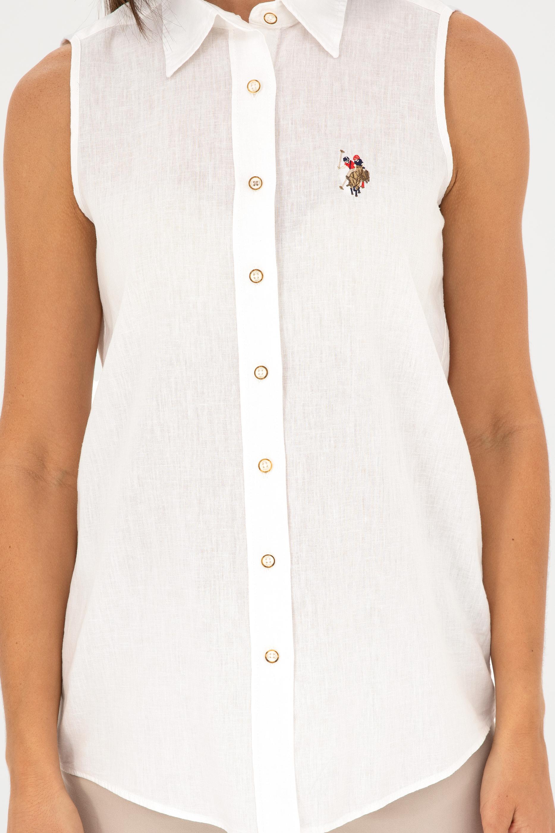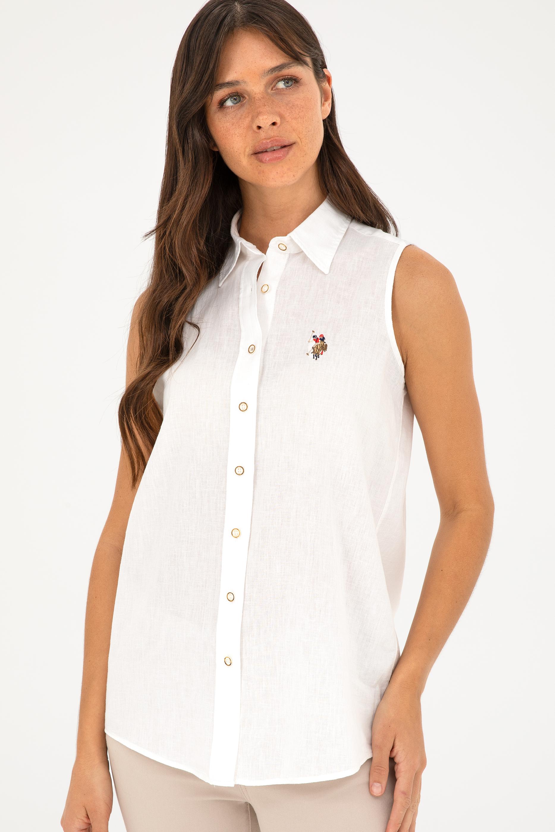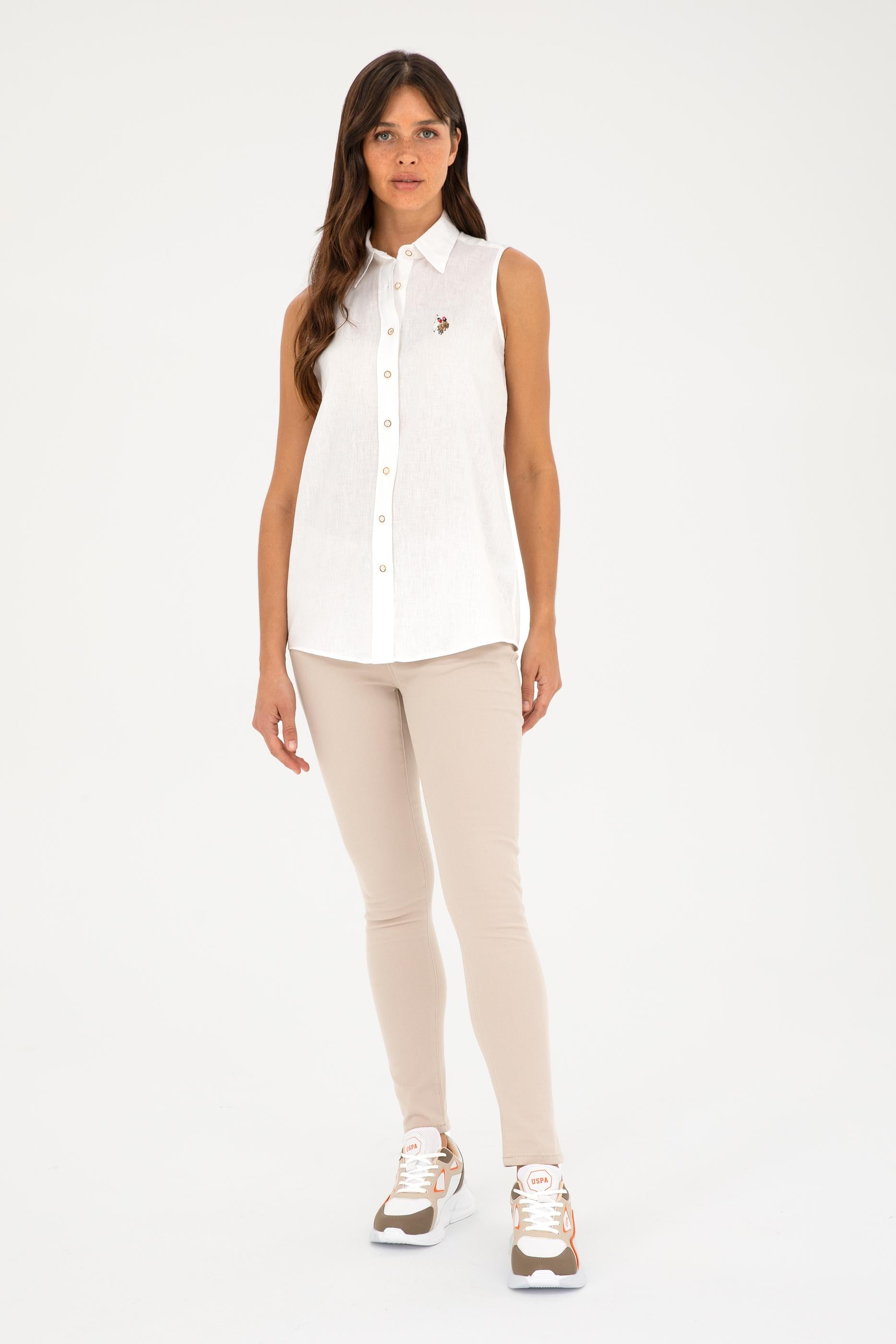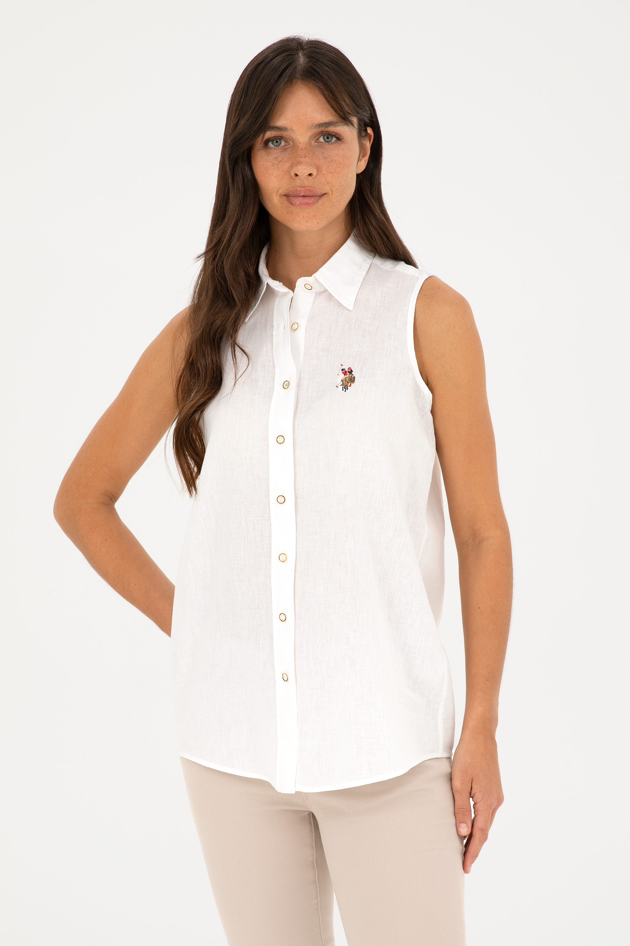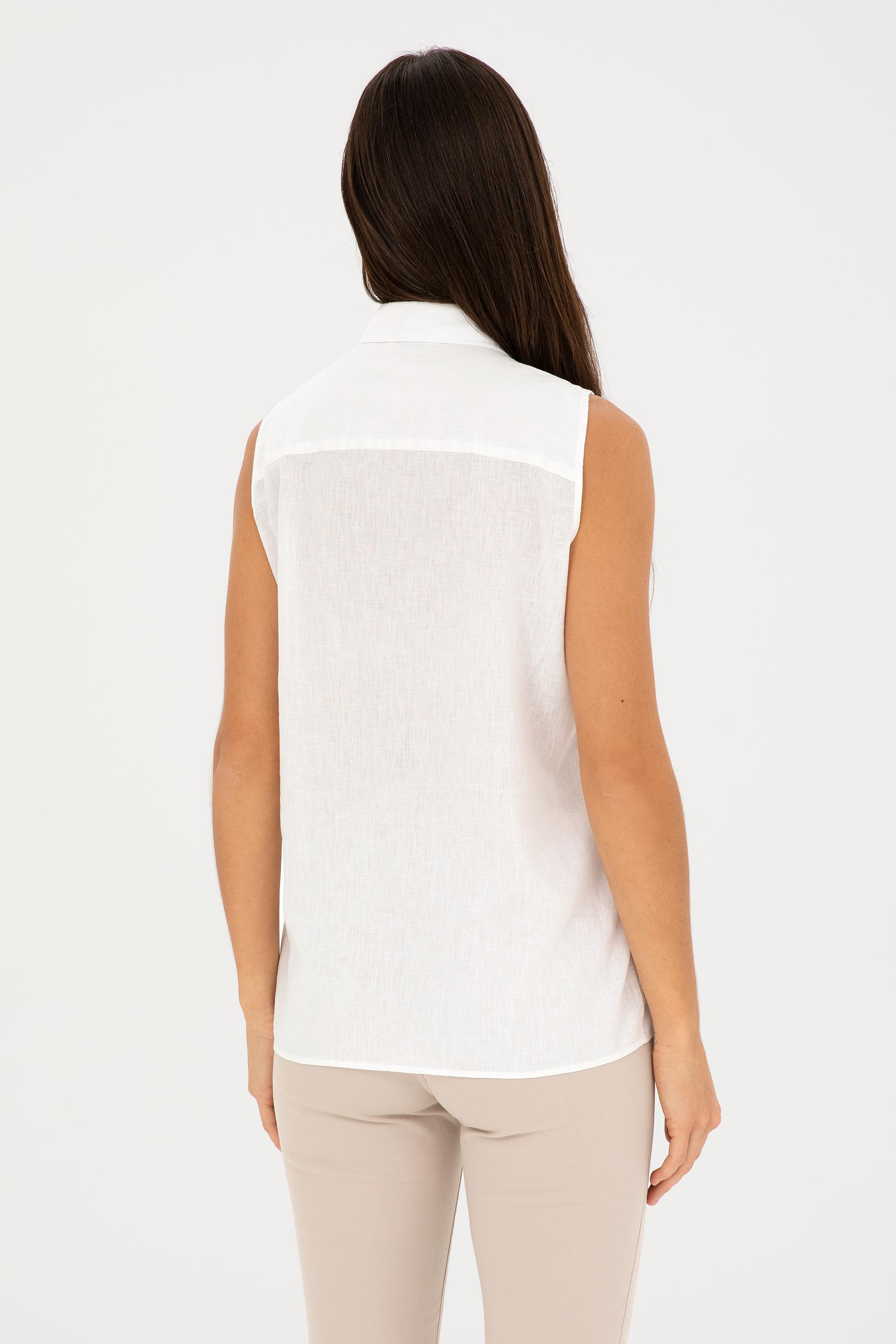 - Kadın Beyaz Keten Görünümlü Kısa Kollu Gömlek