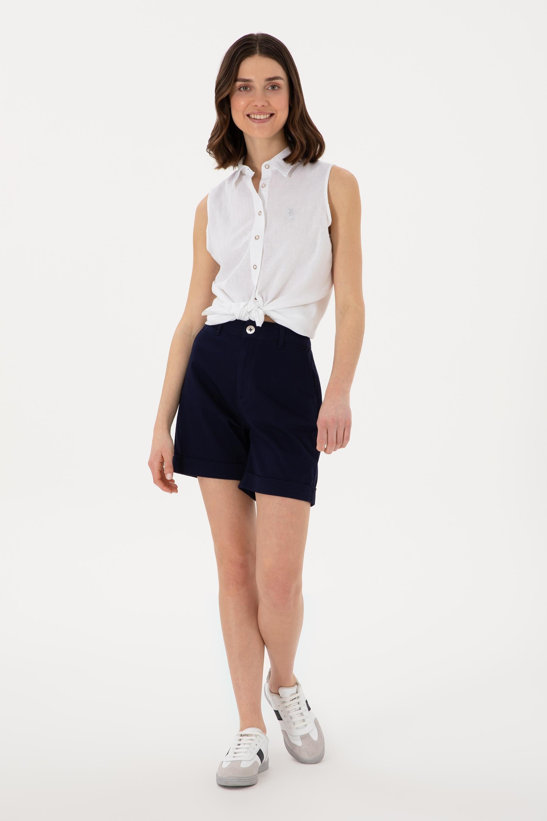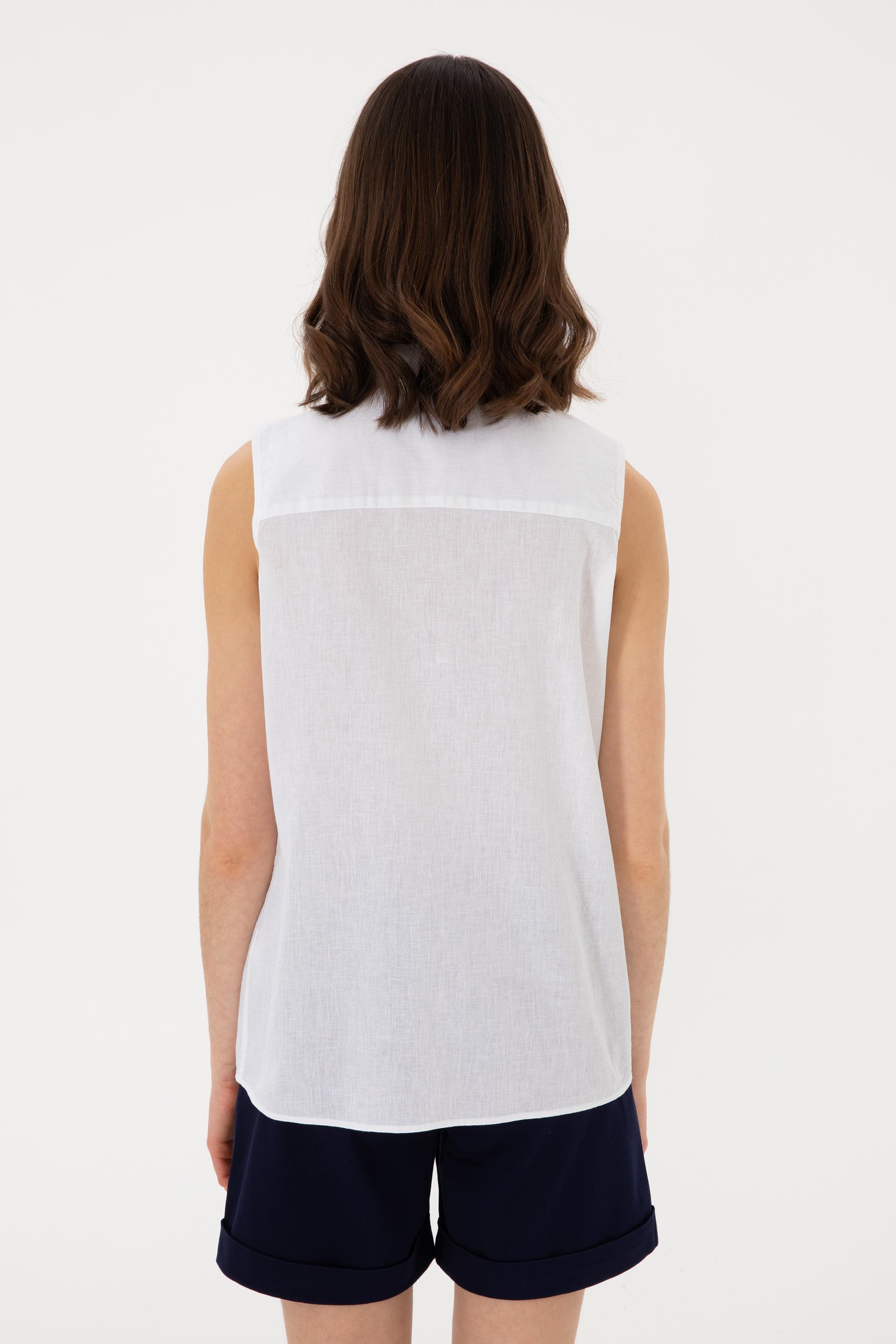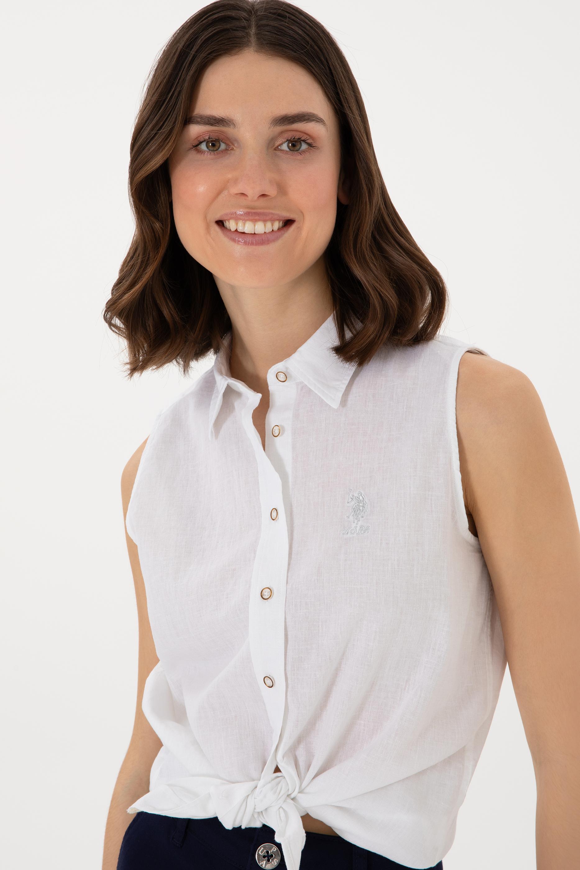 - Kadın Beyaz Keten Karışımlı Kısa Kollu Gömlek