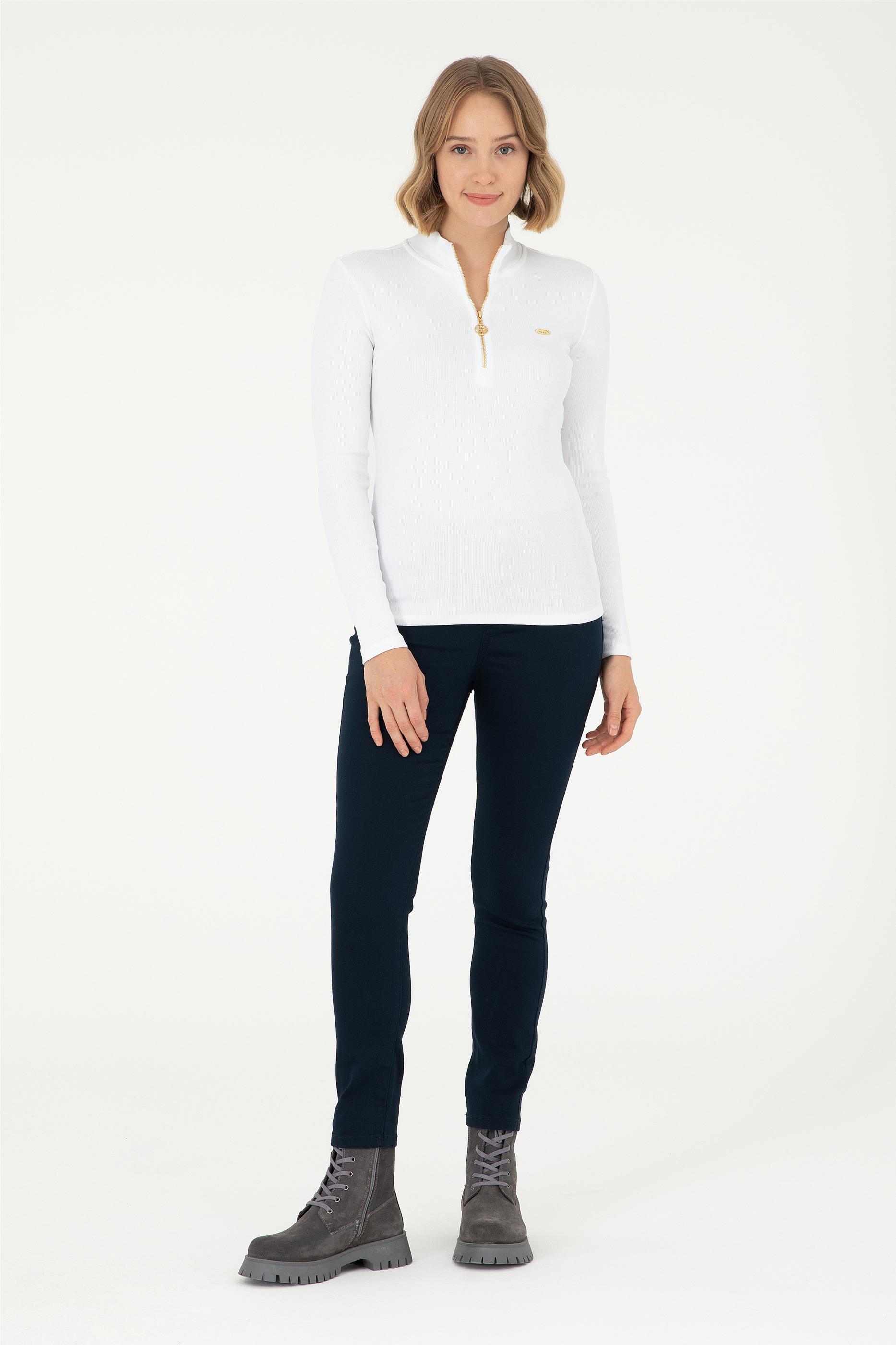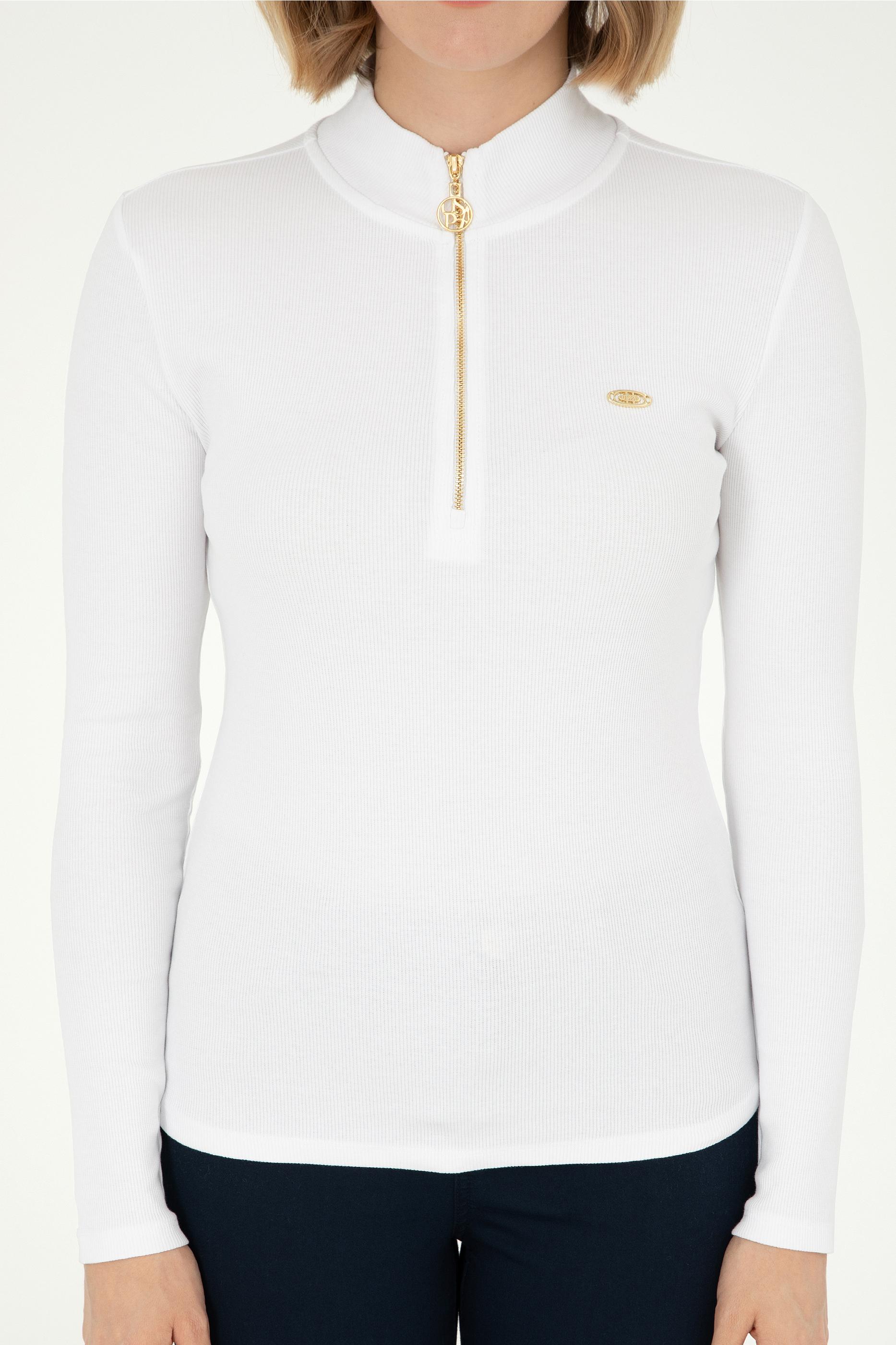 - Kadın Beyaz Dik Yaka Sweatshirt