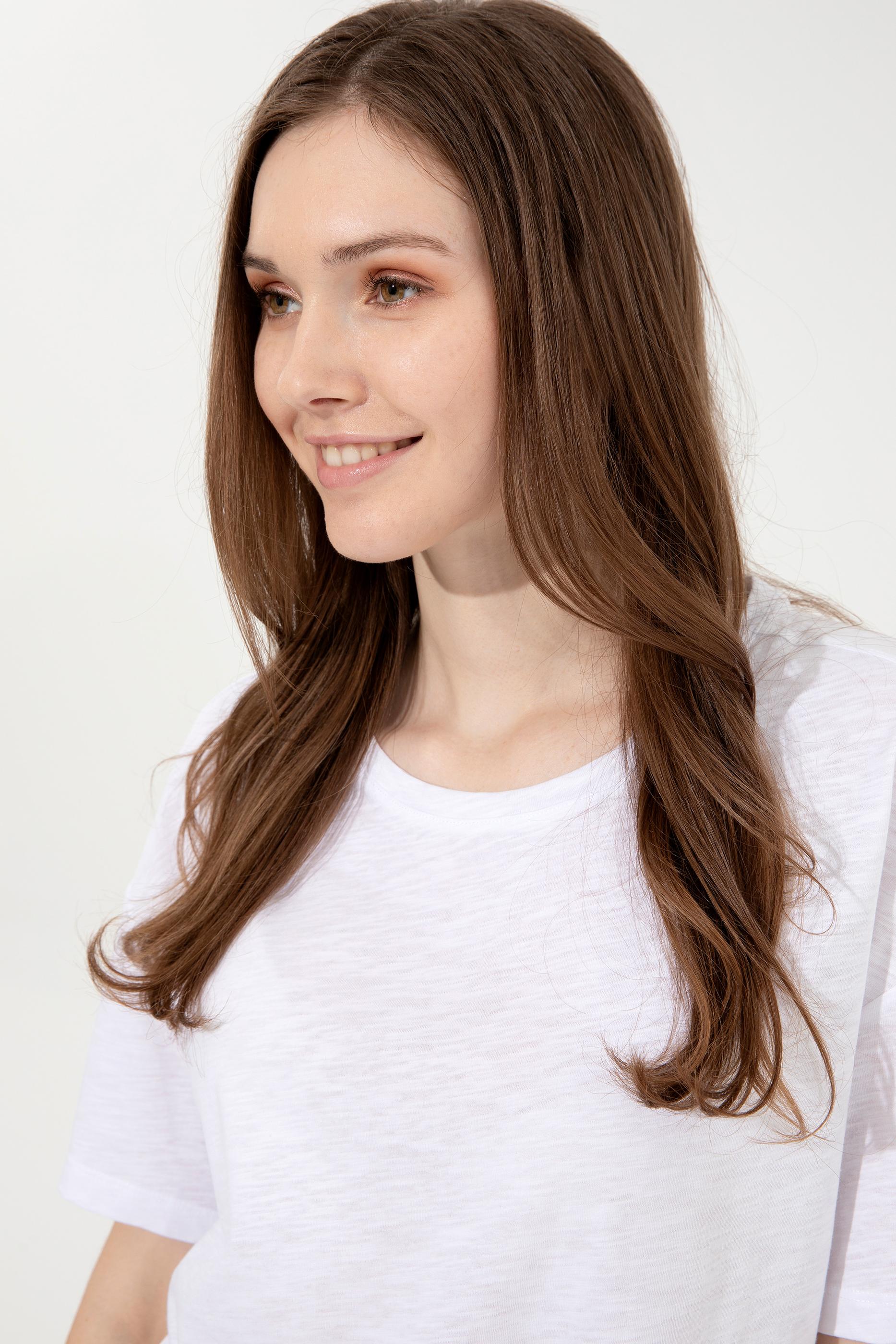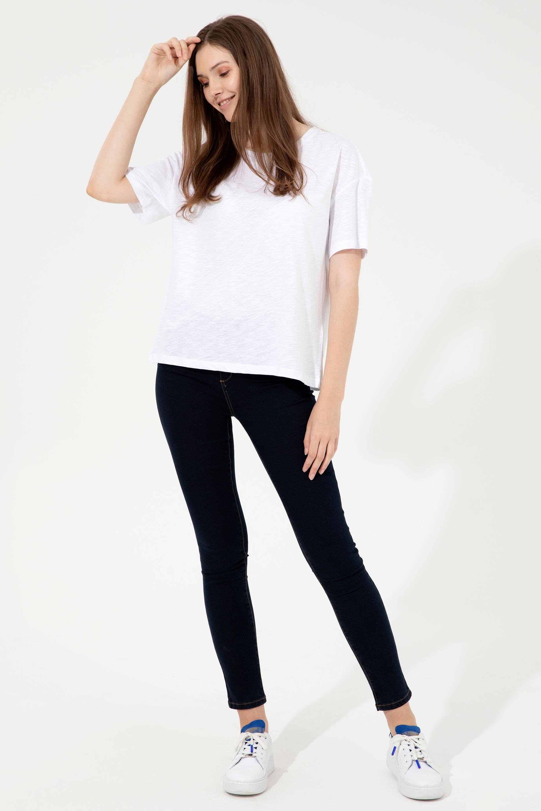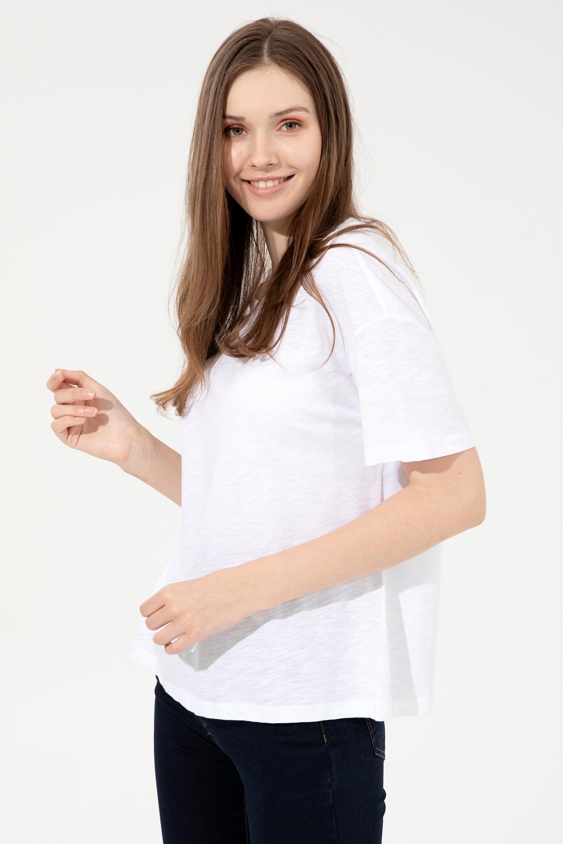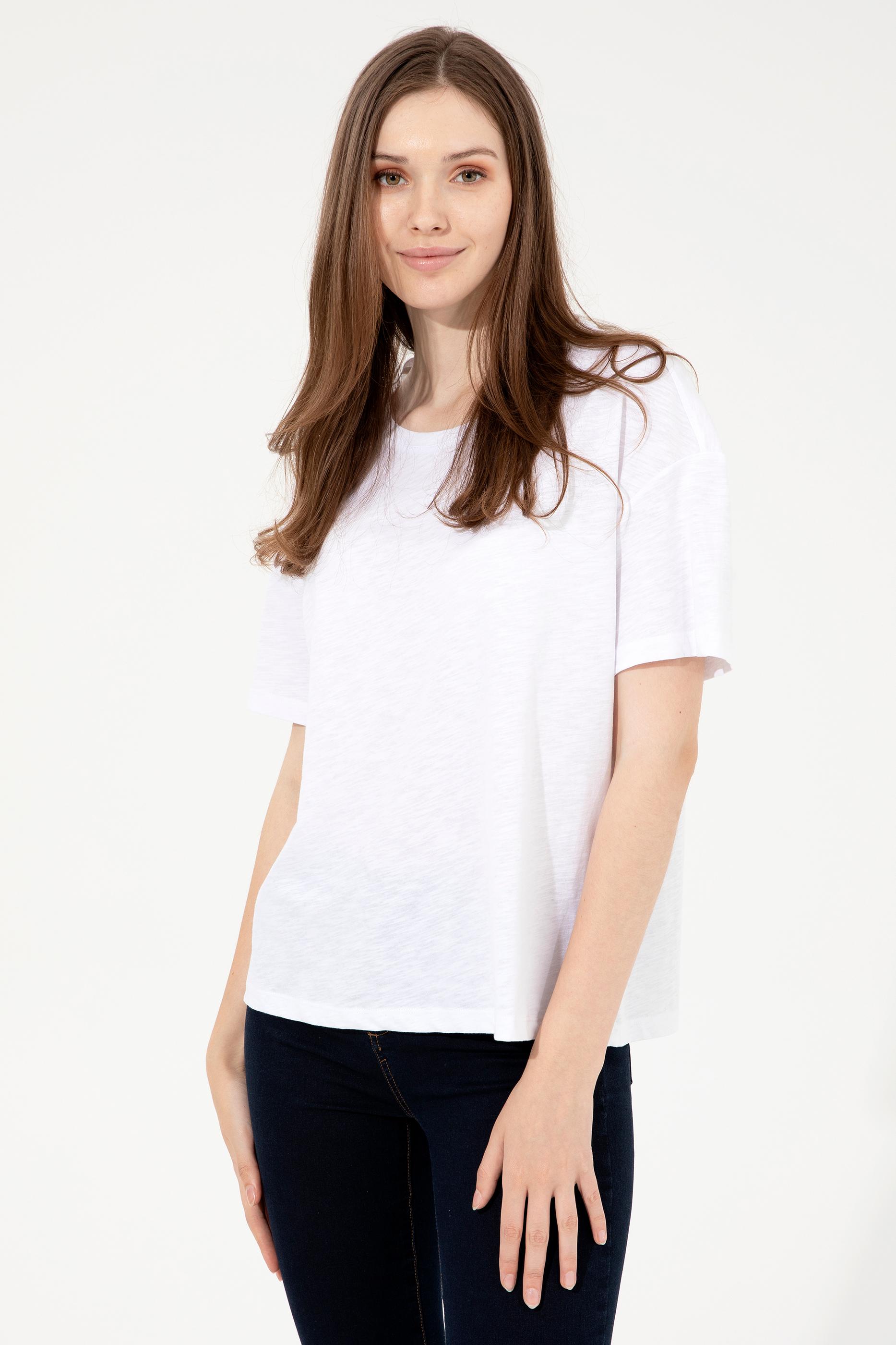 Kadın Beyaz Bisiklet Yaka Tişört