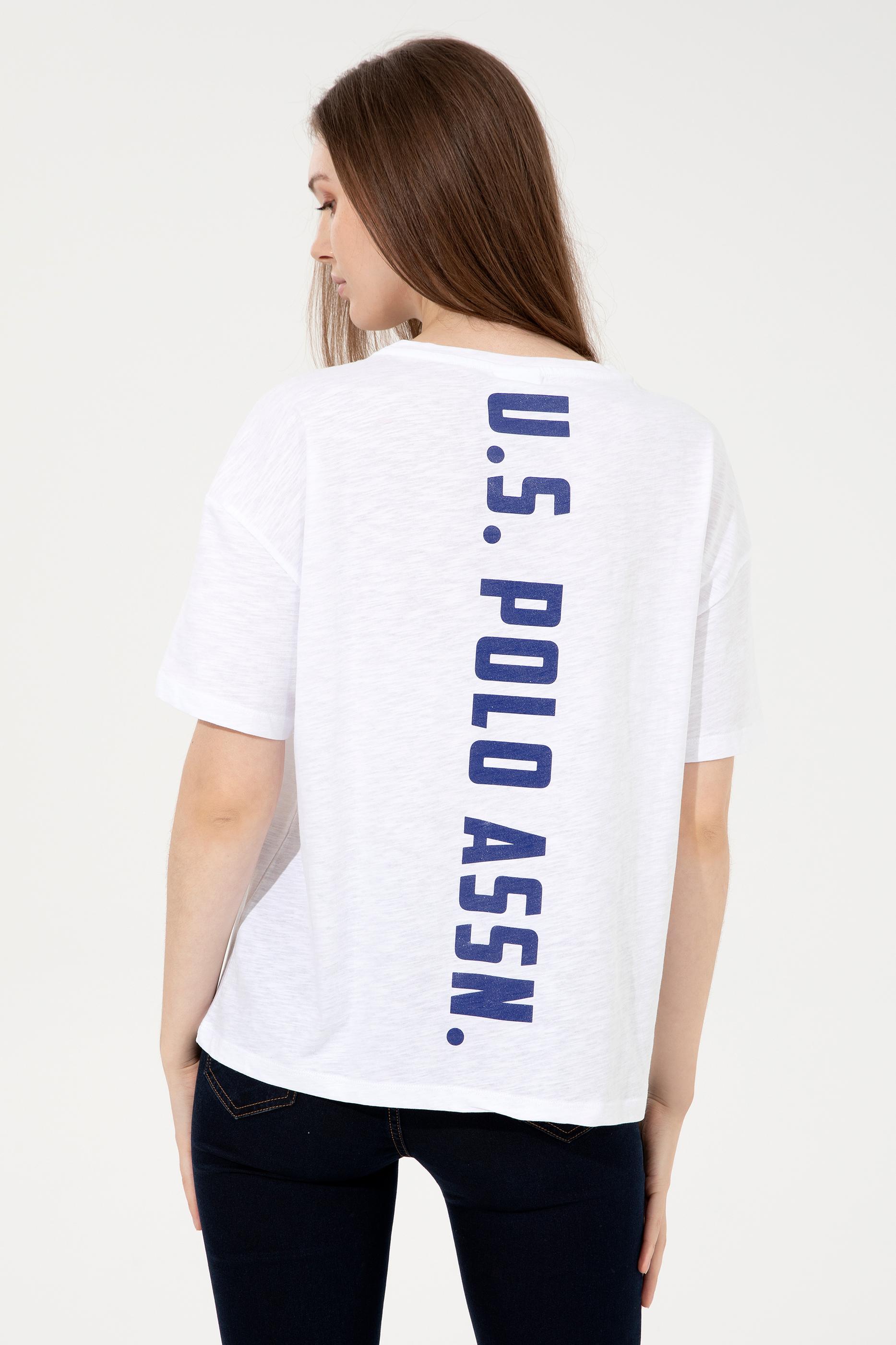 Her gardıropta mutlaka kendine yer bulan kadın t-shirt modelimiz rahatlığı gün boyu yaşamak isteyenlerin öncelikli tercihi oluyor. %100 pamuklu t-shirt modelimiz yaz aylarında teri emerek vücudunuzu serin tutuyor. Modelimizin bisiklet yaka olması ise ekstra konfor sağlıyor. Her kıyafetle kolaylıkla kombinlenen beyaz t-shirt modelimizin oldukça sade olan tasarımı arka kısmında yer alan U.S. POLO ASSN. yazısıyla hareketli bir görünüme kavuşuyor.