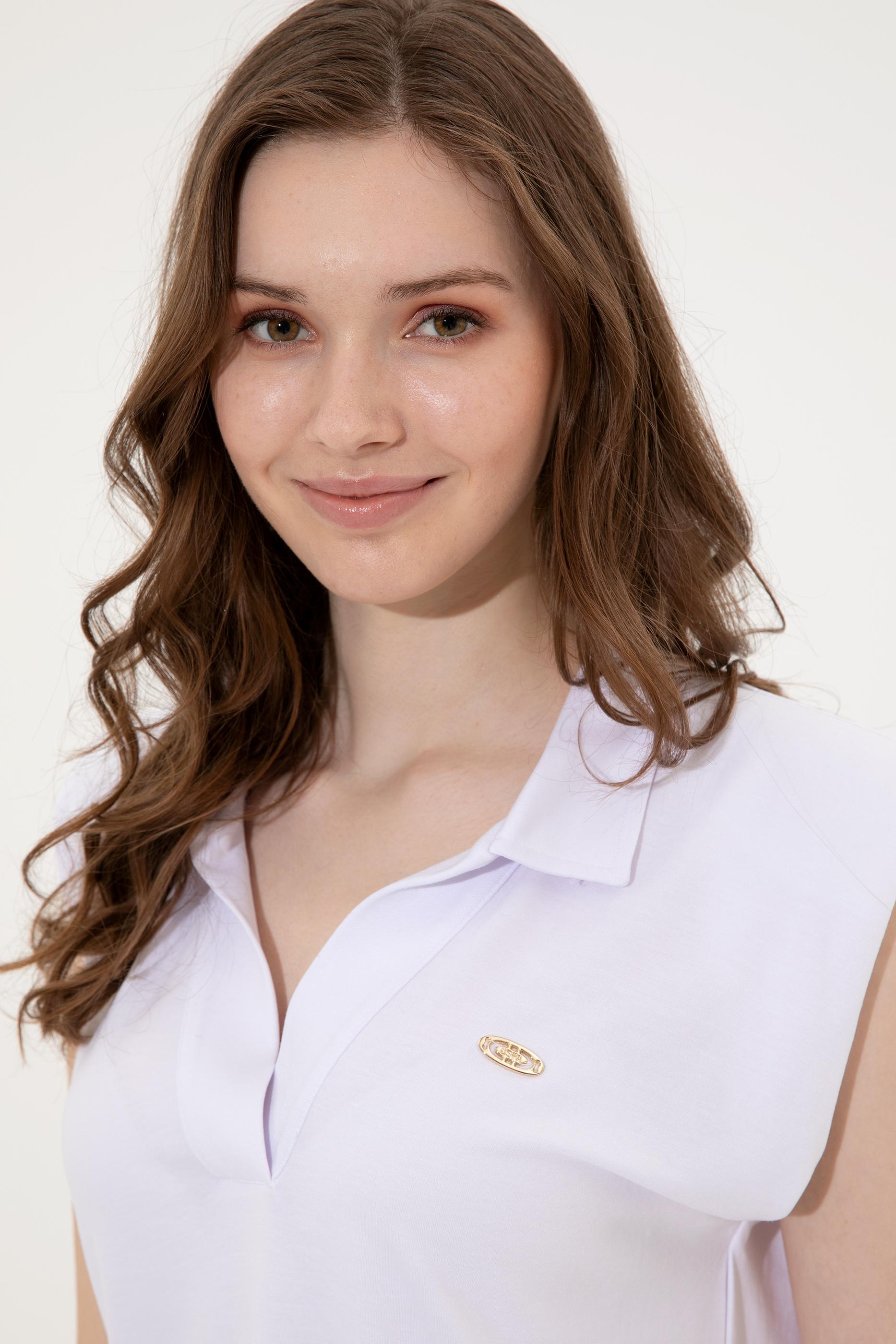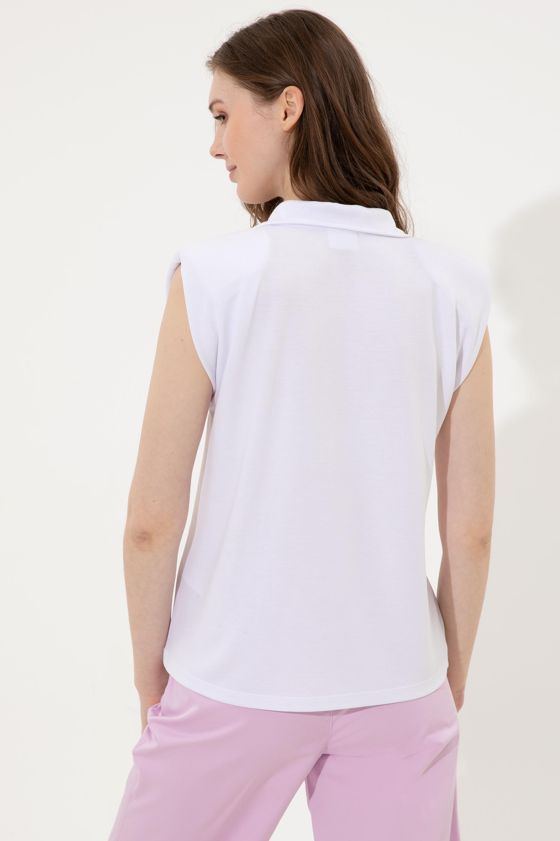 Kadın Beyaz V Yaka Kolsuz Tişört