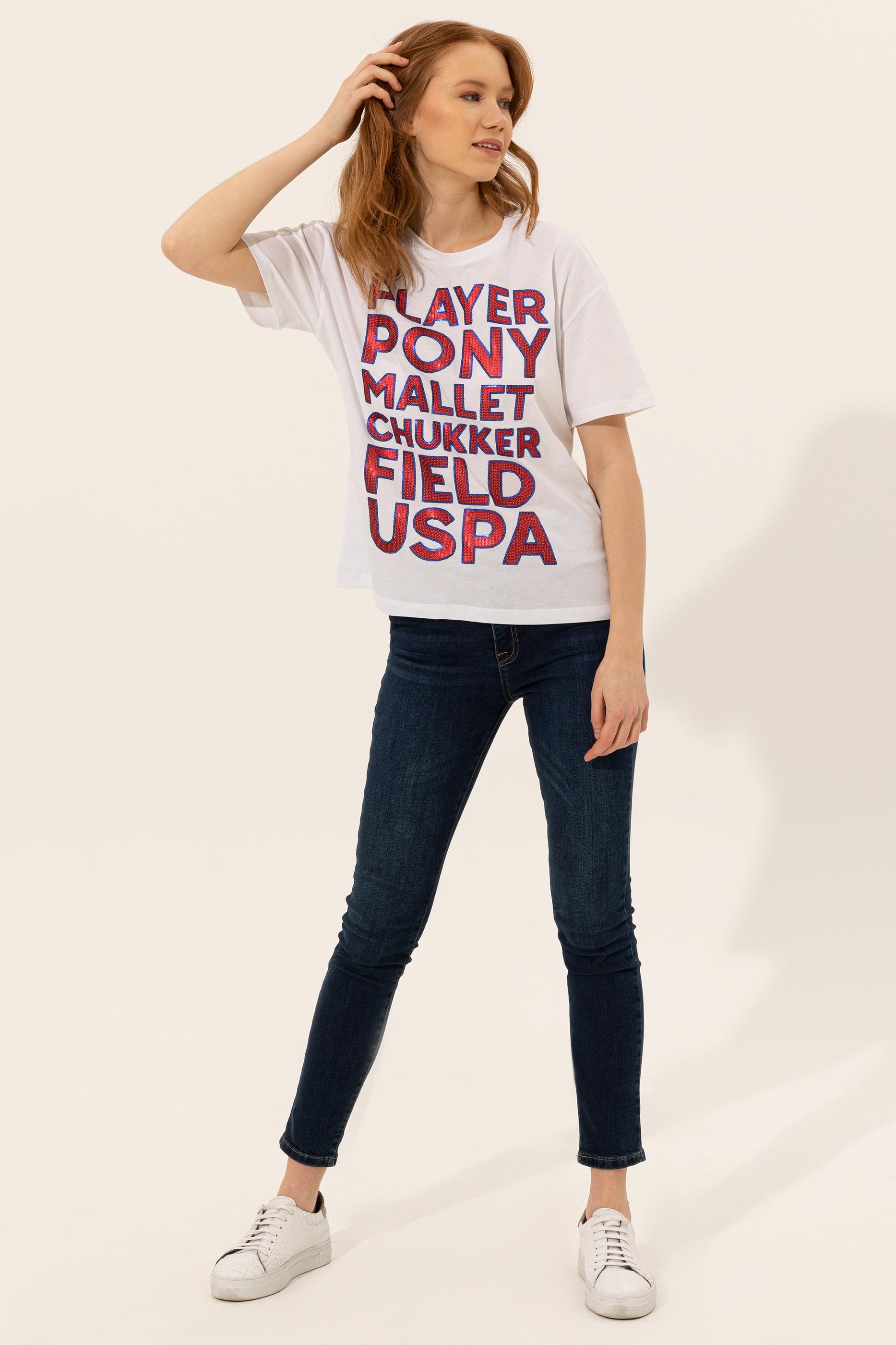 Kadın Beyaz Bisiklet Yaka Tişört