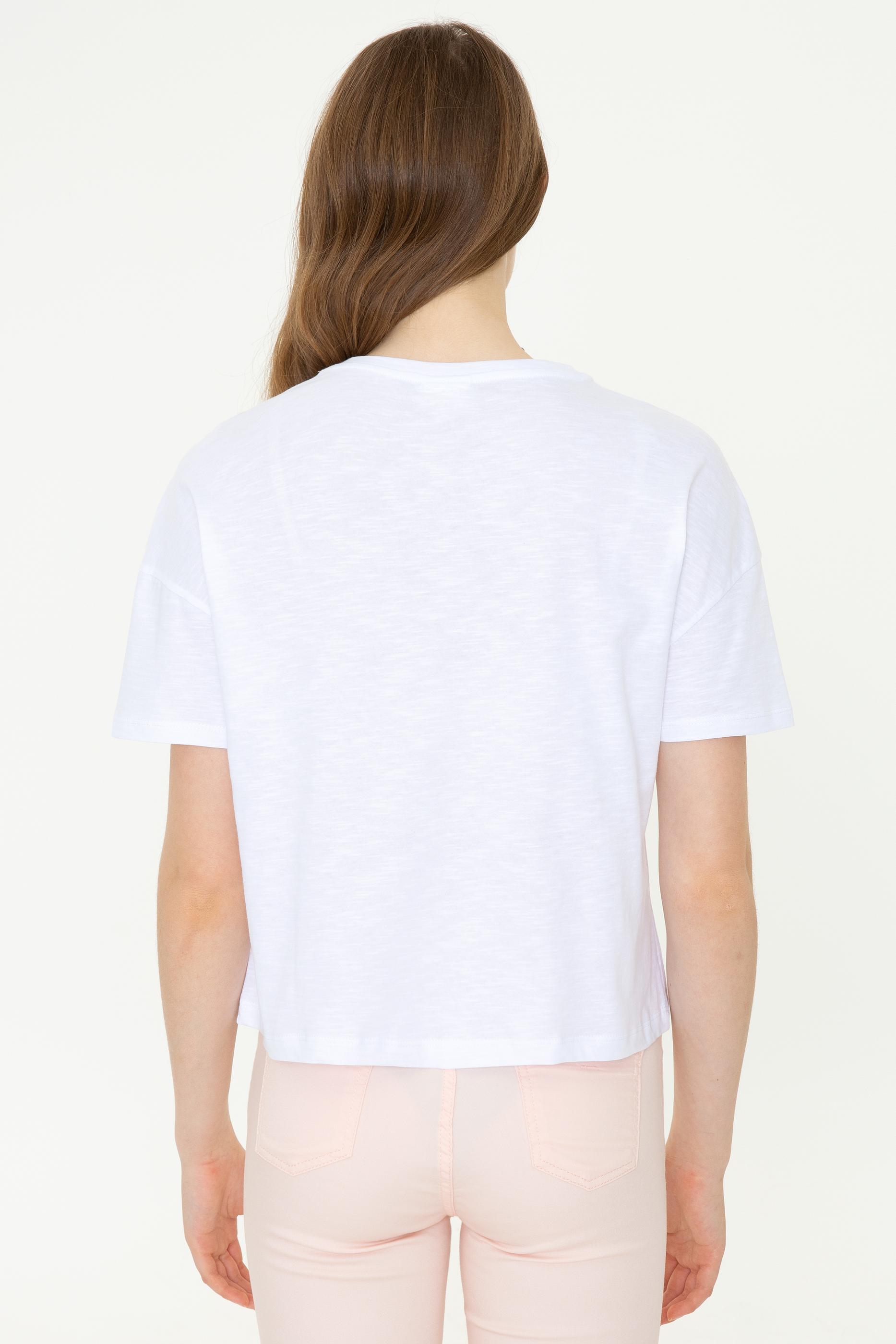 Sade tasarımıyla gardıropların kurtarıcı parçası olan kadın beyaz t-shirt modelimizi yazı detayıyla süsleyerek çarpıcı bir dizayna kavuşturduk. Ön kısmı USPA baskılı t-shirt modelimiz kalite anlayışınızı yansıtan bir tasarım olarak dikkatleri üzerinize çekiyor. Bisiklet yaka detayı ve crop top modeliyle öne çıkan t-shirt, casual stilin vazgeçilmezi olmaya aday! %100 pamuklu t-shirt modelimiz yüksek oranda nem emiciliğiyle de terletmeyen bir giysi oluyor.