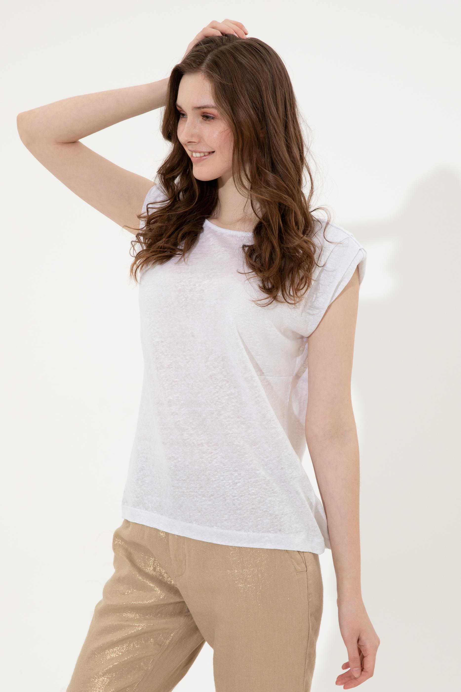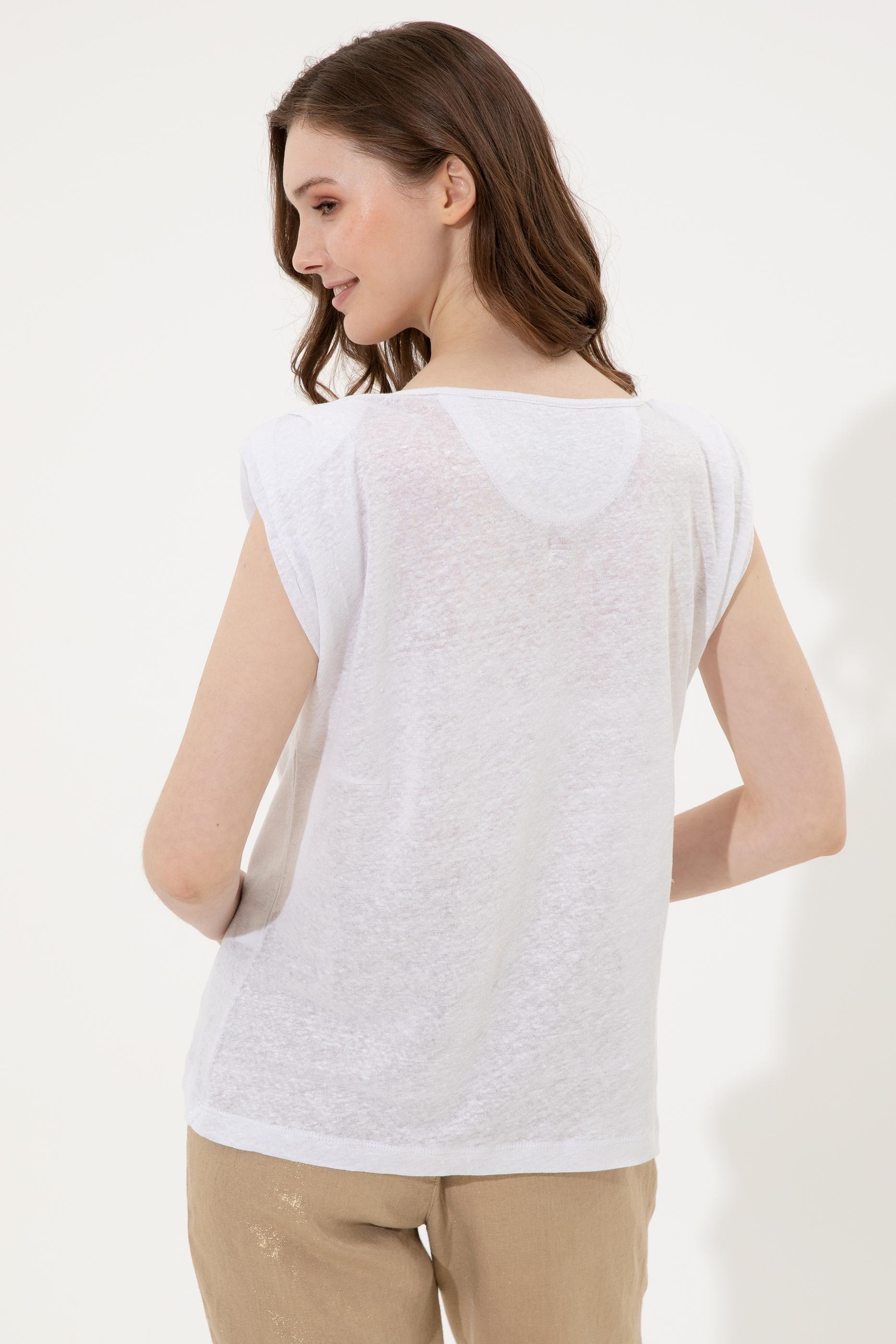 Kadın Beyaz Bisiklet Yaka Kolsuz Tişört - 50250261007