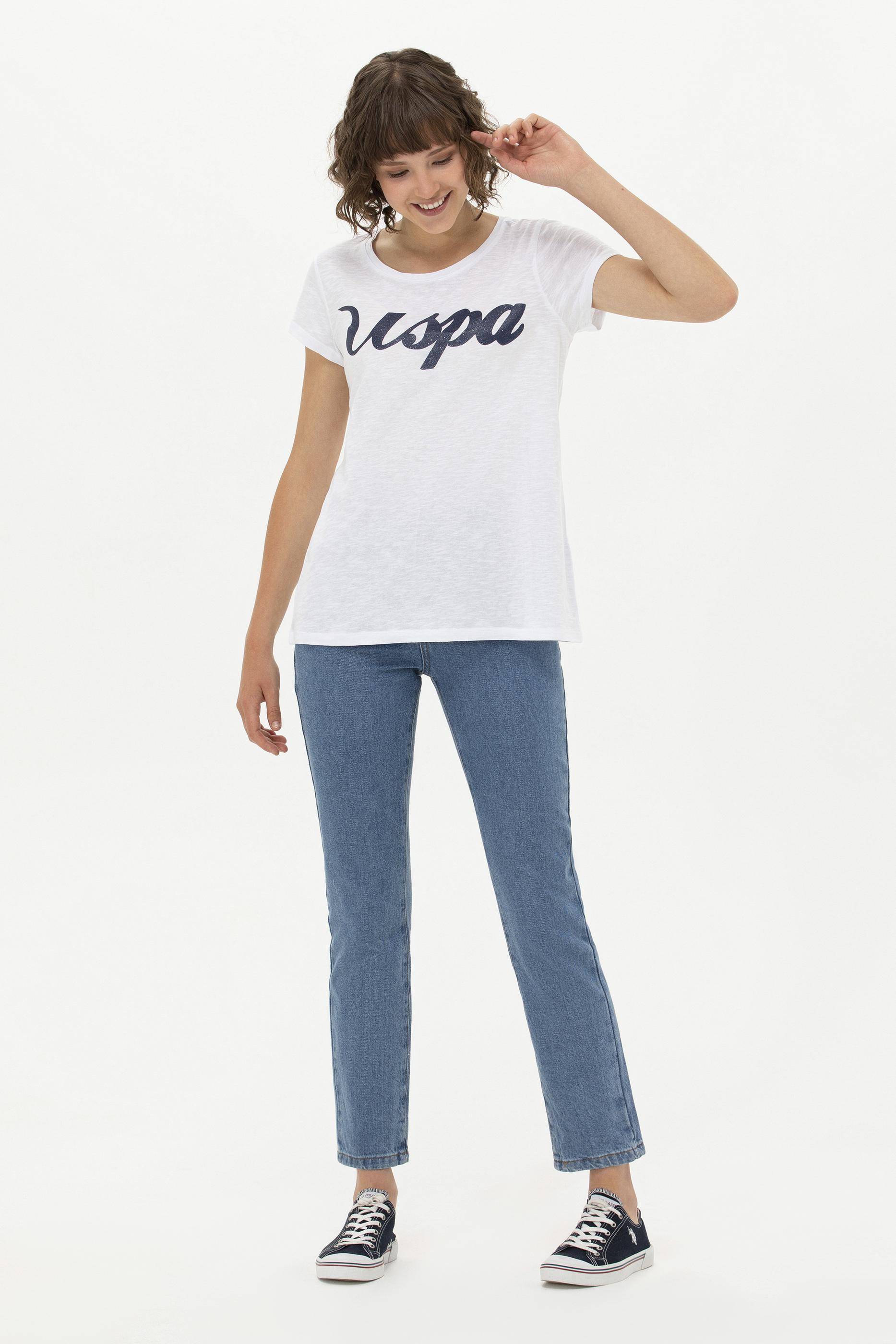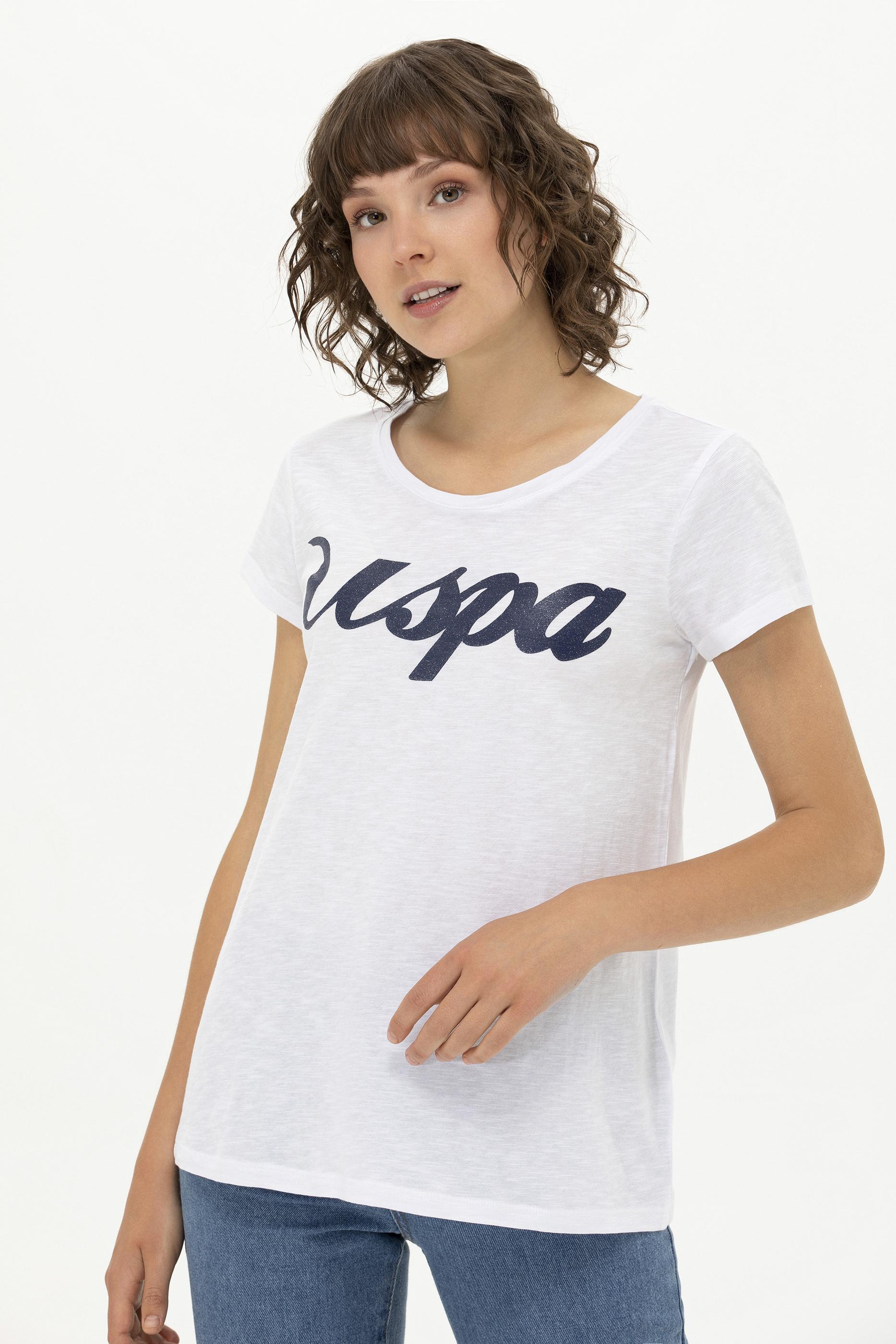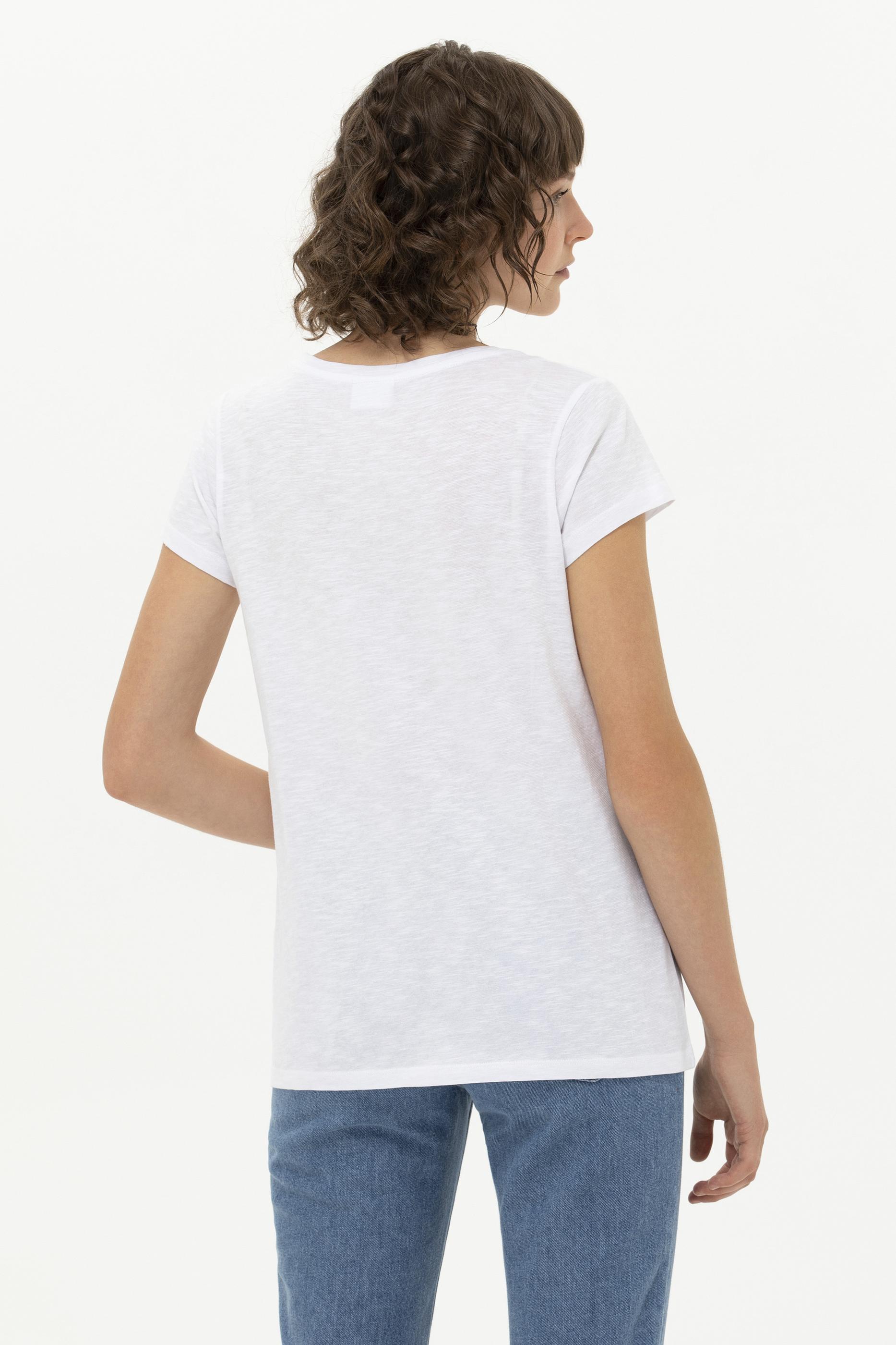 Kadın Beyaz Bisiklet Yaka Tişört