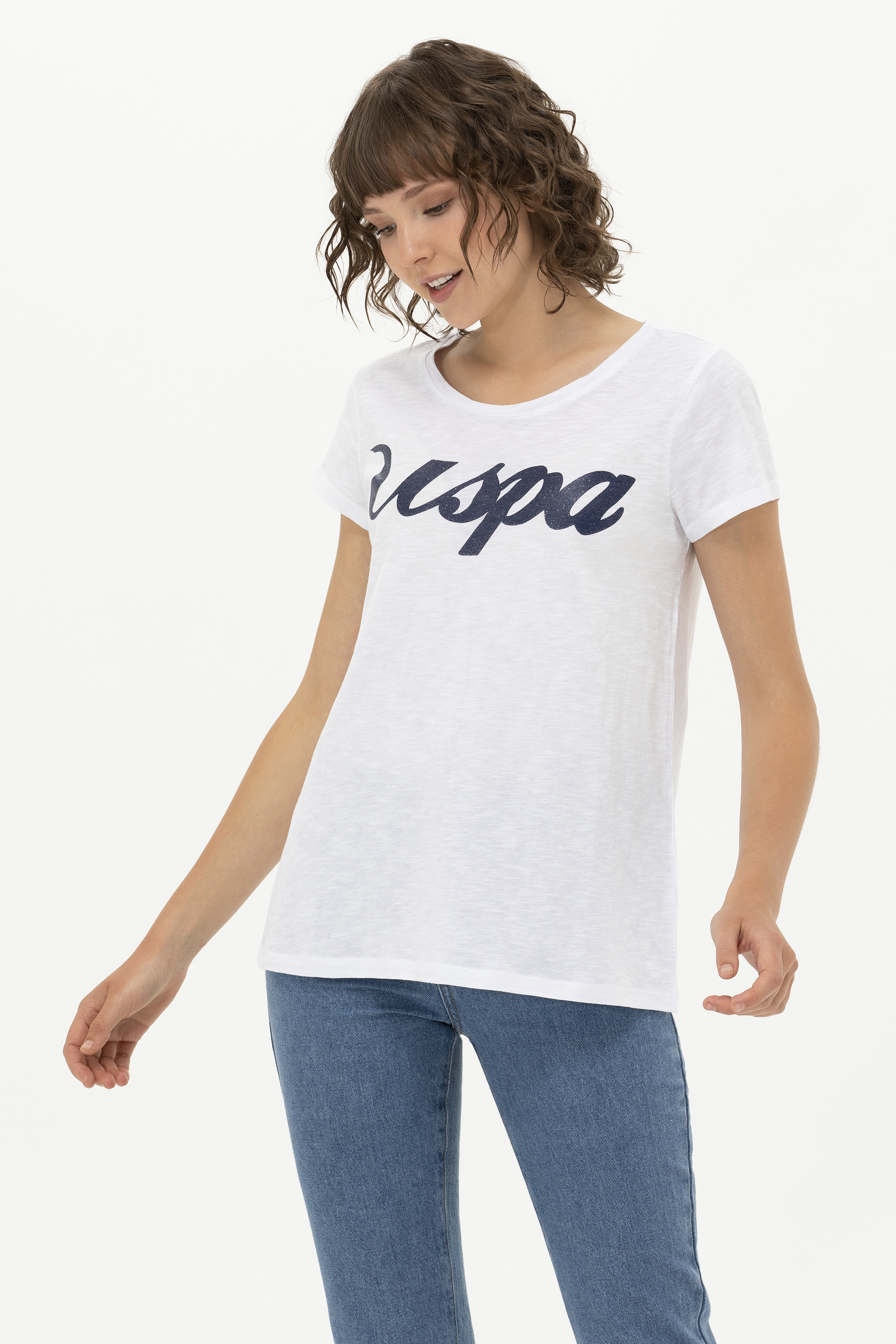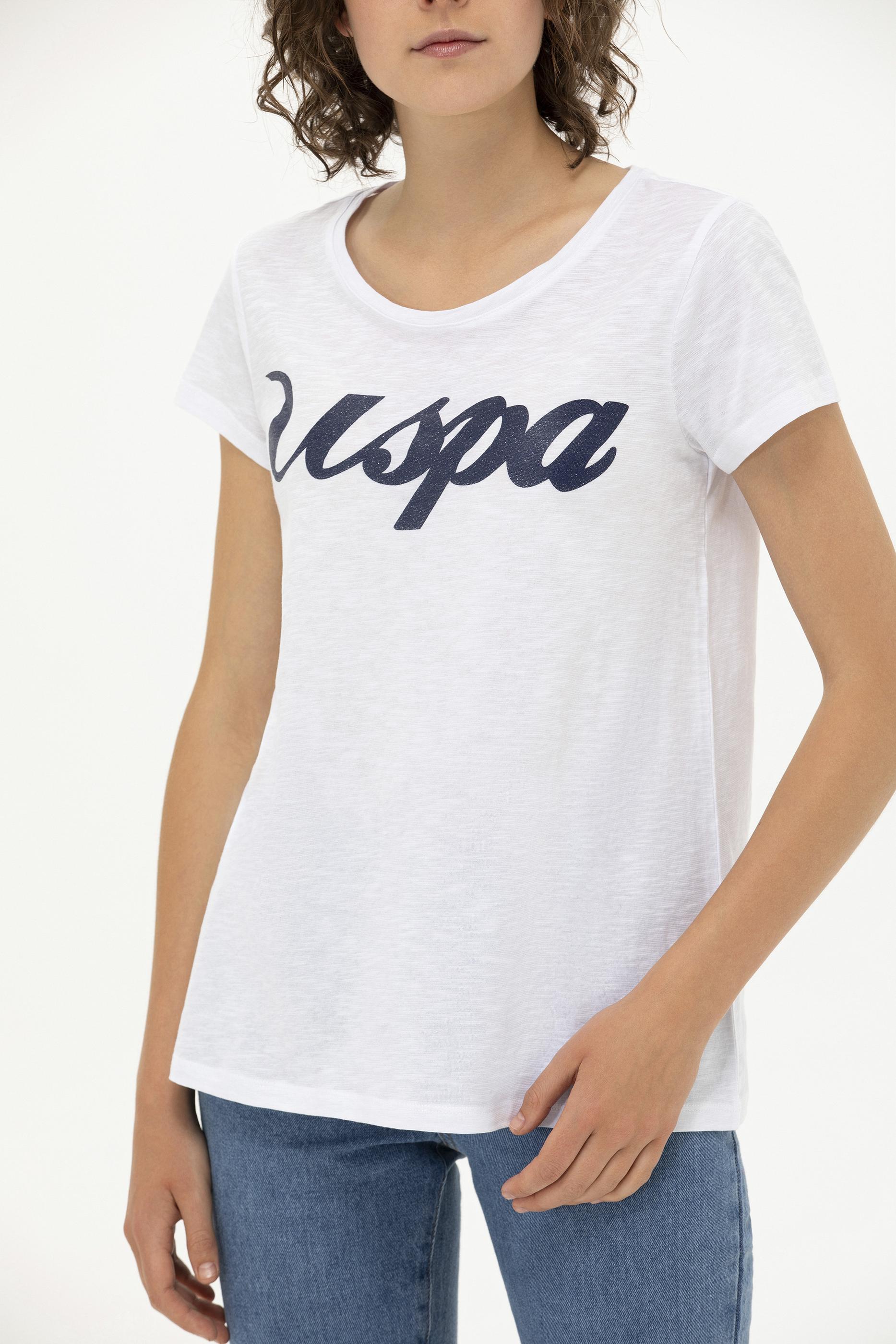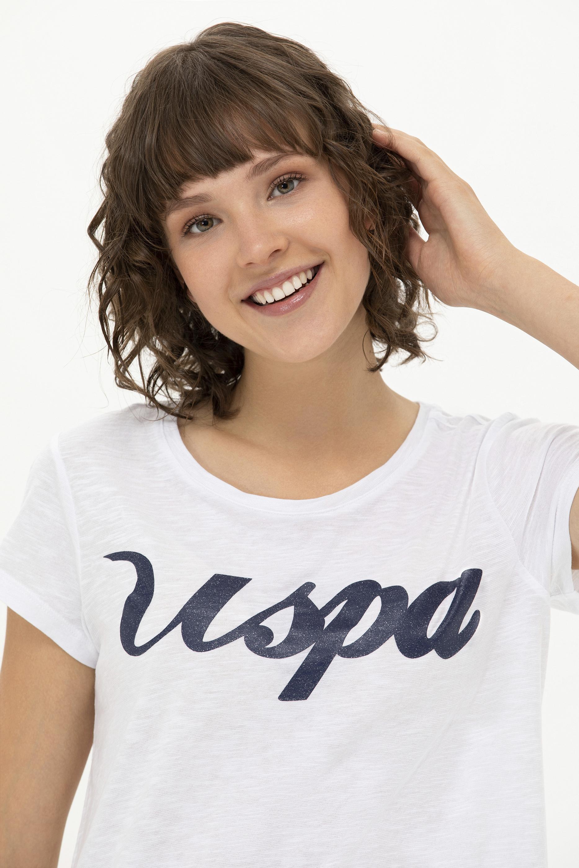 Kadın Beyaz Bisiklet Yaka Tişört